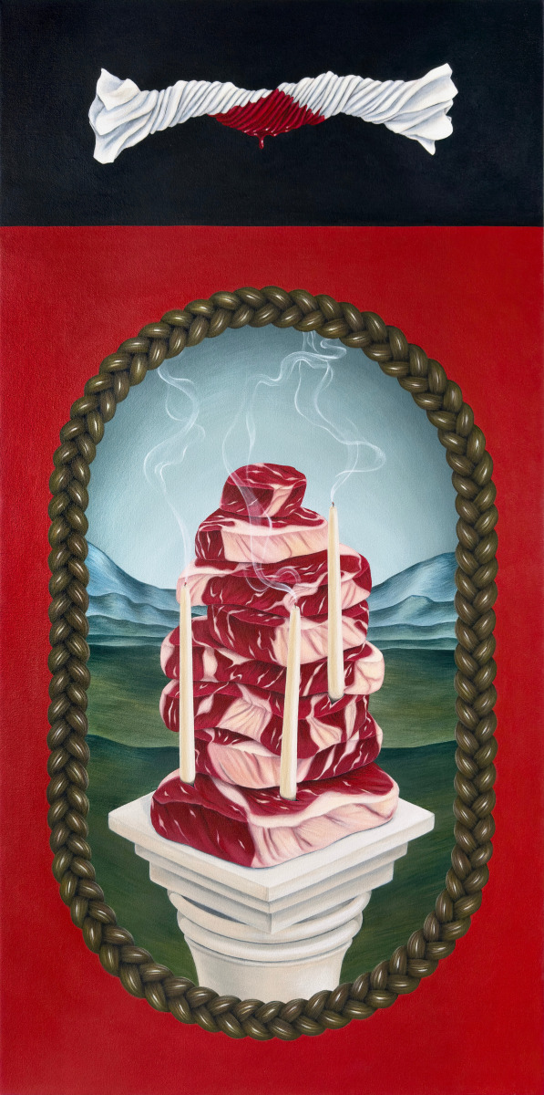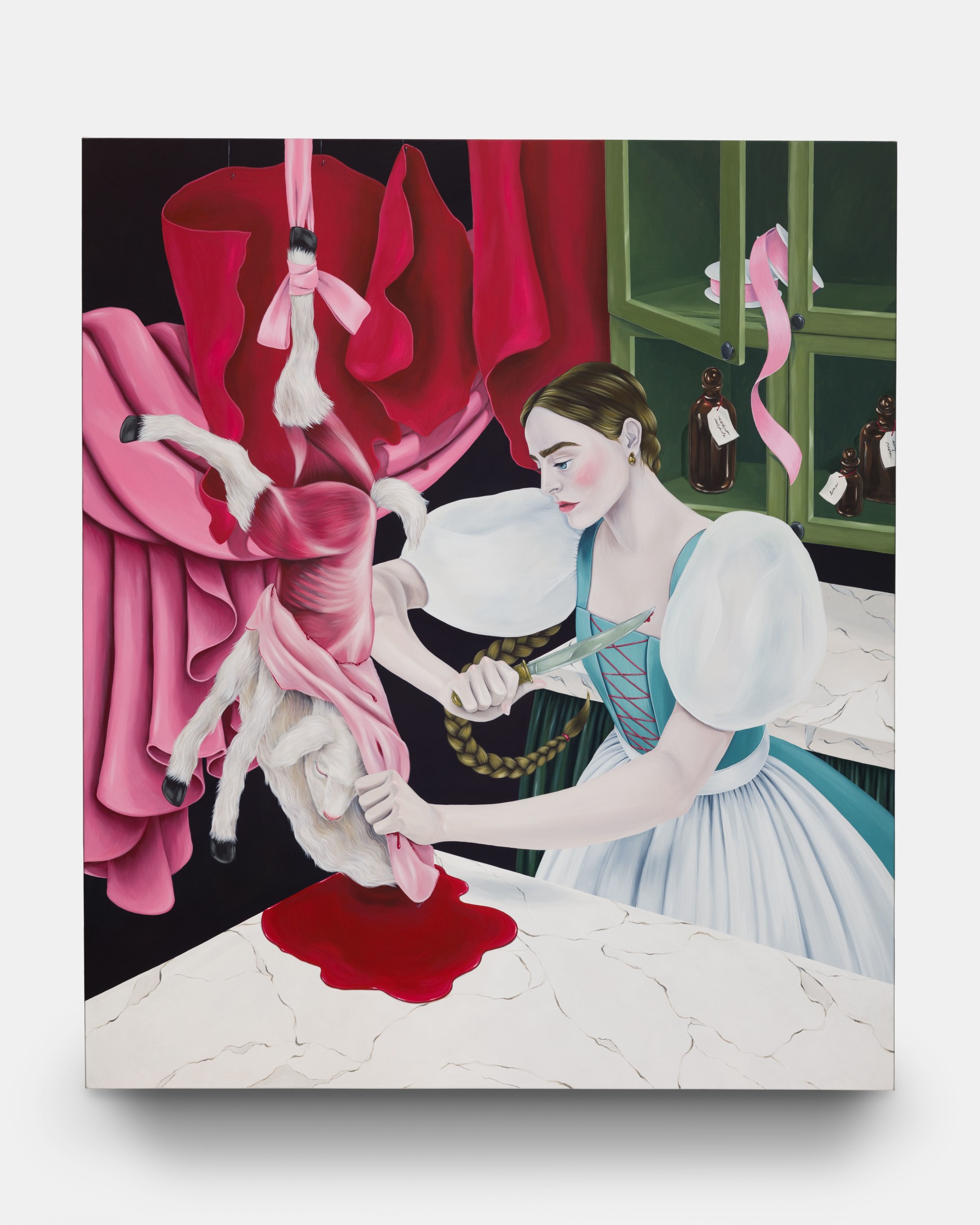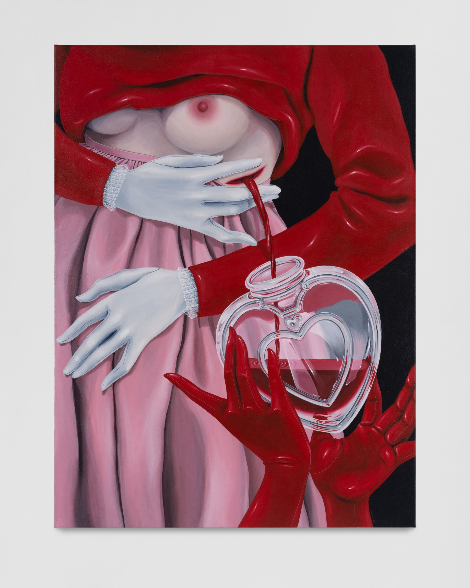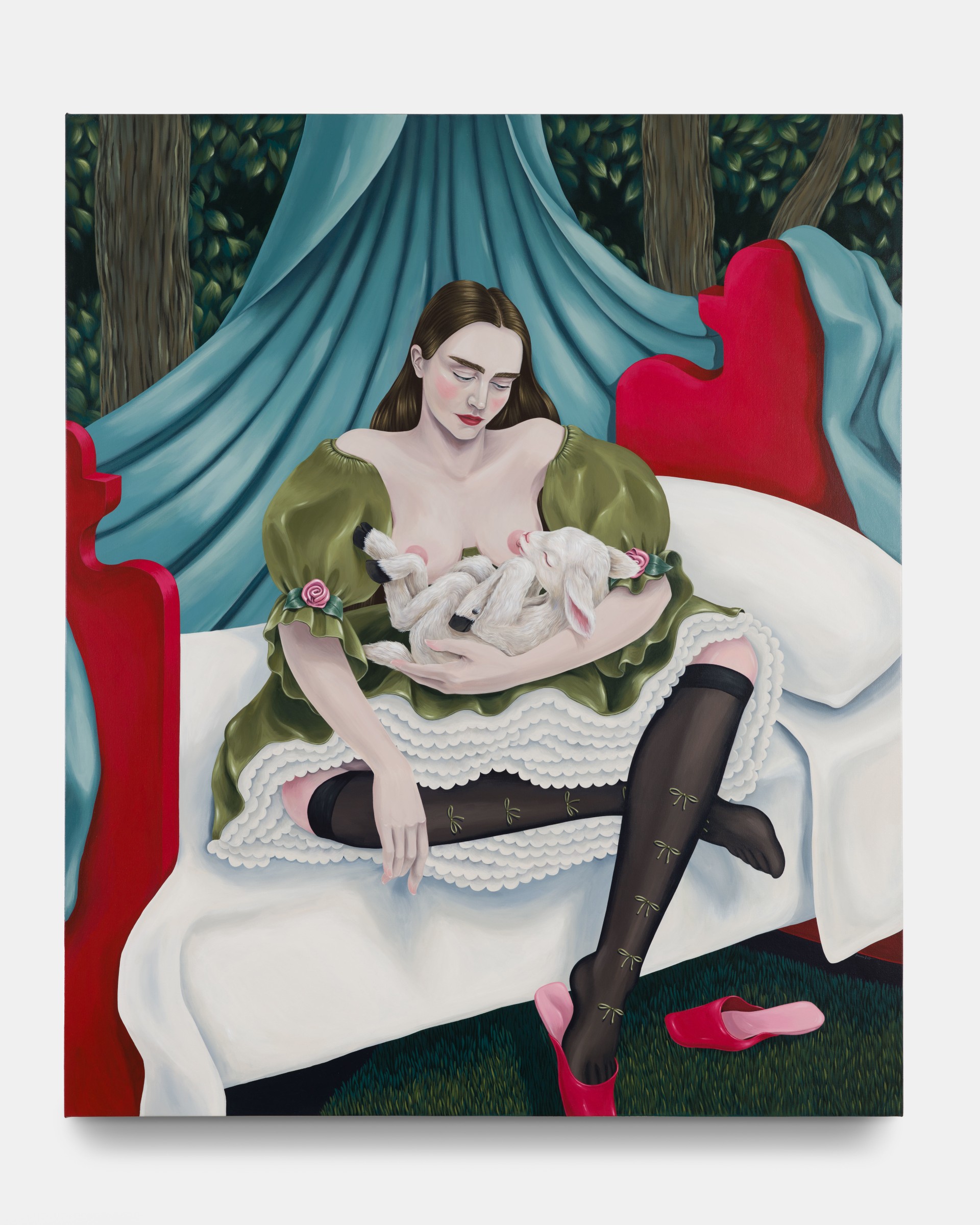 Jeanine Brito (b. 1993, Germany) lives and works in Antwerp, Belgium. Her work explores themes of memory and desire, imagined in a theatrical, surrealist context. Self-taught, her previous experience as a graphic designer informs her approach to color and composition, where smooth, saturated surfaces meet photographic crops. Exhibitions include All The Better to Eat You With, Nicodim, Los Angeles (2025, solo, forthcoming); The Amber of this Moment, Galeria Nicodim, Bucharest (2025); The Grumpy Girls, Nicodim, New York (2024, solo); The Invitation: A Fairytale by Jeanine Brito, Nicodim Upstairs, Los Angeles (2023, solo); DISEMBODIED, curated by Ben Lee Ritchie Handler, Nicodim, New York (2023); So Softly and Sweetly, La Causa Galeria, Madrid (2022, solo); You Me Me You, curated by Rachel Keller, Nicodim, Los Angeles (2022); and New Mythologies II, Huxley Parlour, London (2022).