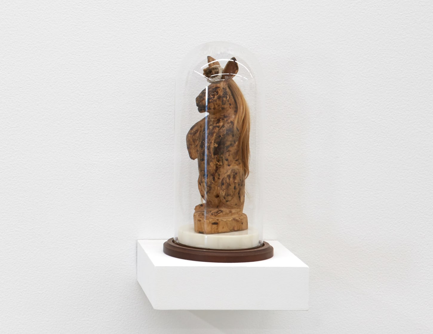 Talismanic Pandrogeny Object: wood, blood (Lady Jaye), blood (Genesis), hair (Lady Jaye), cloth, adhesive, bell jar