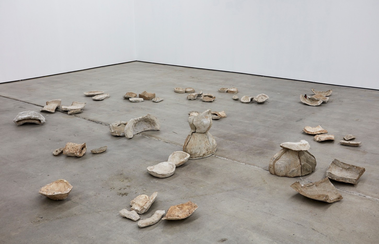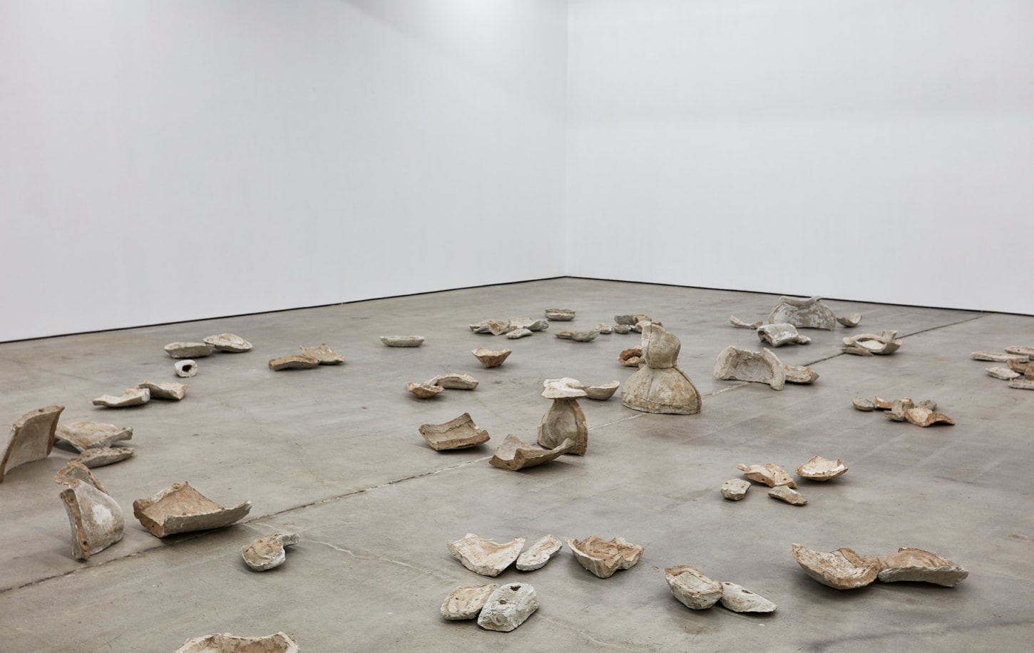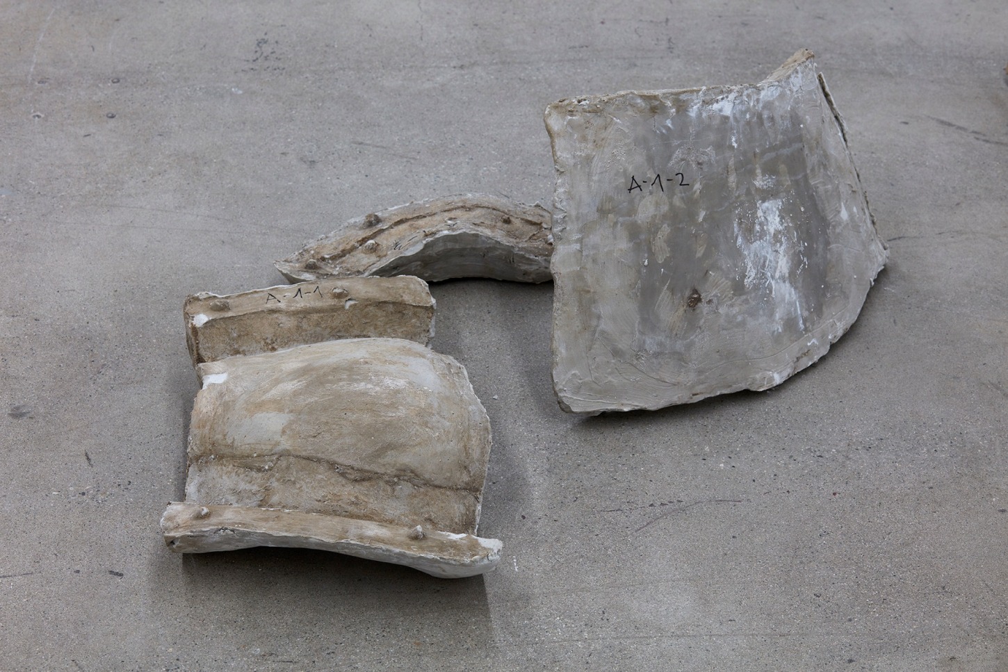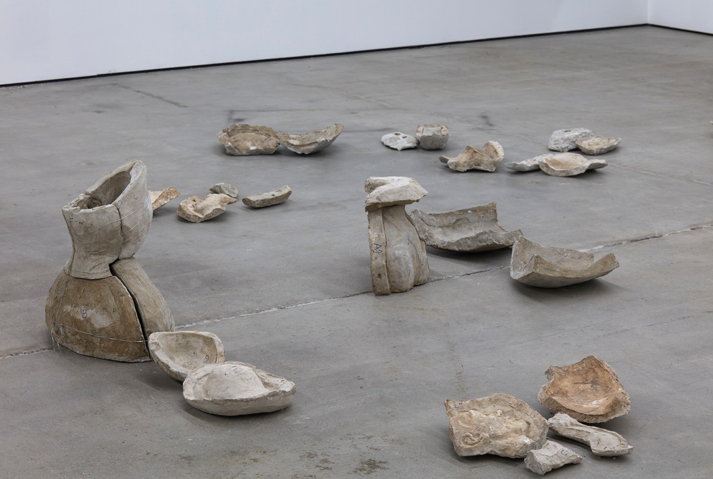 The second part of the exhibition directly addresses the way totalitarian regimes have used art for propaganda purposes. Starting from a social realist work of the Romanian sculptor, Ion Irimescu (the torso of a young worker’s activist), Ciprian Mureșan fabricates a plaster-cast replica. The negative mold obtained through the casting process is the starting point of this installation. Through the successive process of casting and the insertion of the mold itself into the process as an original (obtained through the construction of consequent molds in order to obtain it) – the technical process of sculpture making becomes a useless