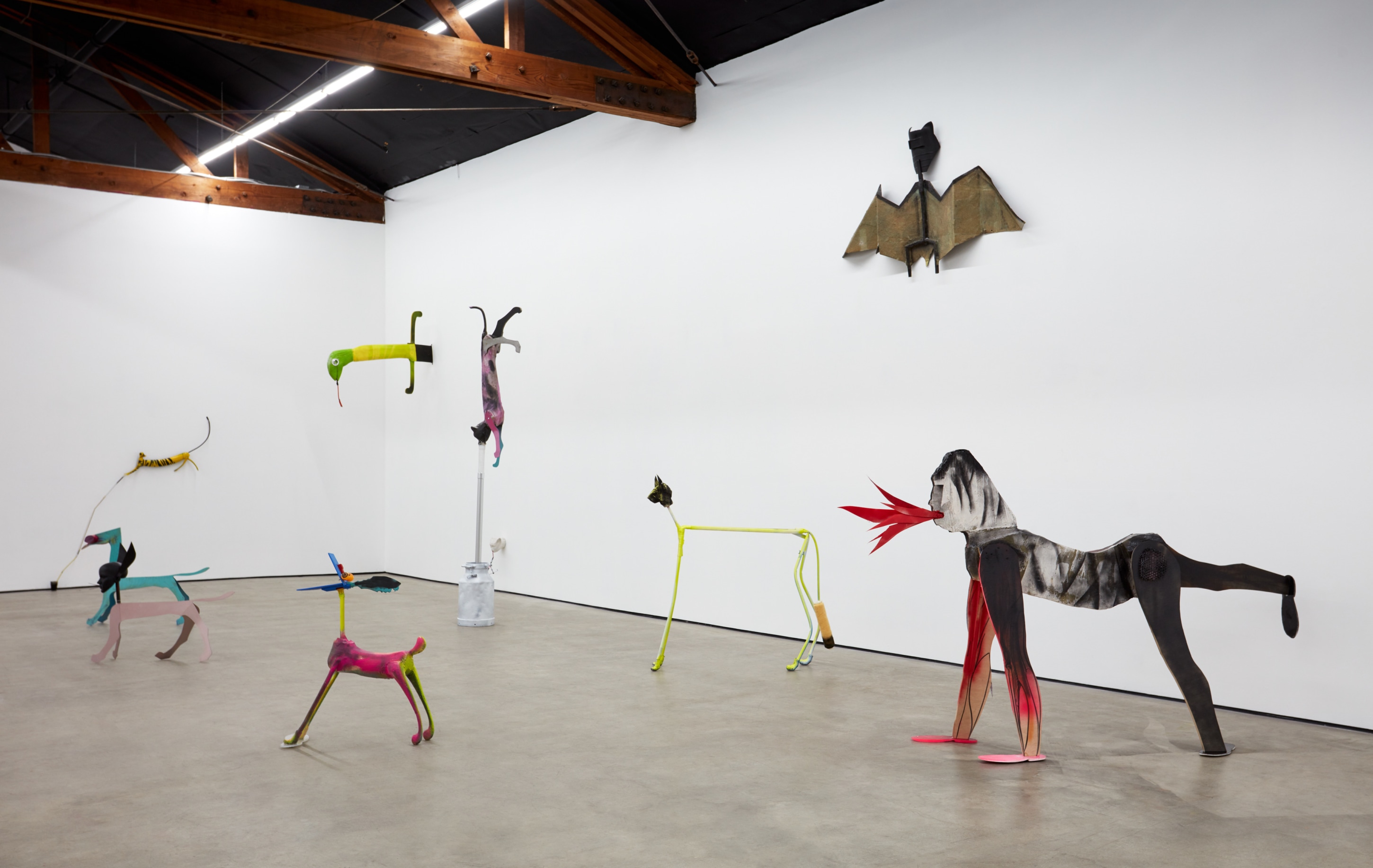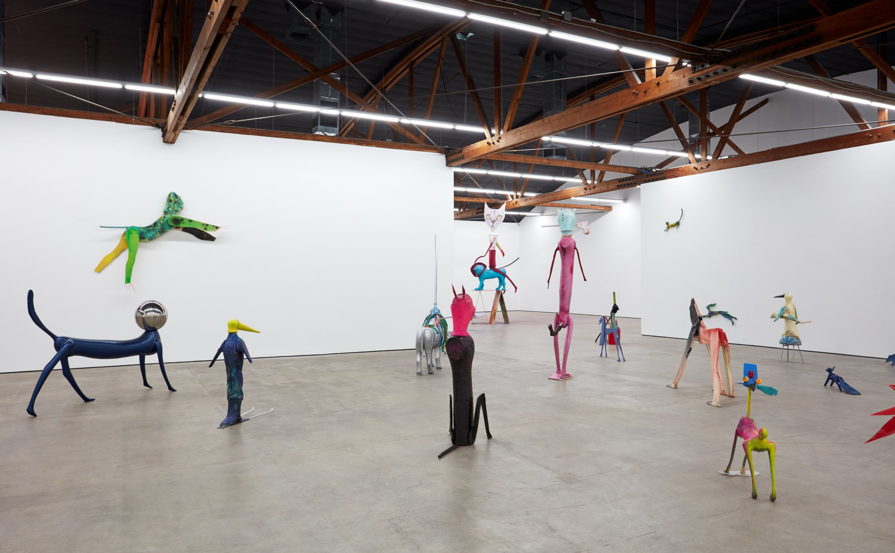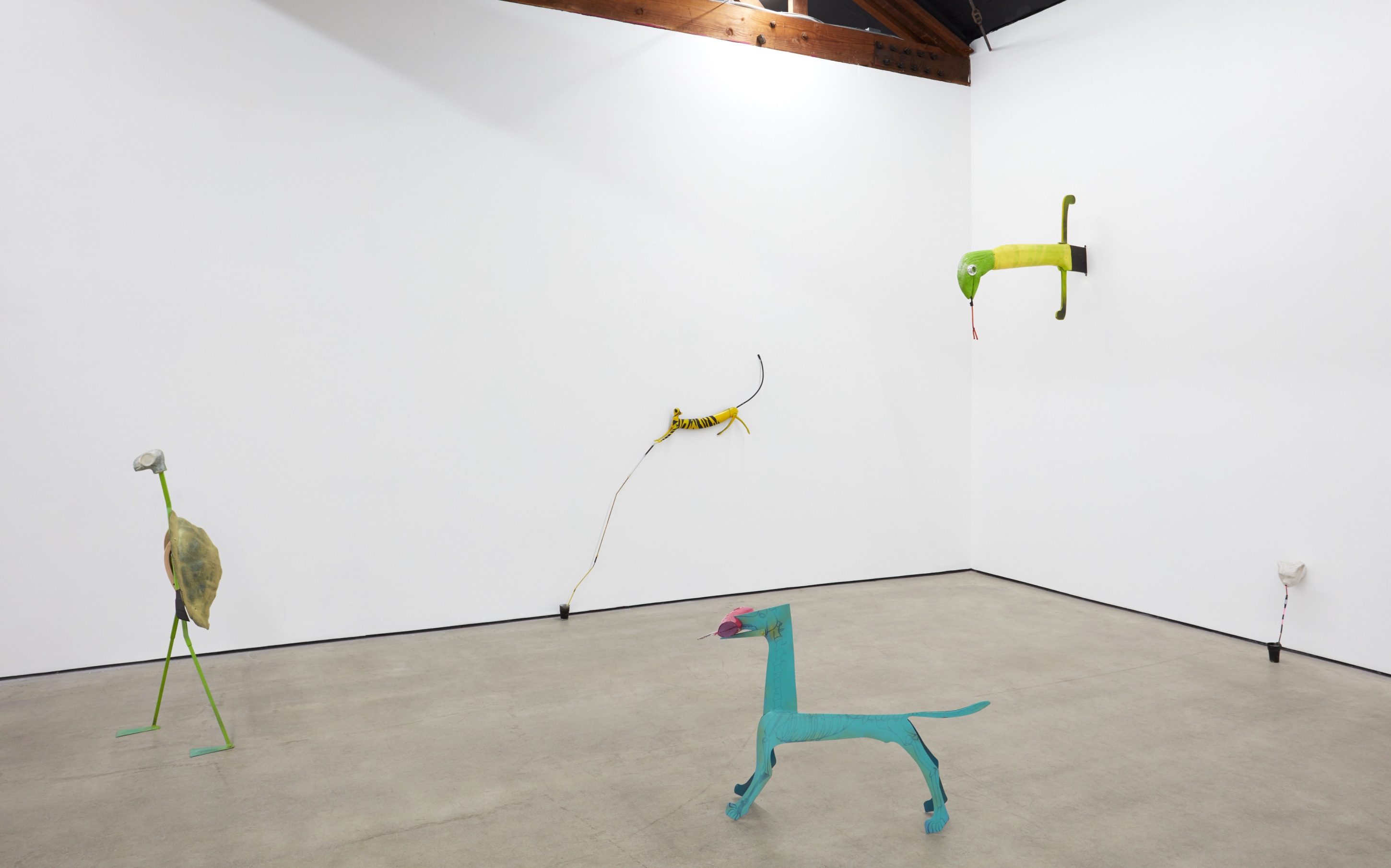 Cristian Răduță’s animals march in droves. A Noah’s Ark of improvised genetic anomalies populate Nicodim Gallery like an emergency spawning ground, but no two are paired or exactly alike. Apelikenesses can be seen from one angle and a shuffle of animalian ciphers from the other. Răduță is their shepherd, bringing to each form a unique trembling glory. This harmonious pattern of origin stories—both raw and cooked—ludically swirl in the artist’s grand tale of a double helix. His creatures are echos of archetypes, songs from a golden record played deep in outer space.