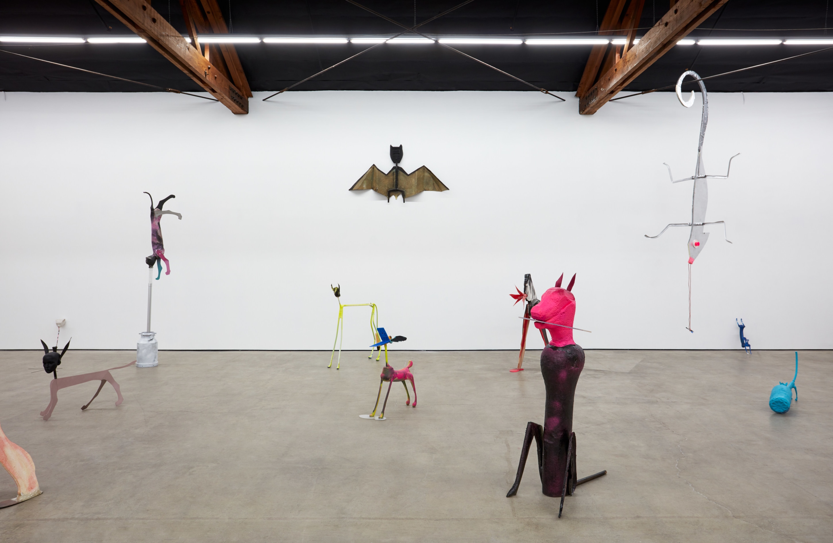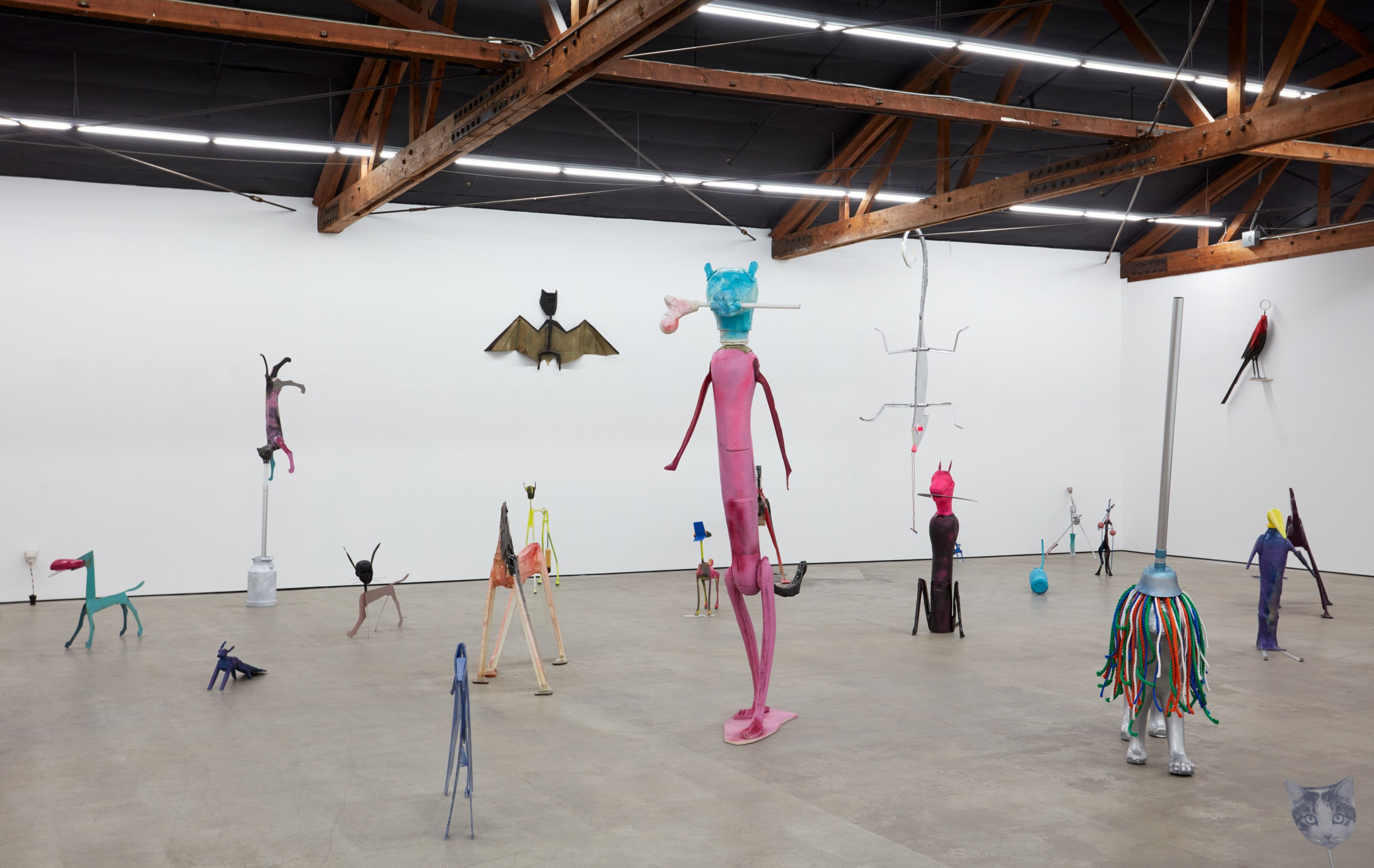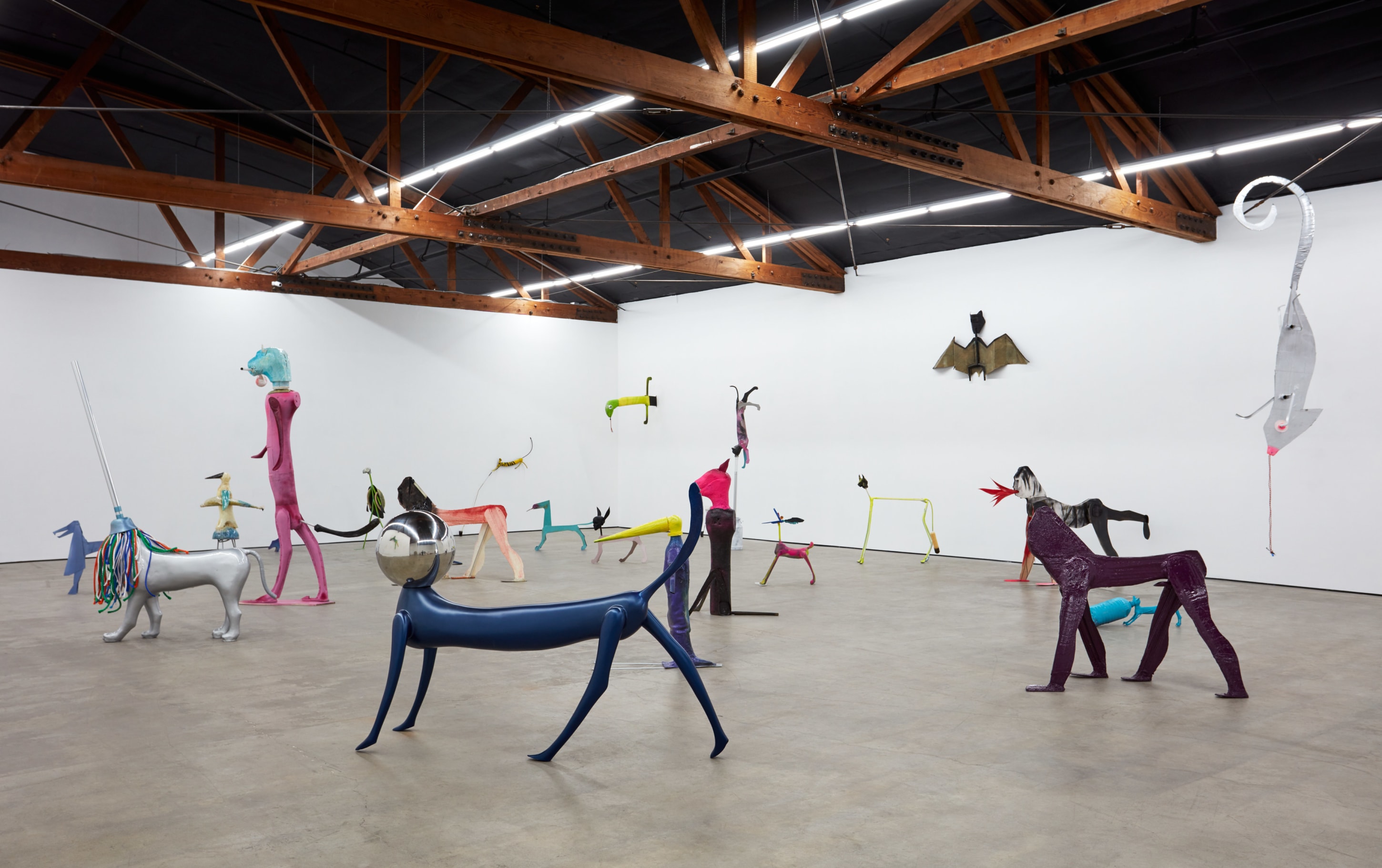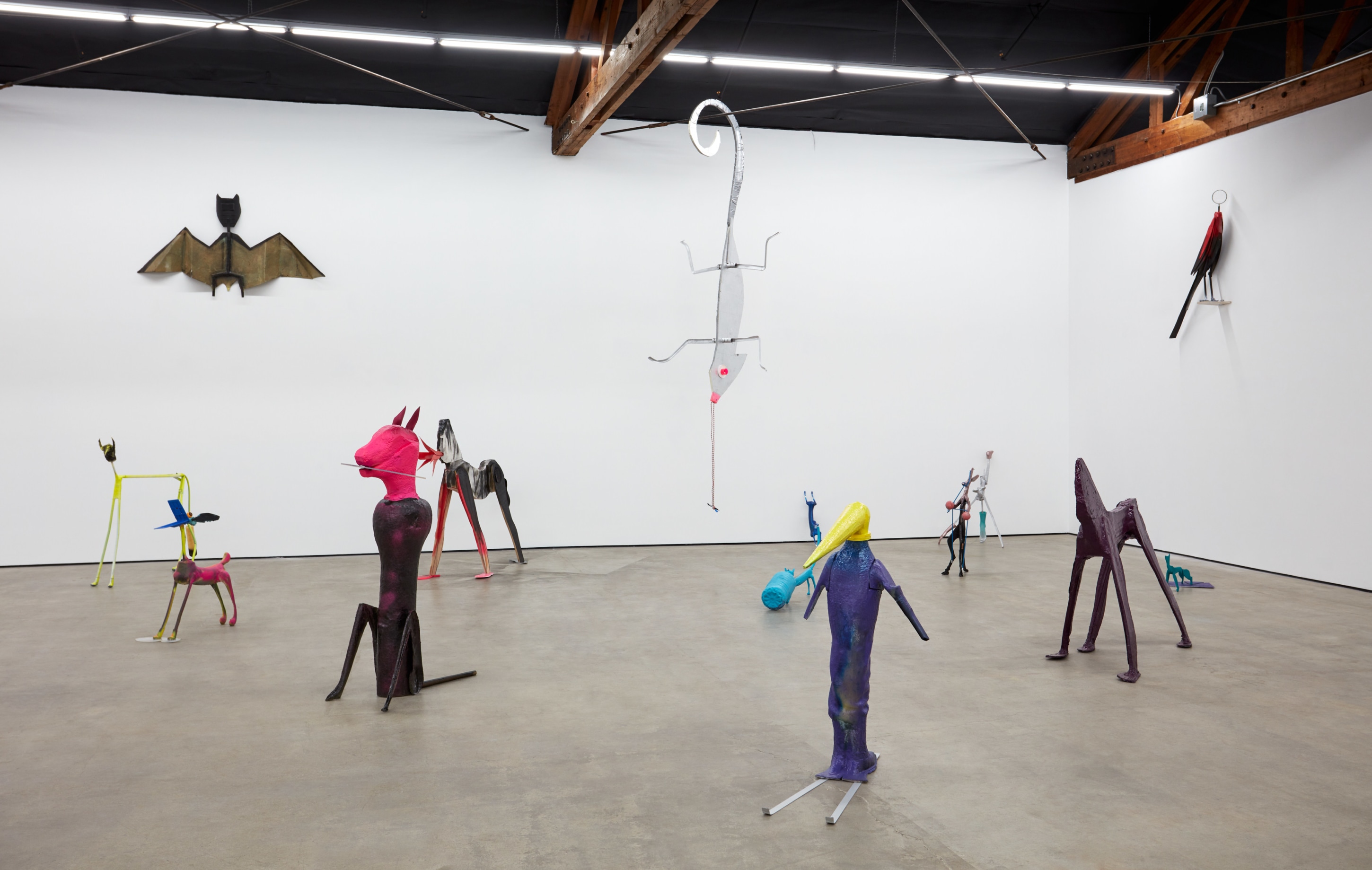 Cristian Răduță’s animals march in droves. A Noah’s Ark of improvised genetic anomalies populate Nicodim Gallery like an emergency spawning ground, but no two are paired or exactly alike. Apelikenesses can be seen from one angle and a shuffle of animalian ciphers from the other. Răduță is their shepherd, bringing to each form a unique trembling glory. This harmonious pattern of origin stories—both raw and cooked—ludically swirl in the artist’s grand tale of a double helix. His creatures are echos of archetypes, songs from a golden record played deep in outer space.