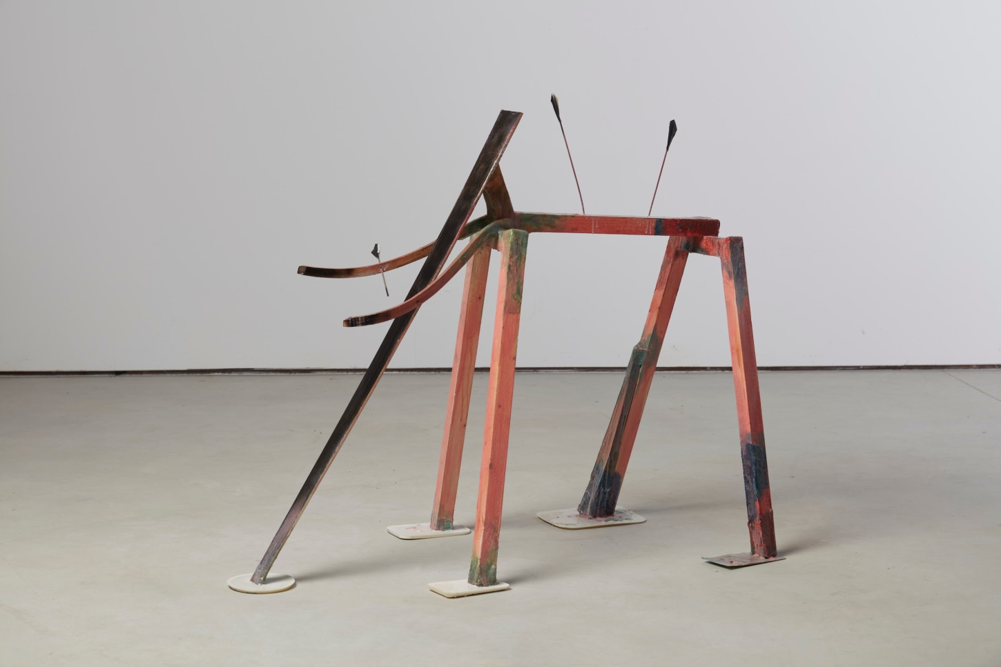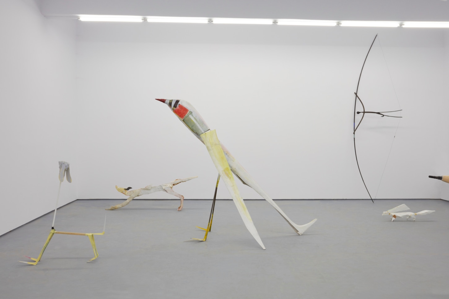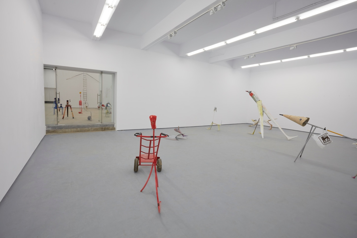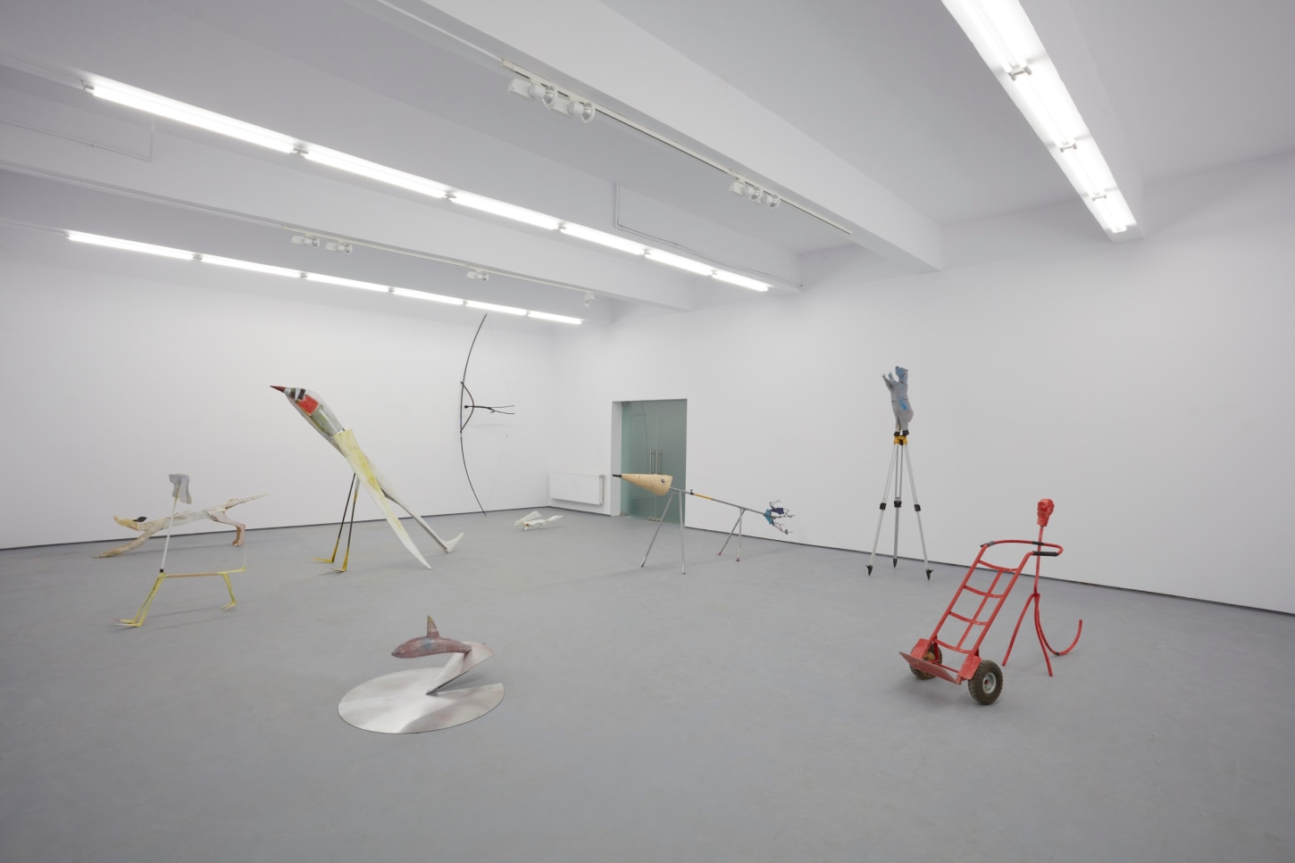 Cristian Răduță utilizes the gallery's architecture to create a snapshot of a play about to end, proposing a journey among and through shapes that contaminate each other. The characters seem to be created as a matter of urgency, through methods that sometimes went out of control. Temporary materials are mistaken as permanent—and the other way around—until the idea of improvisation becomes relative.
