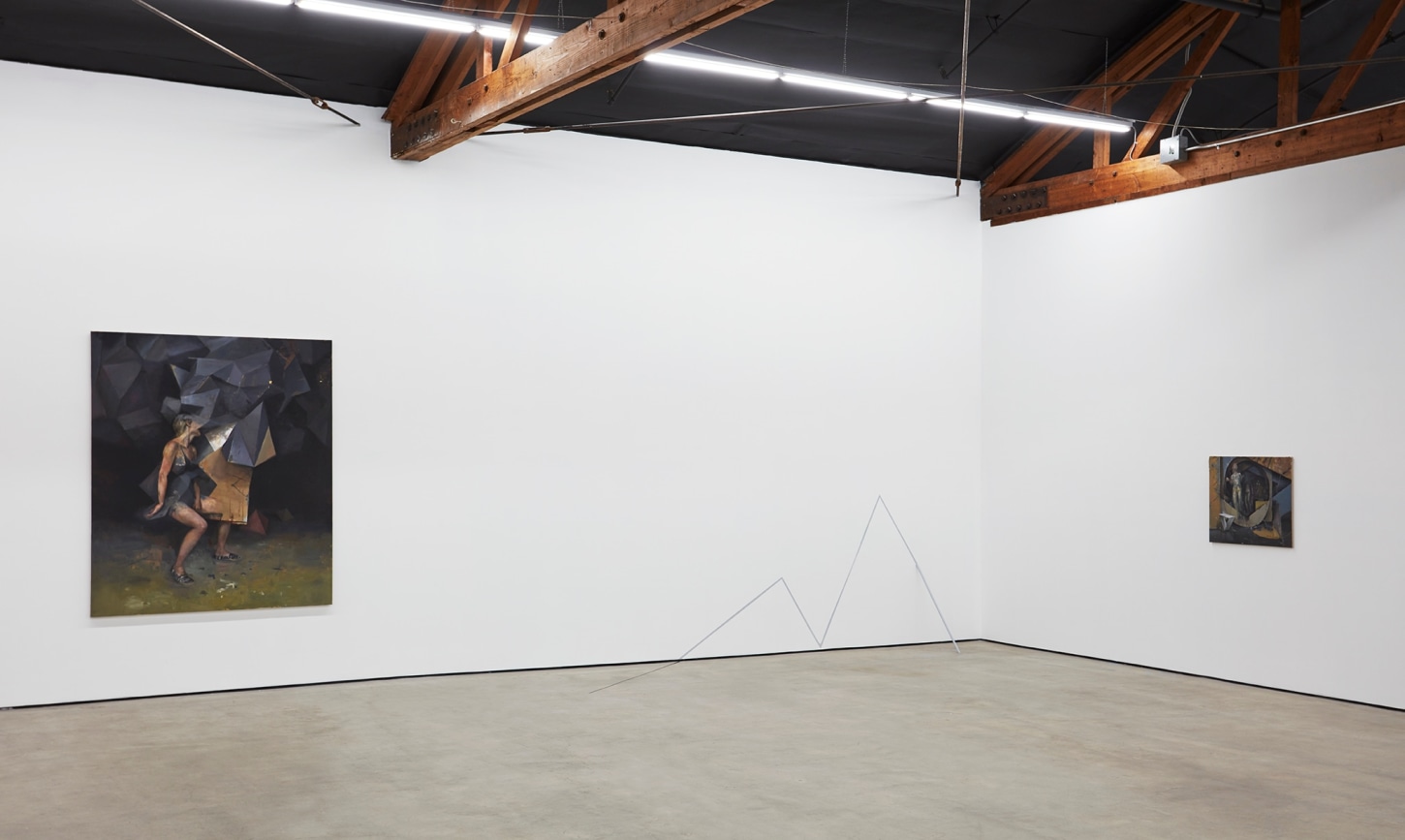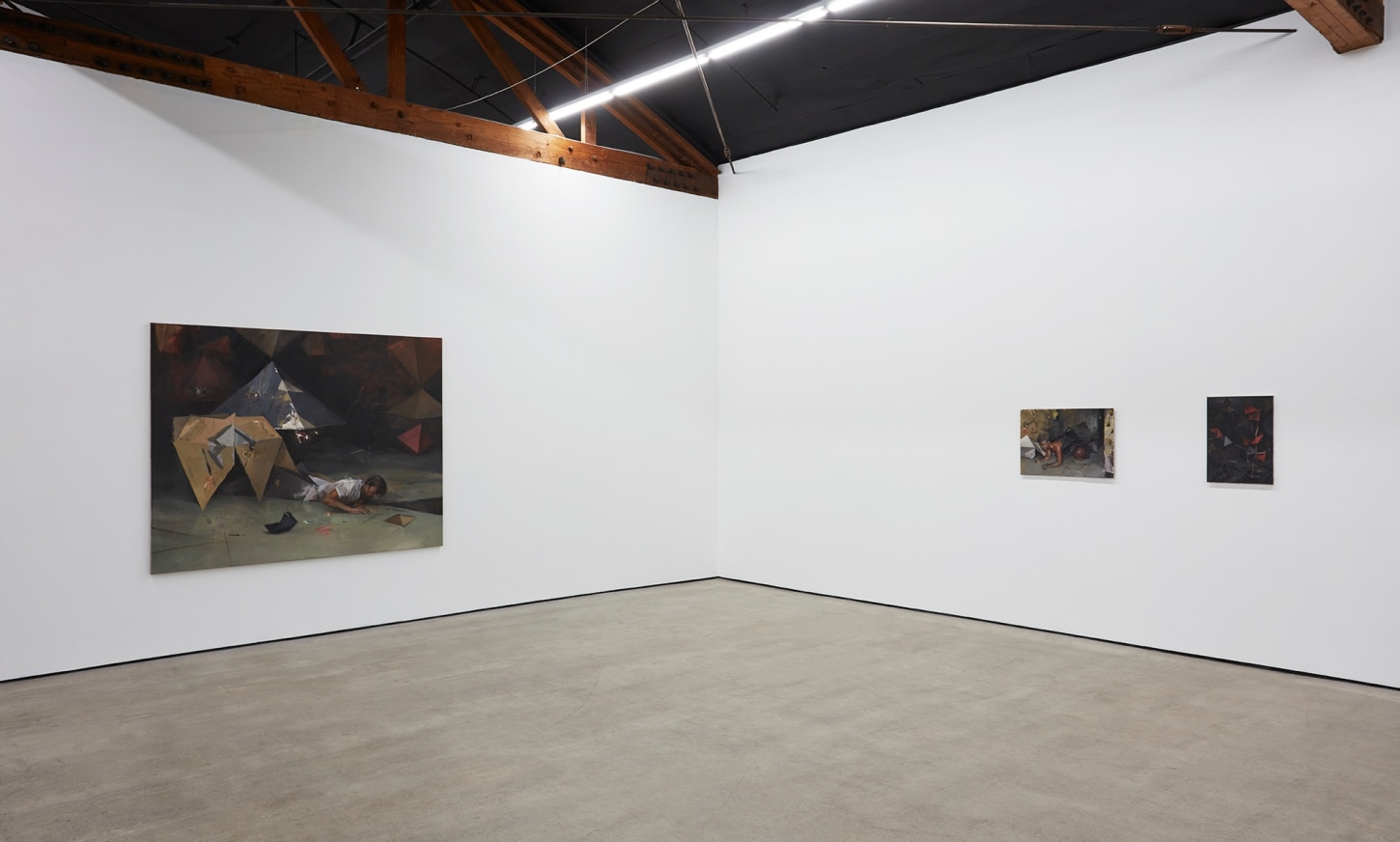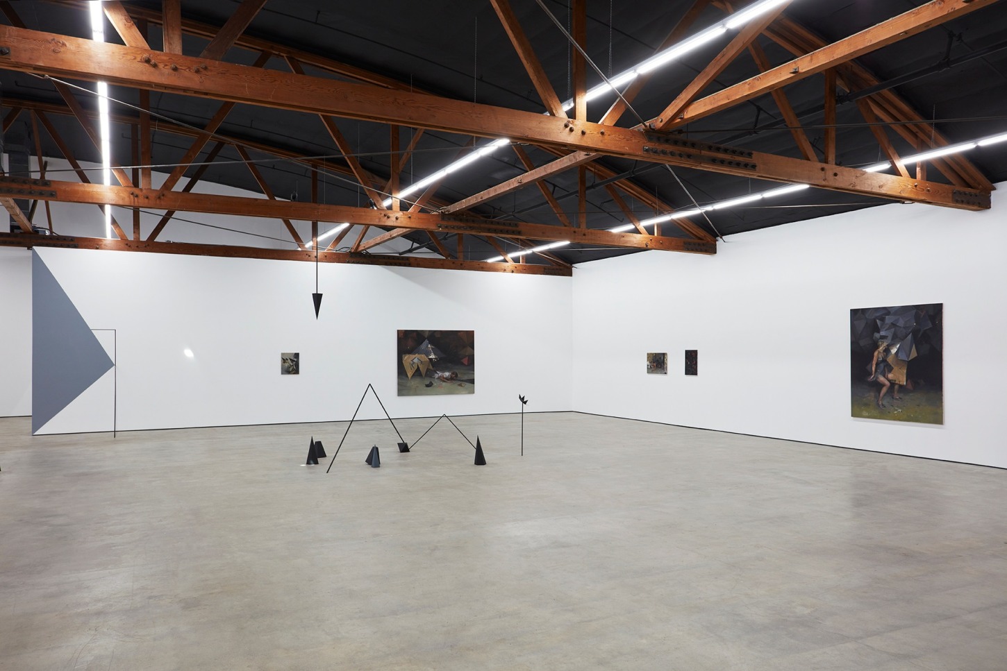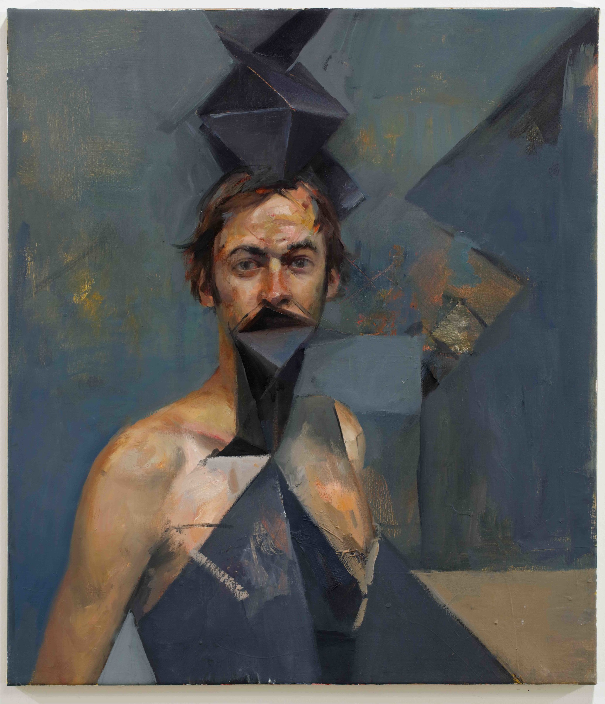 The paintings of Daniel Pitín are firmly holding on to the eternal distinction between light and darkness. Light, dispersed from an invisible and ungraspable source focuses on the surface of the canvas, piercing through it and finding its way around and reflecting through numerous forms folded into the composition of the image somewhere between architecture, scenography and a vivid inner space. The play of light and darkness is thus the key element of formation of the space, its moods and variability seemingly frozen in the static image on the canvas, yet still breathing with fresh inputs coming from its extraneous environment and ocular abilities of its viewers. The given matter, building blocks of the content stays in the constant flux of transfiguration, with shades of approaching light, through the light, as light itself. Pitín is thus touching field of prefigurations of his work, its main referential points in Czech avant-garde photography of František Drtikol, Jaromir Funke or Josef Sudek, in tradition of cubist painting and even deeper in history, as in baroque paintings through the technique of chiaroscuro, based on strong distinctions between tonal variations, therefore conceiving a dramatic, almost theatrical visual feeling.