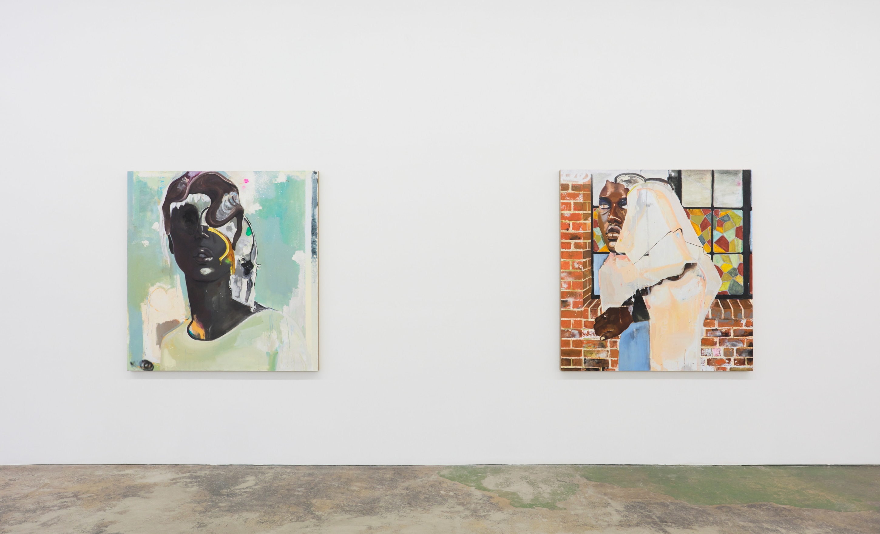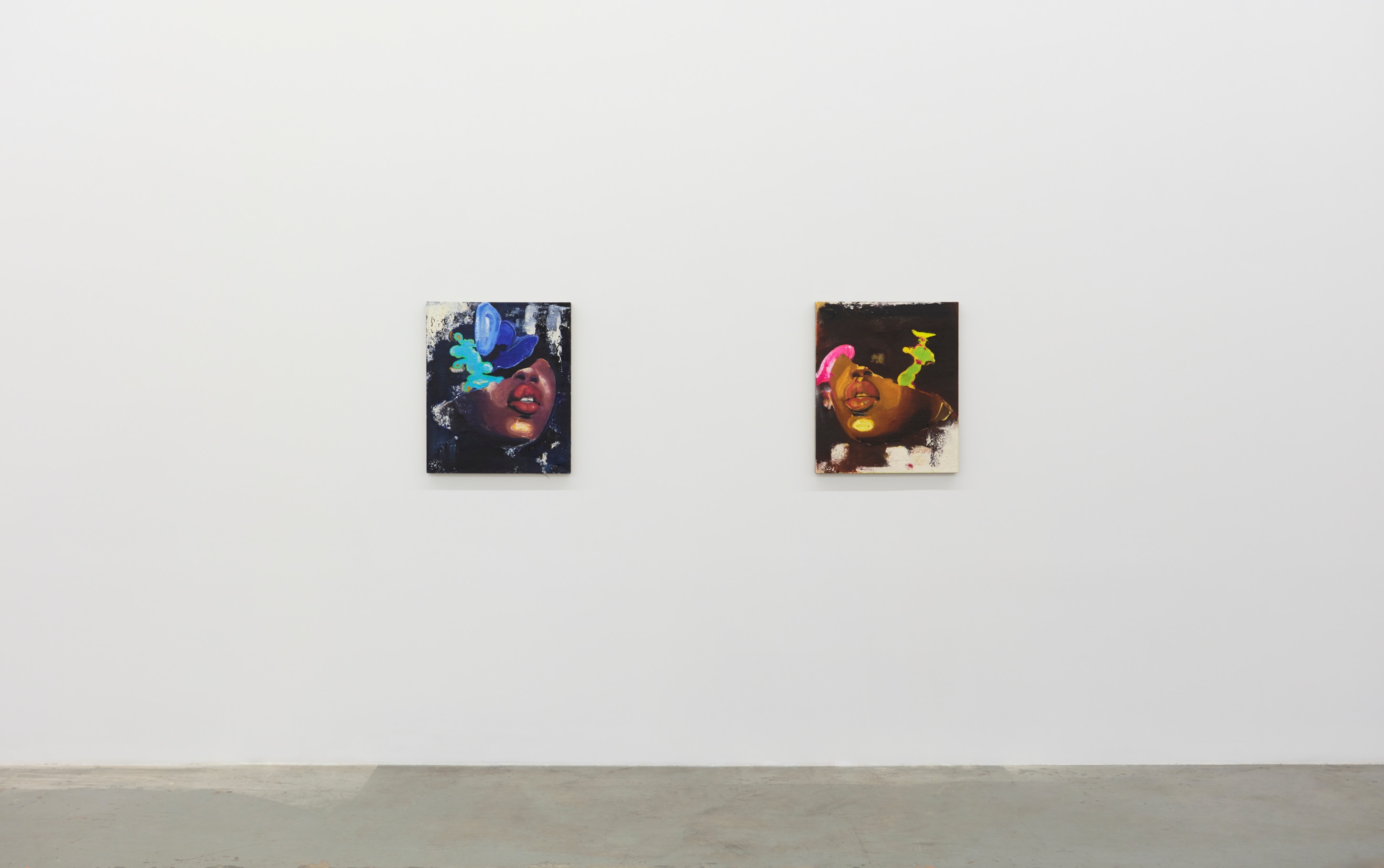 Johnson paints from improvised, freestyle digital collages sourced from personal and historical imagery arranged into fictional, sentimental situations. Each portrait and tableau is a love song to these intimate, yet universally relatable experiences. The surreal narratives are a visual, emotional onomatopoeia of individual and inherited memories, a vibrant dream journal of the collective consciousness. Johnson’s chiaroscuro is as much Ernie Barnes and Helmut Newton as it is Caravaggio.