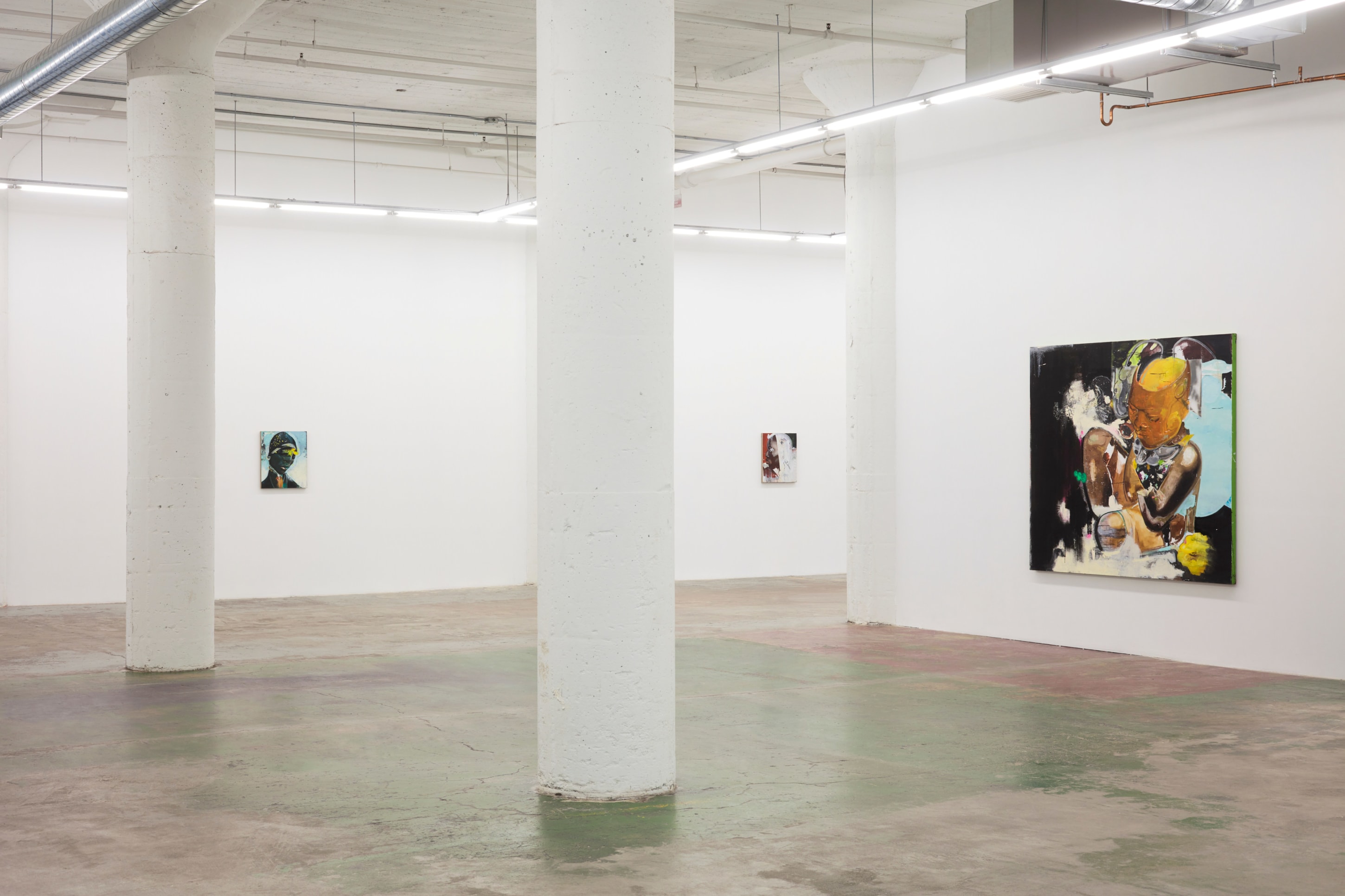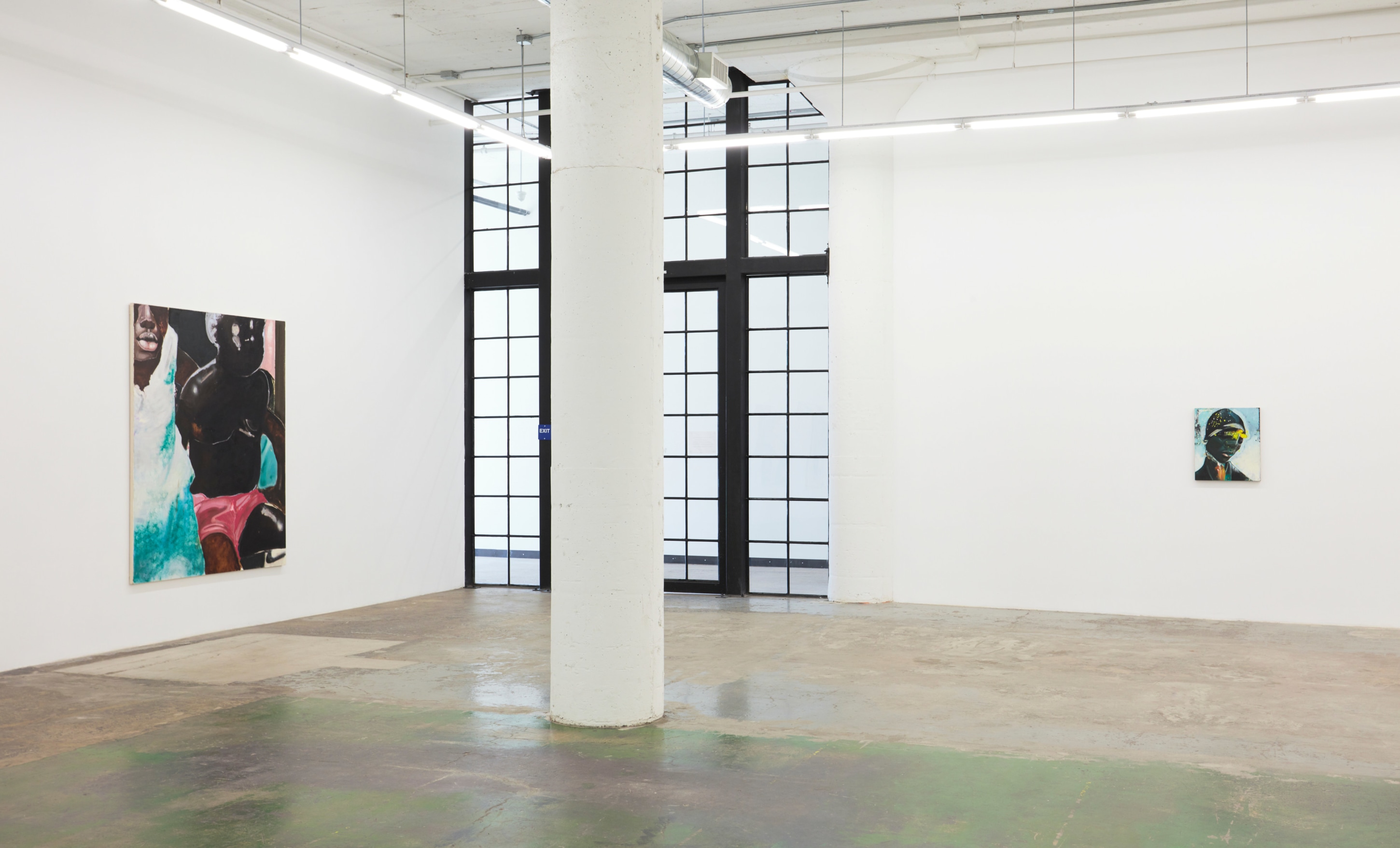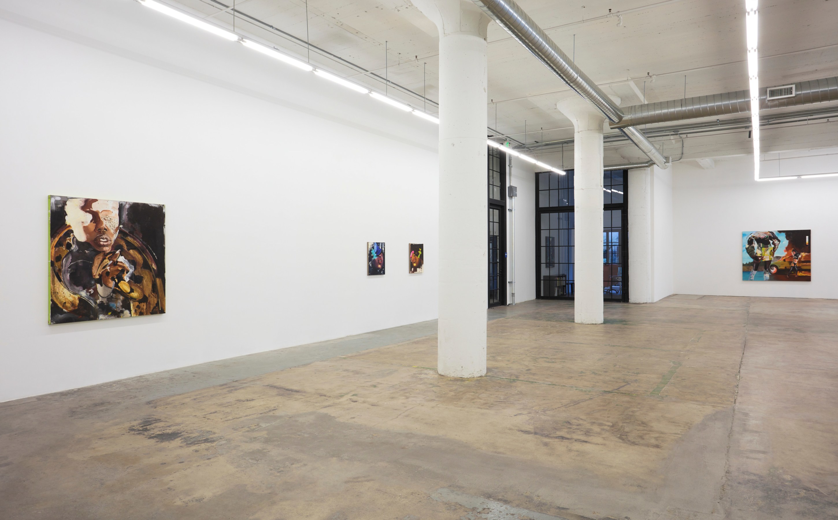 Devin B. Johnson approaches the canvas like a musician. You hear his work as much as you see it. His rhythm is architectural and expressive with a heavy textural backbeat. He’ll spray plaster on the substrate to pump up the bass through the subsequent layers. It pulses beneath the spray paint, stains, stamps, drips, acrylic, oil, and oil sticks that put the meat on his figures, riffs, and hooks. His subjects have been through things by the time they emerge, you can hear it in their voices.