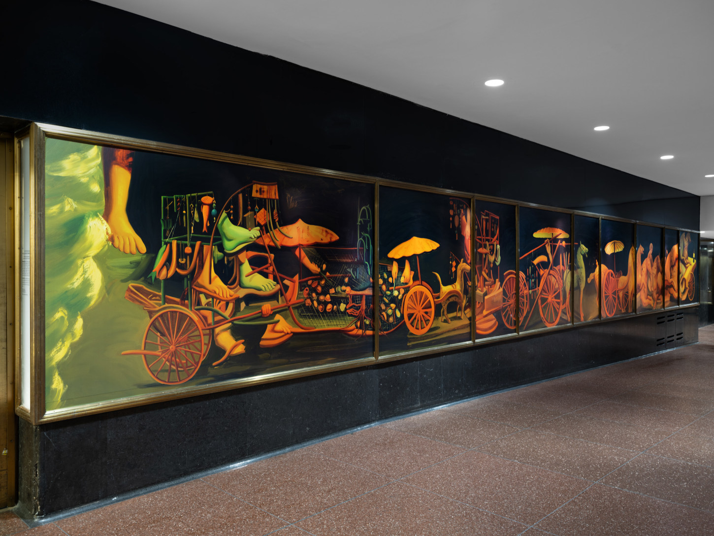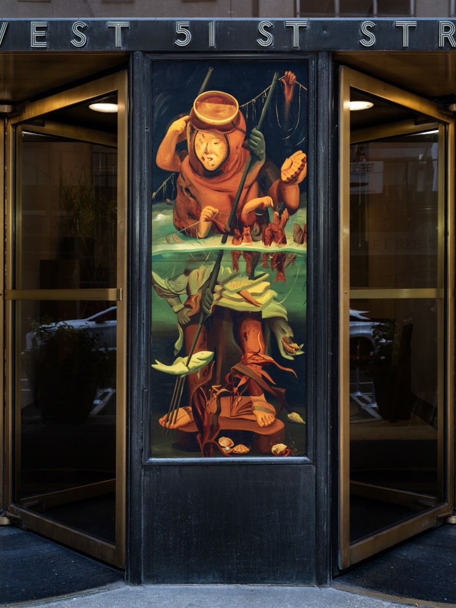 Expanding from the vitrines, a curated selection of recent paintings by the artist can be viewed at 10 Rockefeller Plaza, 30 Rockefeller Plaza, 50 Rockefeller Plaza, and Radio Park. As part of Art Production Fund's Art Sundae program, which aims to build confidence in children through art, the artist will also host a free workshop, collaborating with participants to create an installation to be presented at the 10 Rockefeller Plaza window.