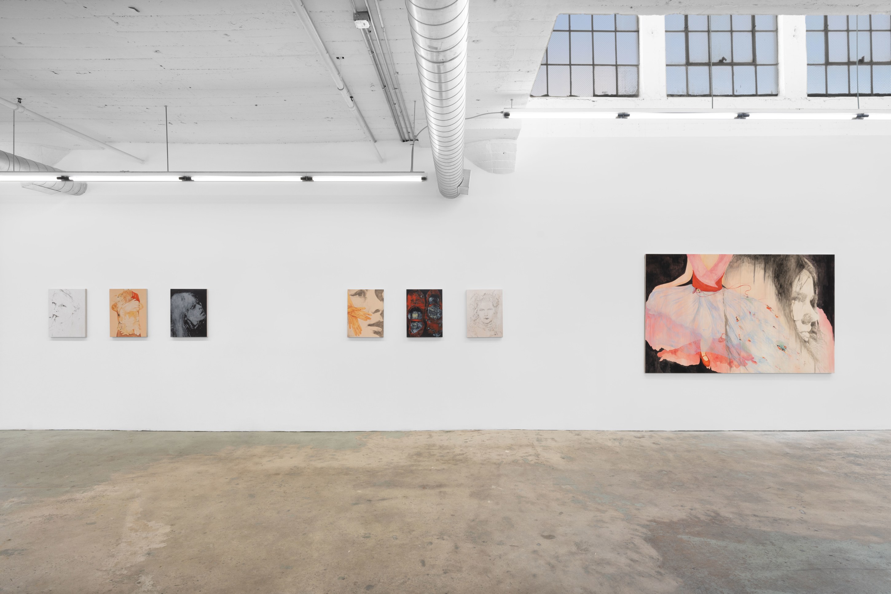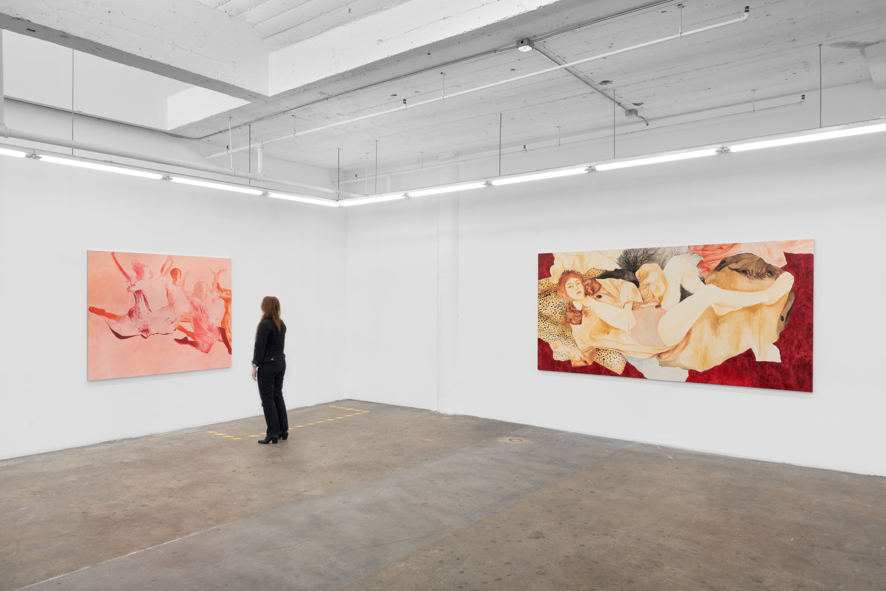 Emily Ferguson’s It Girl., her first exhibition with Nicodim, is one part loose meditation on the female experience as described in the artist’s own visual language, and another an exploration of paint, aesthetics and style. These new works oscillate between implied narrative and pure innervation, shifting seamlessly between the spoken and the felt, an exploration of how one might establish a visual relationship to an emotional sensation.