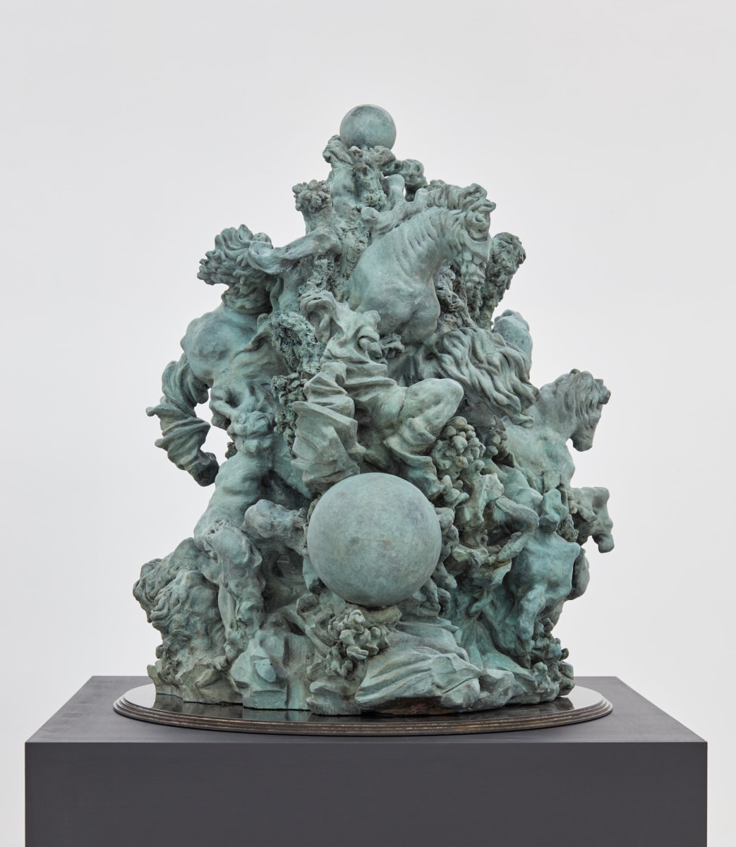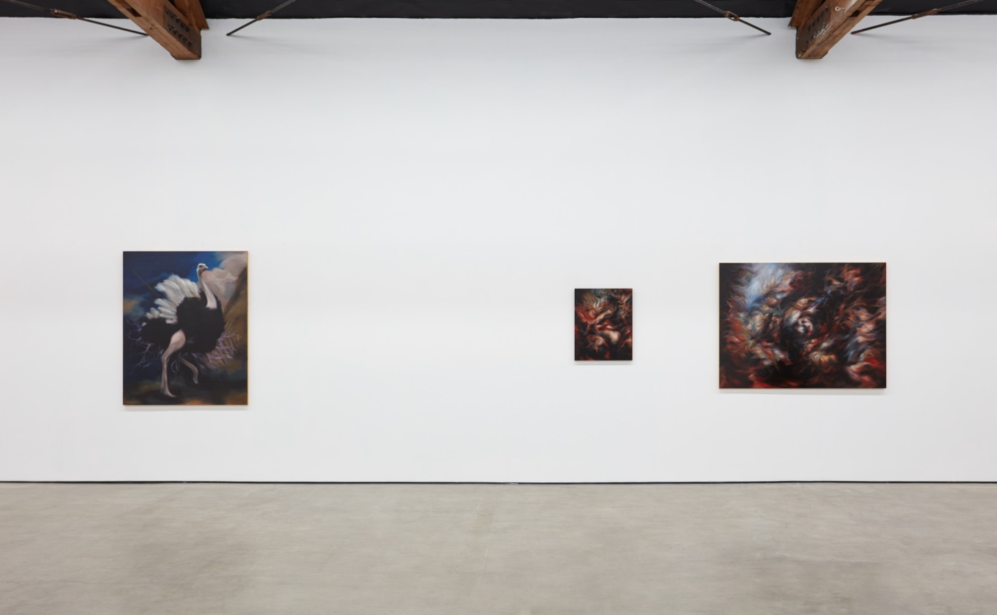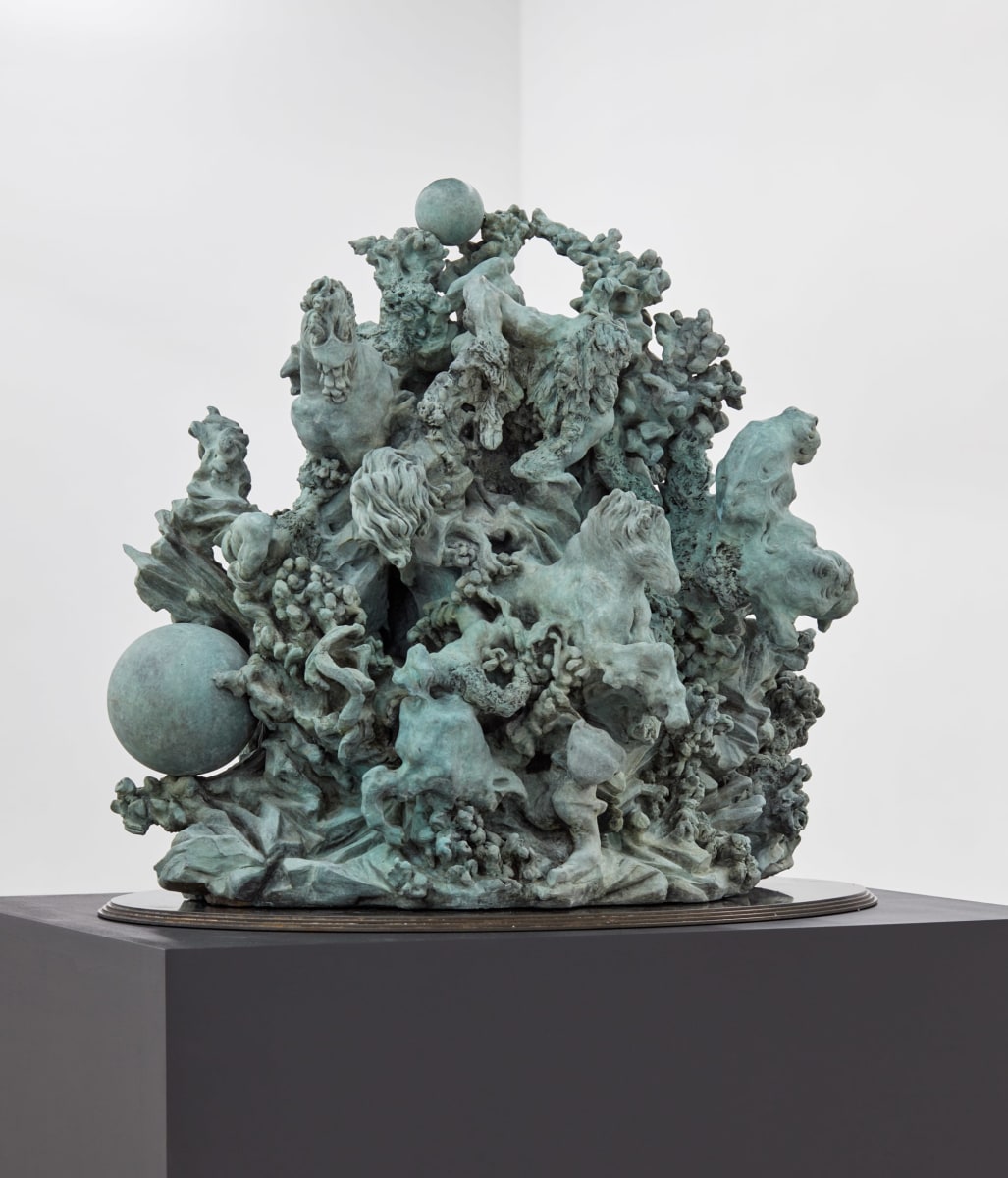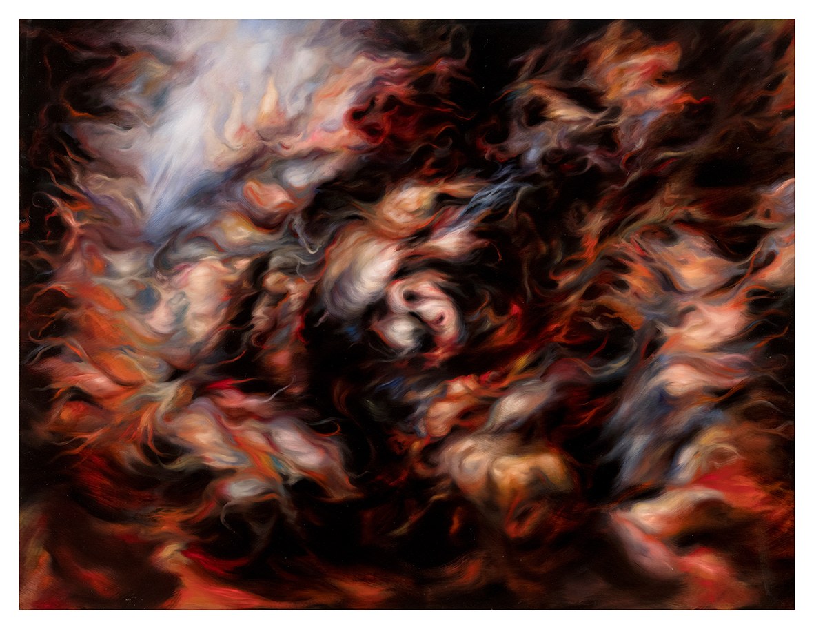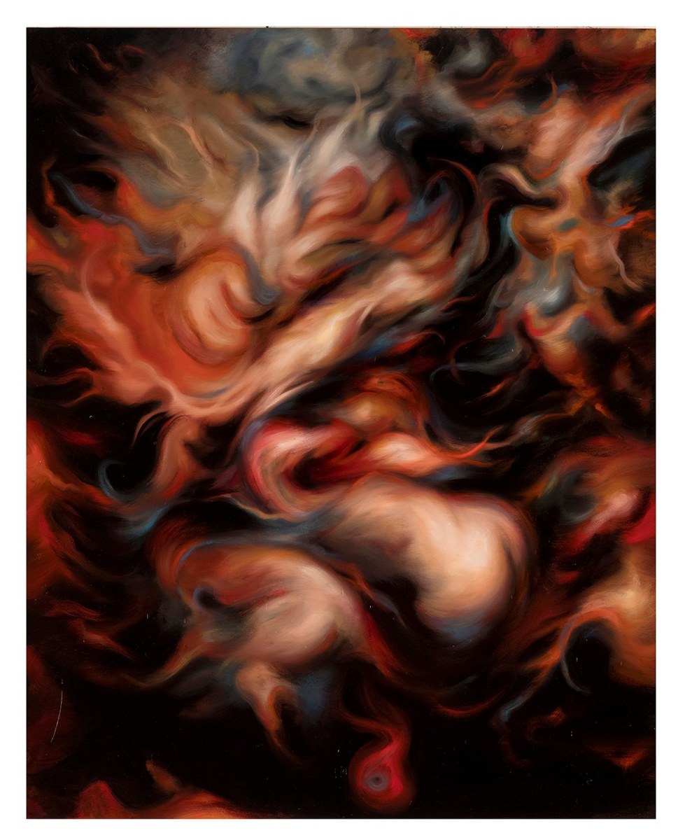 To Hugo Wilson, animals are mirrors of human consciousness. We project our desires, hopes, and impulses onto the animal, and the animal reflects, refracts, and hurls them back to us. Unlike the Old Masters he references in his paintings and bronzes, however—George Stubbs, Peter Paul Rubens, Nicolas Poussin—Wilson’s menagerie is not beneath the human on the food chain or emblematic of the love of Christ. These creatures are Gods themselves, emerging from turbulent clouds of divine ether, meme warfare, and YouTube clips with agendas all their own, radiating their sentience in neon geometric yantras.