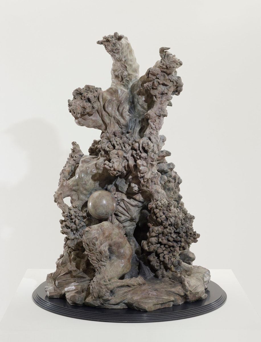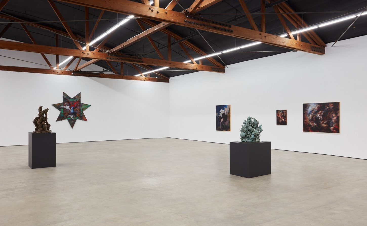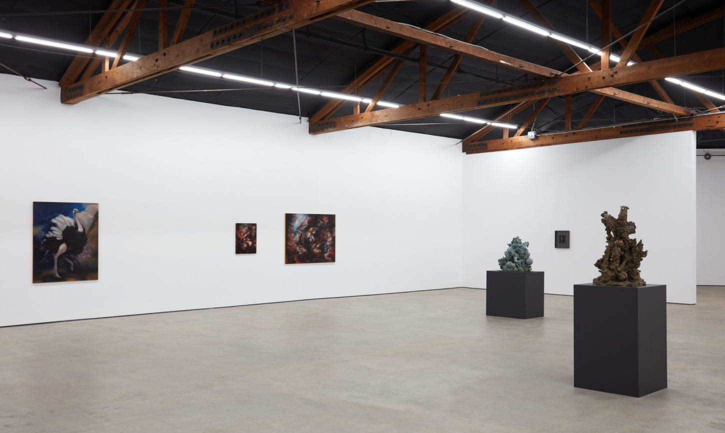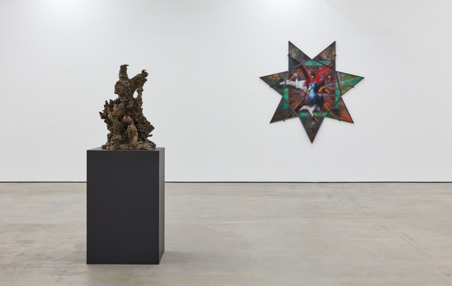 The work is a rorschach of origin legends. His stampeding Bulls, 2018, pull their muscular forms from the cosmic aspic that encases them, leaping from their pedestal into tangible reality. Septagon, 2018, is a seven-walled gehenna for an impossible avian community that explodes out of its confinement, expanding the canvas to the Great Beyond. In our eagerness to apply our own personal narratives to Wilson’s beasts and the baroque noise from which they emerge, one begins to question herself, her own genesis and binary belief systems: Is this the birth or demise of the universe? Why can’t Jesus be an ostrich? Is that really what a zebra’s teeth look like? Wilson’s work doesn’t answer. Wilson’s work is.
