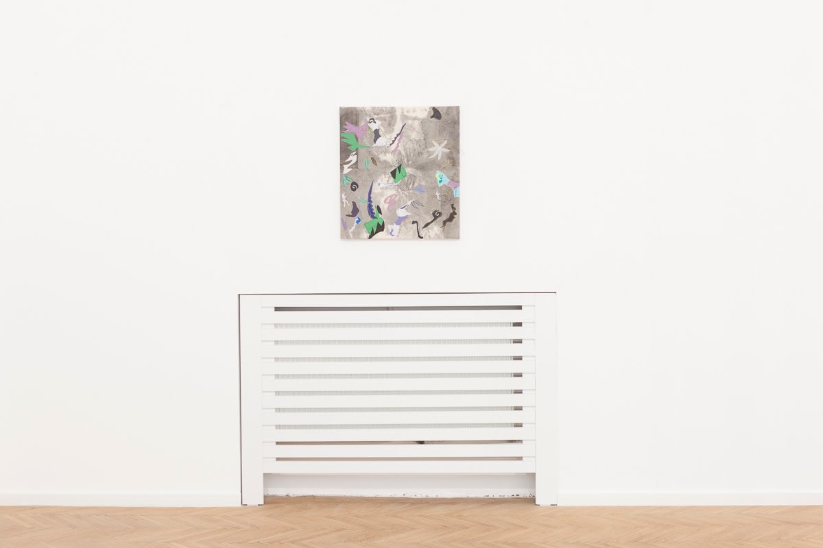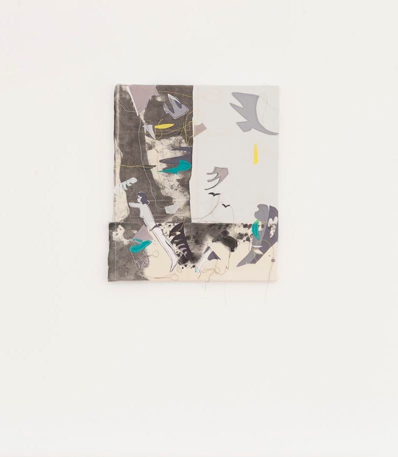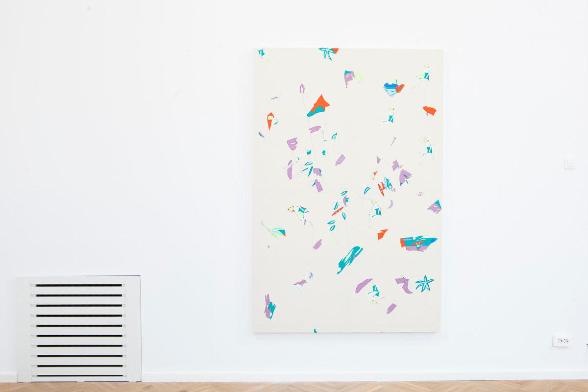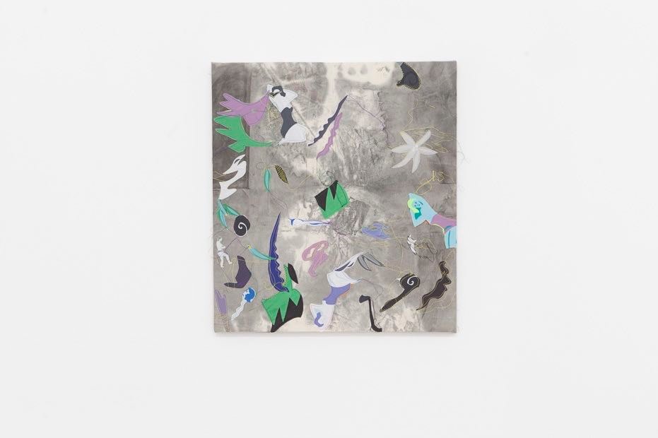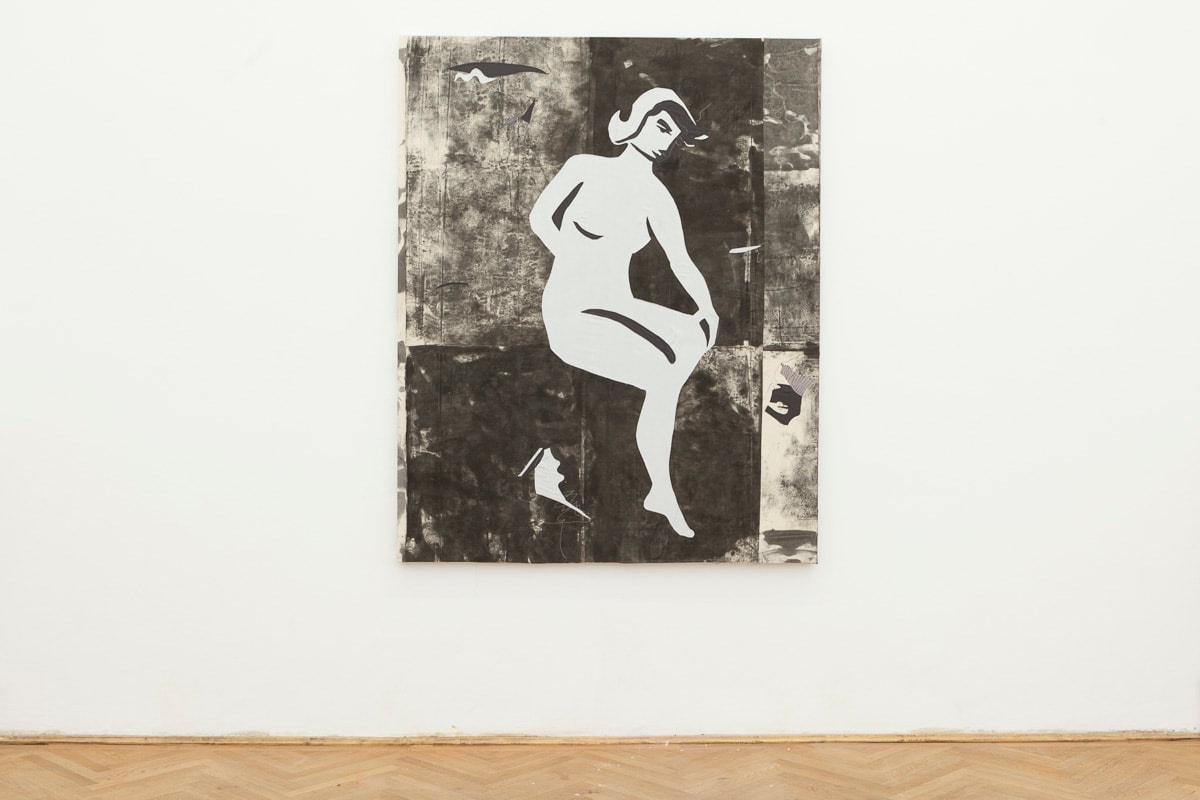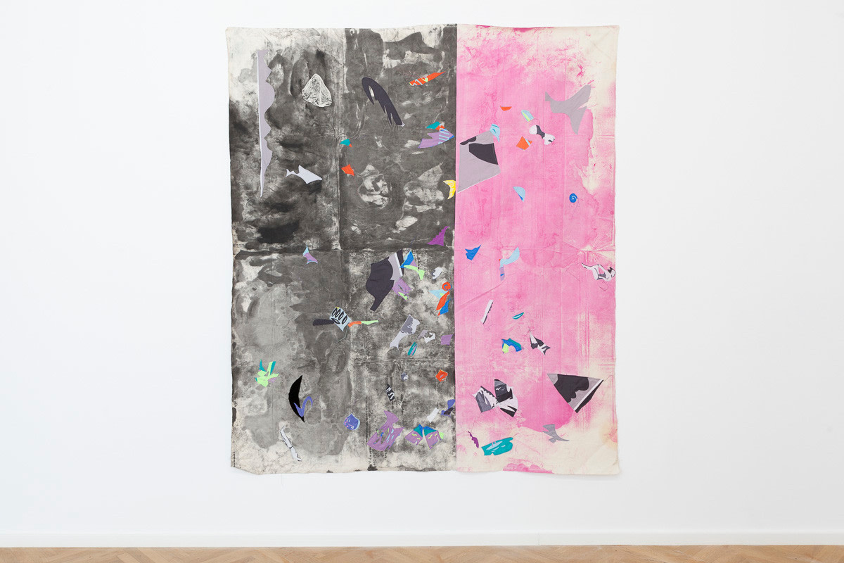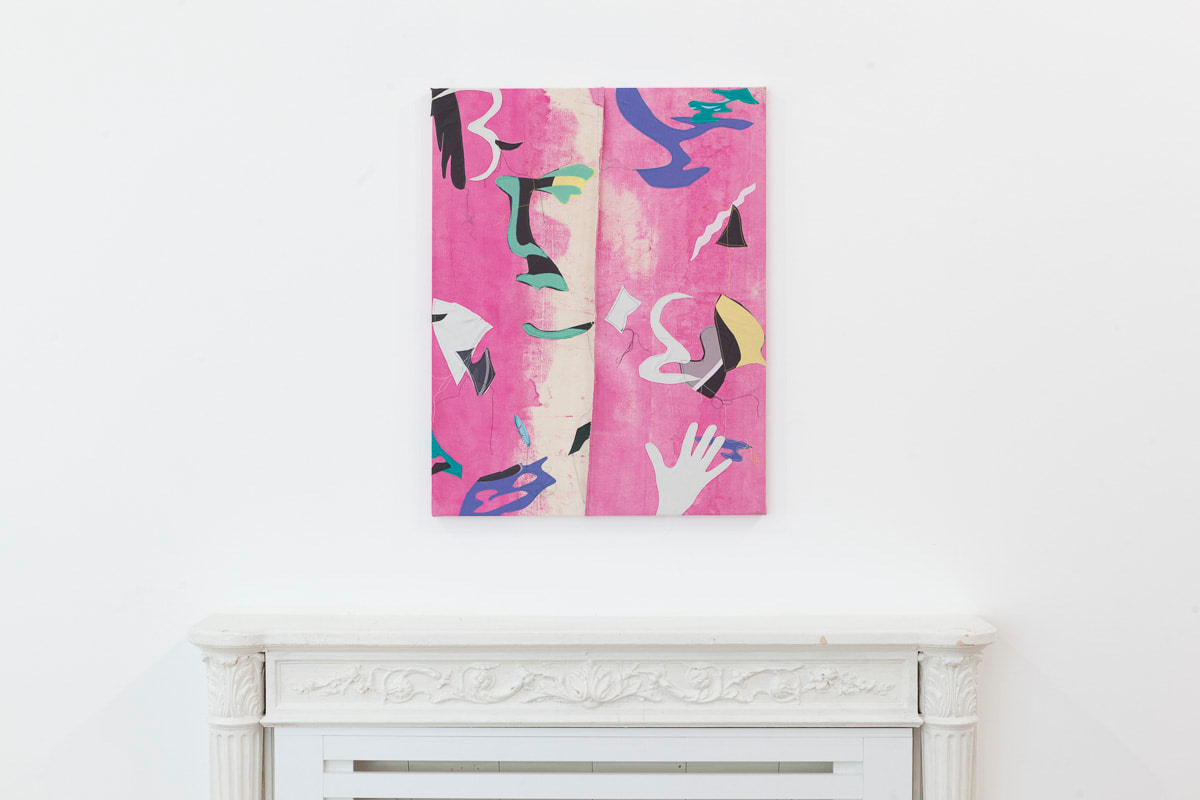 Galeria Nicodim Bucharest is pleased to present Ioana Stanca and Alex Rathbone. Stanca’s deceptively slick canvases begin with the stigmatized acts of cutting and sewing. Acid-hued pictograms of men and women at leisure separate and dissipate into a smorgasbord of constituent parts, bordering on abstraction—a mimesis of beauty industry advertisement logic nonetheless irresistible in its immediacy, humanized here and there by a stray bit of thread, a jagged edge tracing the fault line of the artist’s hand.