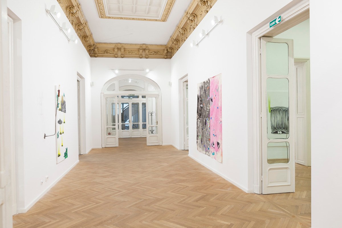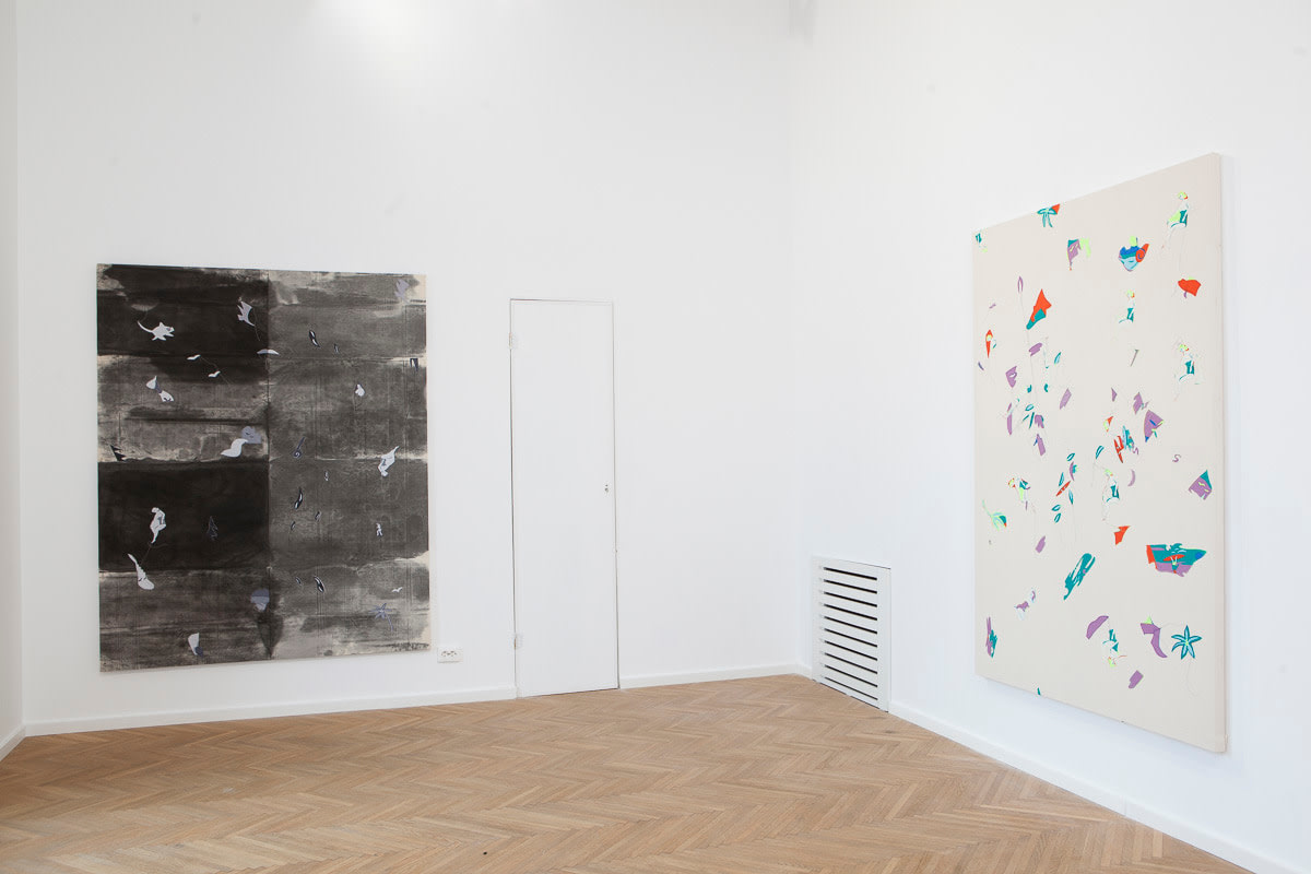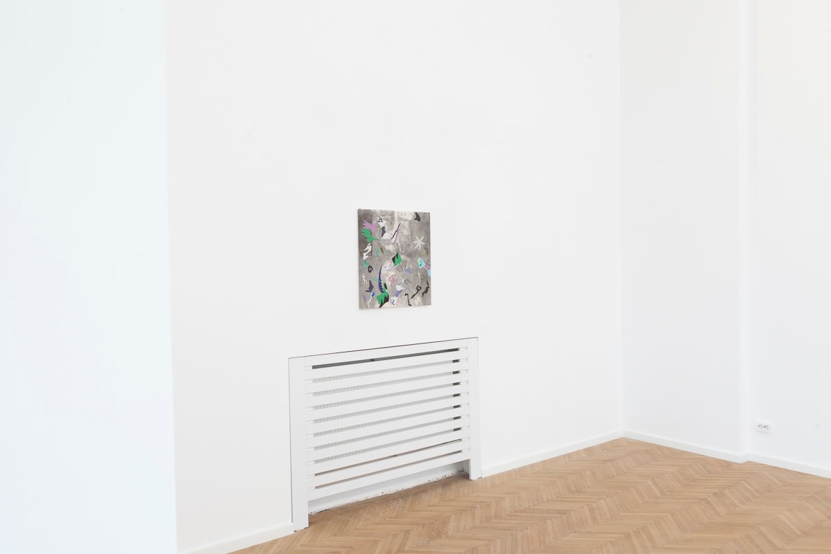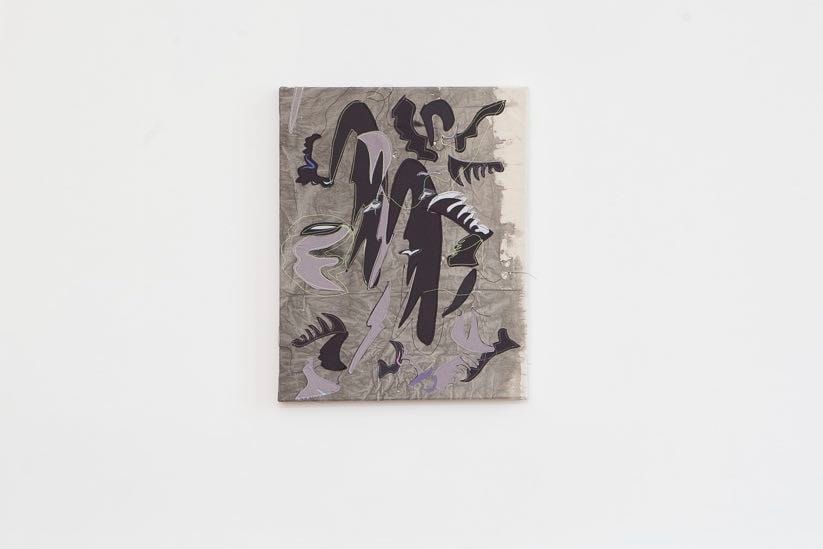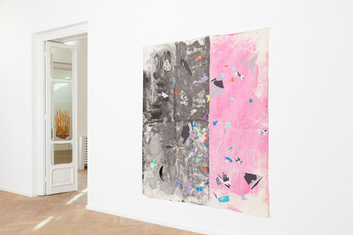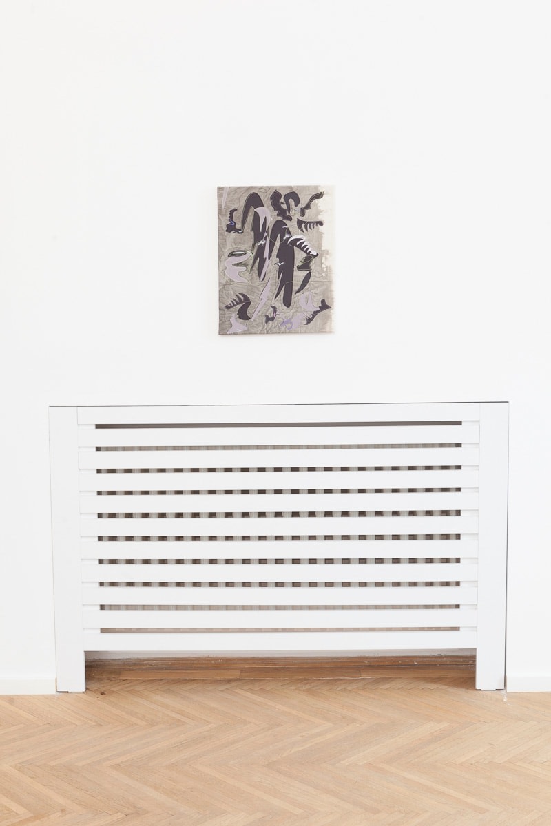 Galeria Nicodim Bucharest is pleased to present Ioana Stanca and Alex Rathbone. Stanca’s deceptively slick canvases begin with the stigmatized acts of cutting and sewing. Acid-hued pictograms of men and women at leisure separate and dissipate into a smorgasbord of constituent parts, bordering on abstraction—a mimesis of beauty industry advertisement logic nonetheless irresistible in its immediacy, humanized here and there by a stray bit of thread, a jagged edge tracing the fault line of the artist’s hand.