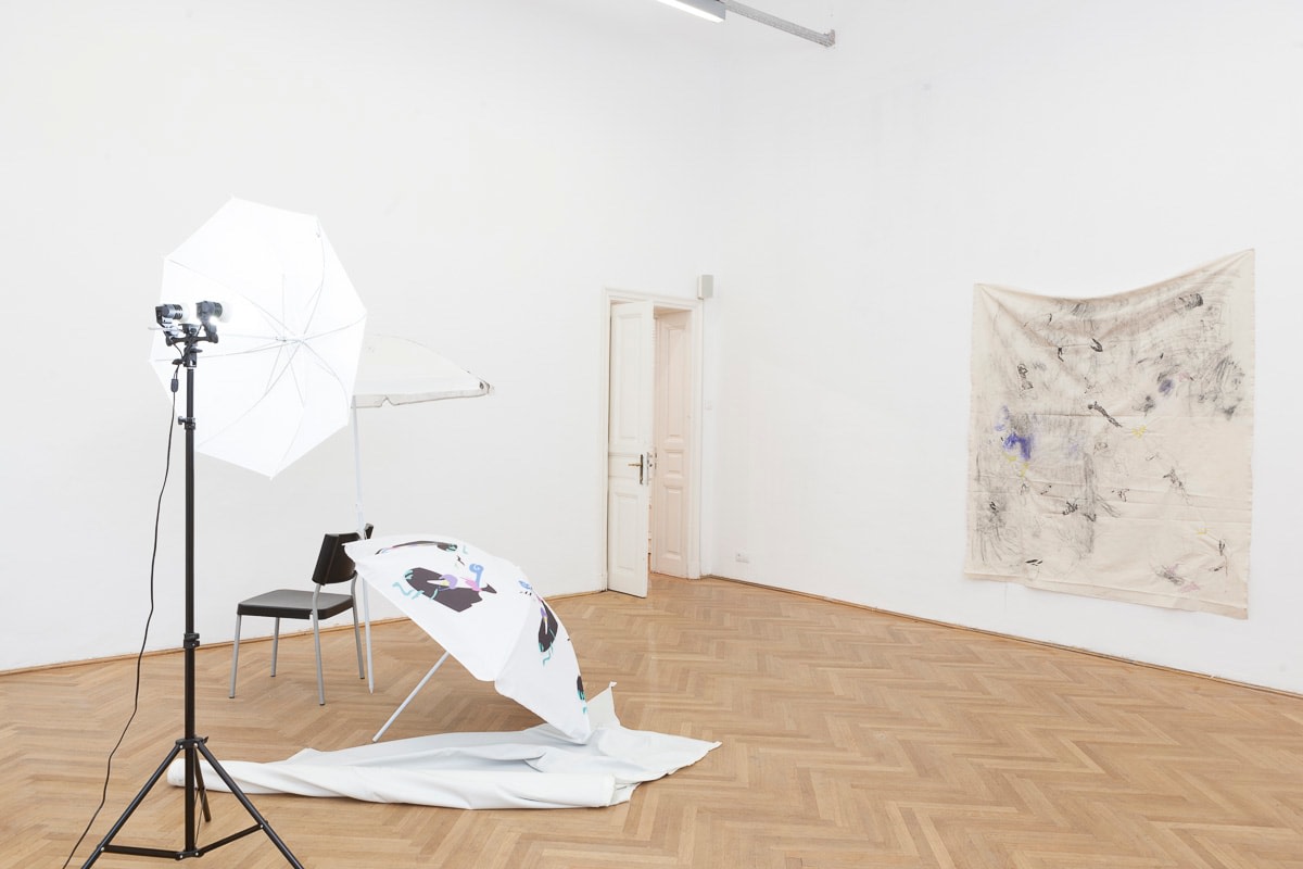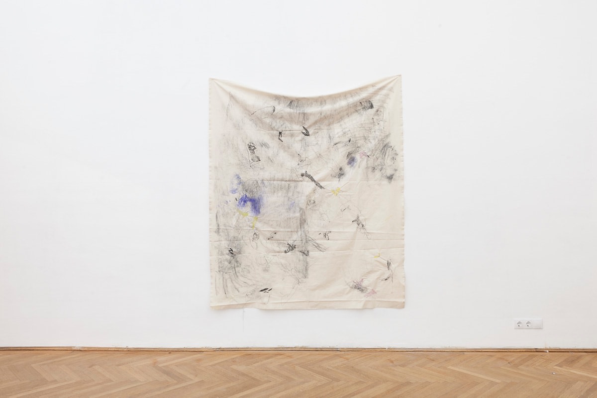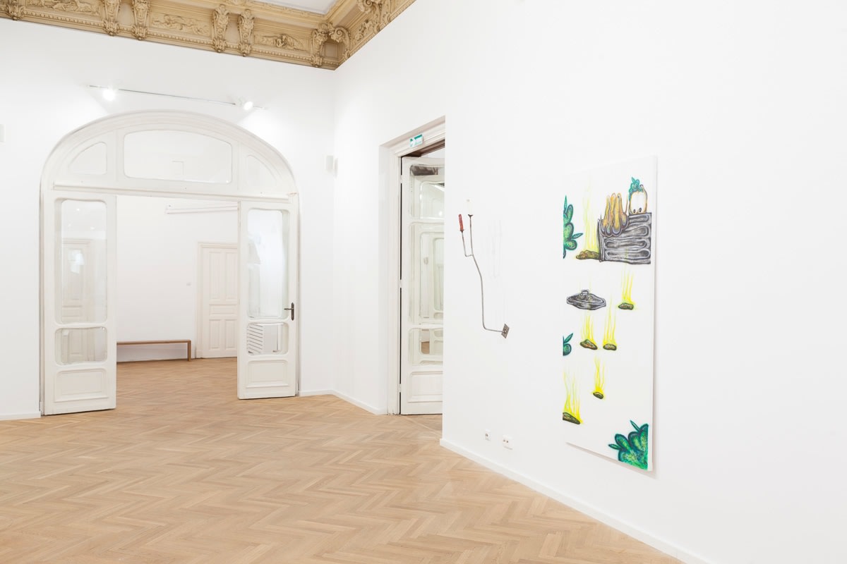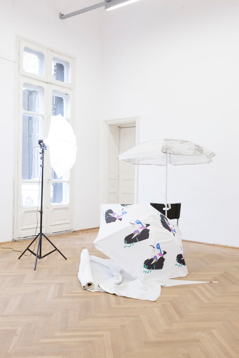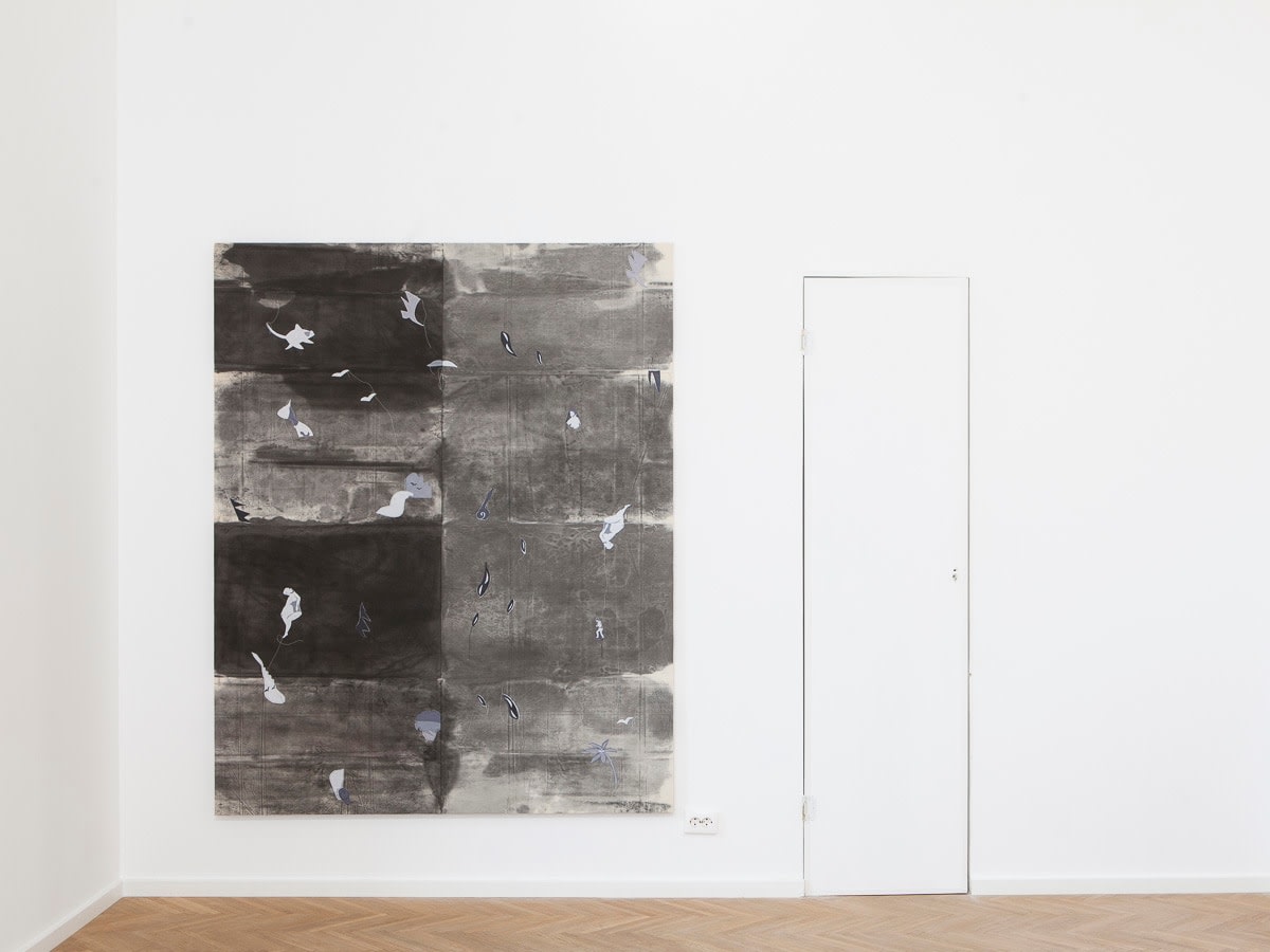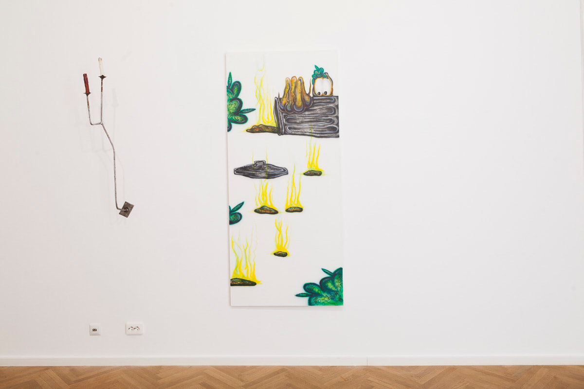 Galeria Nicodim Bucharest is pleased to present Ioana Stanca and Alex Rathbone. Stanca’s deceptively slick canvases begin with the stigmatized acts of cutting and sewing. Acid-hued pictograms of men and women at leisure separate and dissipate into a smorgasbord of constituent parts, bordering on abstraction—a mimesis of beauty industry advertisement logic nonetheless irresistible in its immediacy, humanized here and there by a stray bit of thread, a jagged edge tracing the fault line of the artist’s hand.