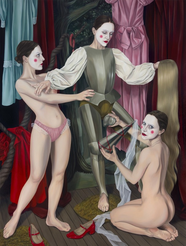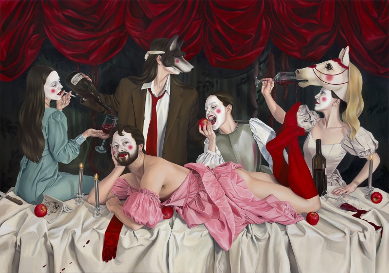 Jeanine Brito (b. 1993, Germany) lives and works in Antwerp, Belgium. Her work explores themes of memory and desire, imagined in a theatrical, surrealist context. Self-taught, her previous experience as a graphic designer informs her approach to color and composition, where smooth, saturated surfaces meet photographic crops. Exhibitions include All The Better to Eat You With, Nicodim, Los Angeles (2025, solo, forthcoming); The Amber of this Moment, Galeria Nicodim, Bucharest (2025); The Grumpy Girls, Nicodim, New York (2024, solo); The Invitation: A Fairytale by Jeanine Brito, Nicodim Upstairs, Los Angeles (2023, solo); DISEMBODIED, curated by Ben Lee Ritchie Handler, Nicodim, New York (2023); So Softly and Sweetly, La Causa Galeria, Madrid (2022, solo); You Me Me You, curated by Rachel Keller, Nicodim, Los Angeles (2022); and New Mythologies II, Huxley Parlour, London (2022).
