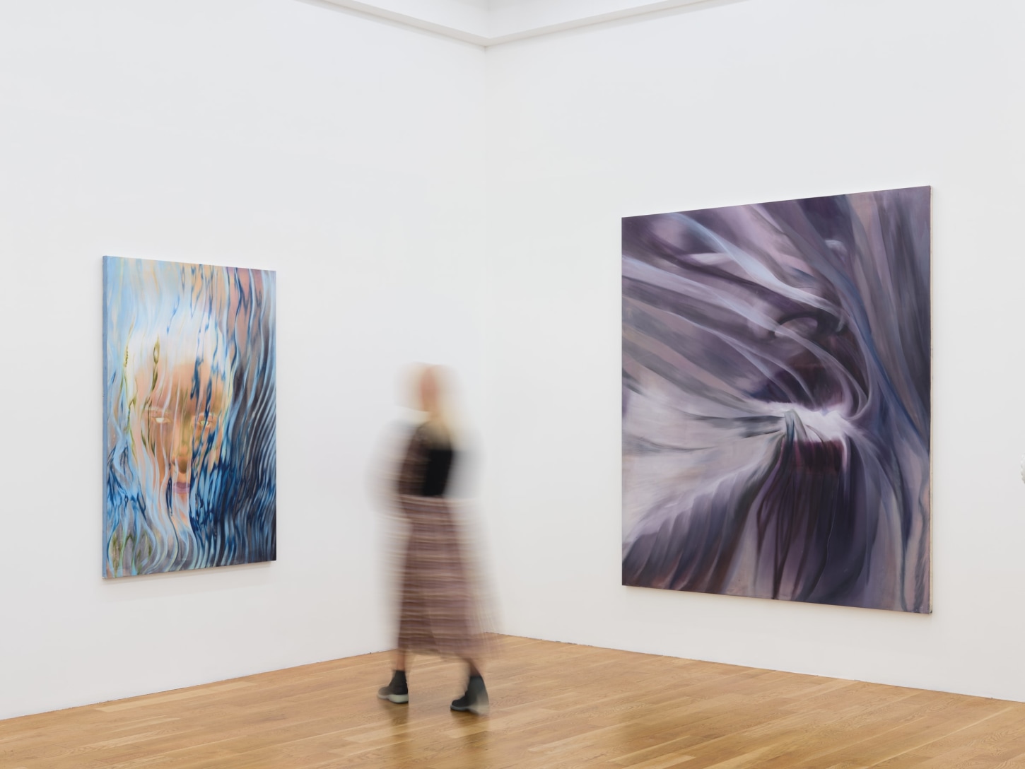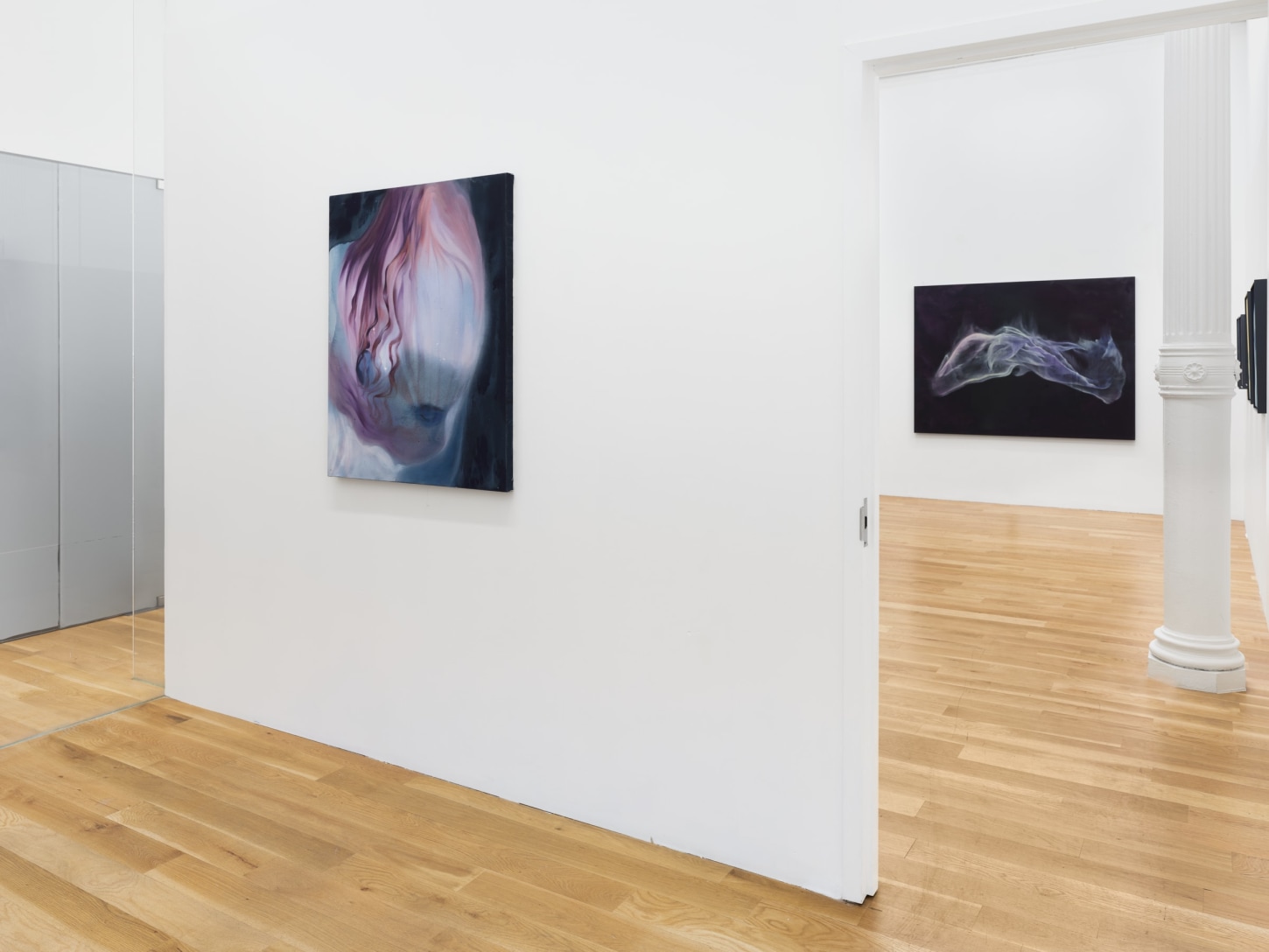 In contrast to photographic portraits, the subjects of Liang Fu’s figurative works are fluid beings—they emerge from nothing and disappear again. The paintings within corps célestes are not the expressions of captured moments, but rather allegories of transition. The bodies appear to function as if unobserved, left to their own devices, and completely alone. They are introvertedly engrossed and lost in thought as they fade in and out.