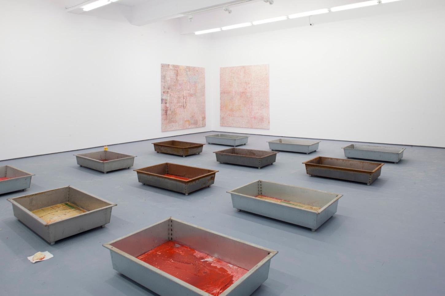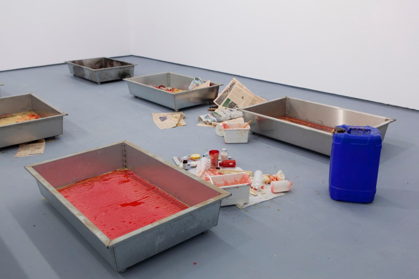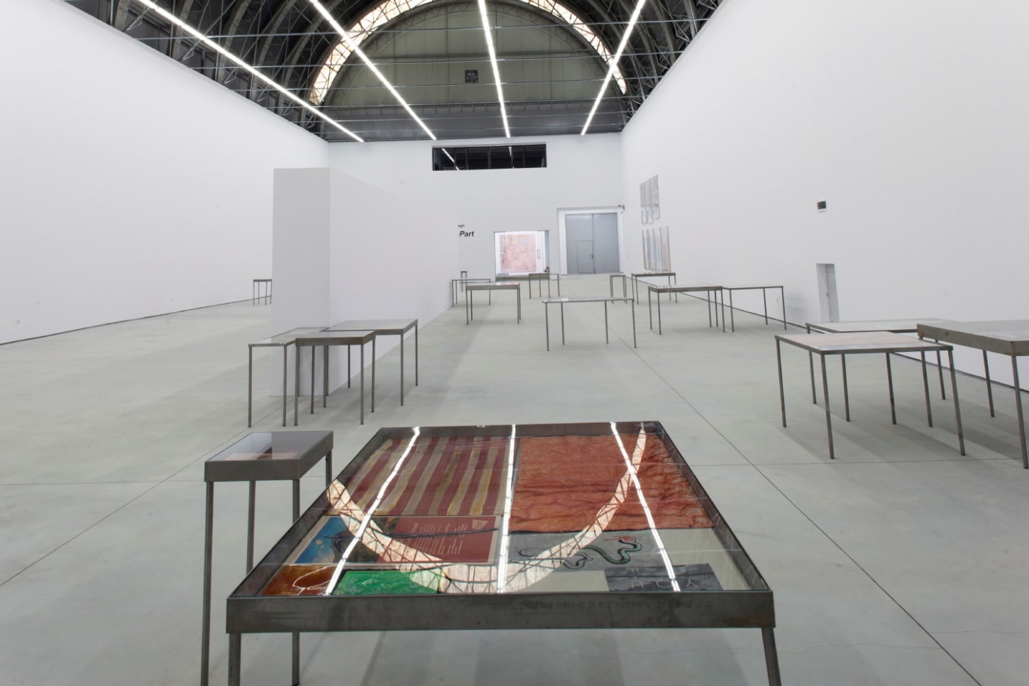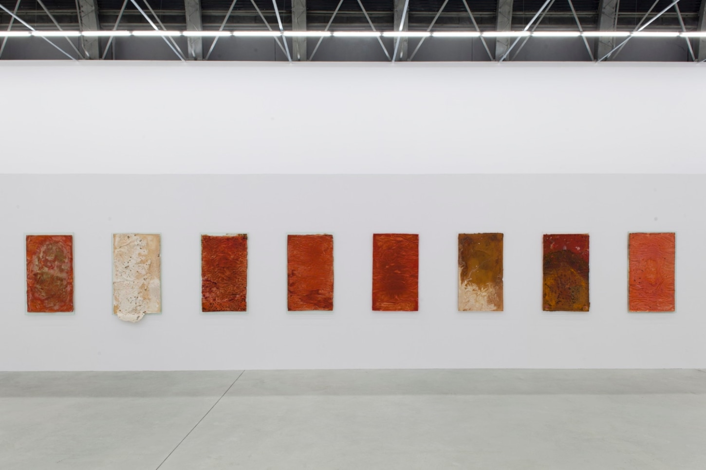 In Taking Part, El-Sayegh presents her research-based practice in several formations around the gallery’s spaces, each one highlighting a different stage in experimental processes based in material and linguistic exploration. By interrogating the part-to-whole relation, El-Sayegh addresses the breakdown of socio-political, economic and semantic orders, whilst putting these interchangeable, fragmented signs and substances back in play to form new, non-totalizable sums with emergent properties.