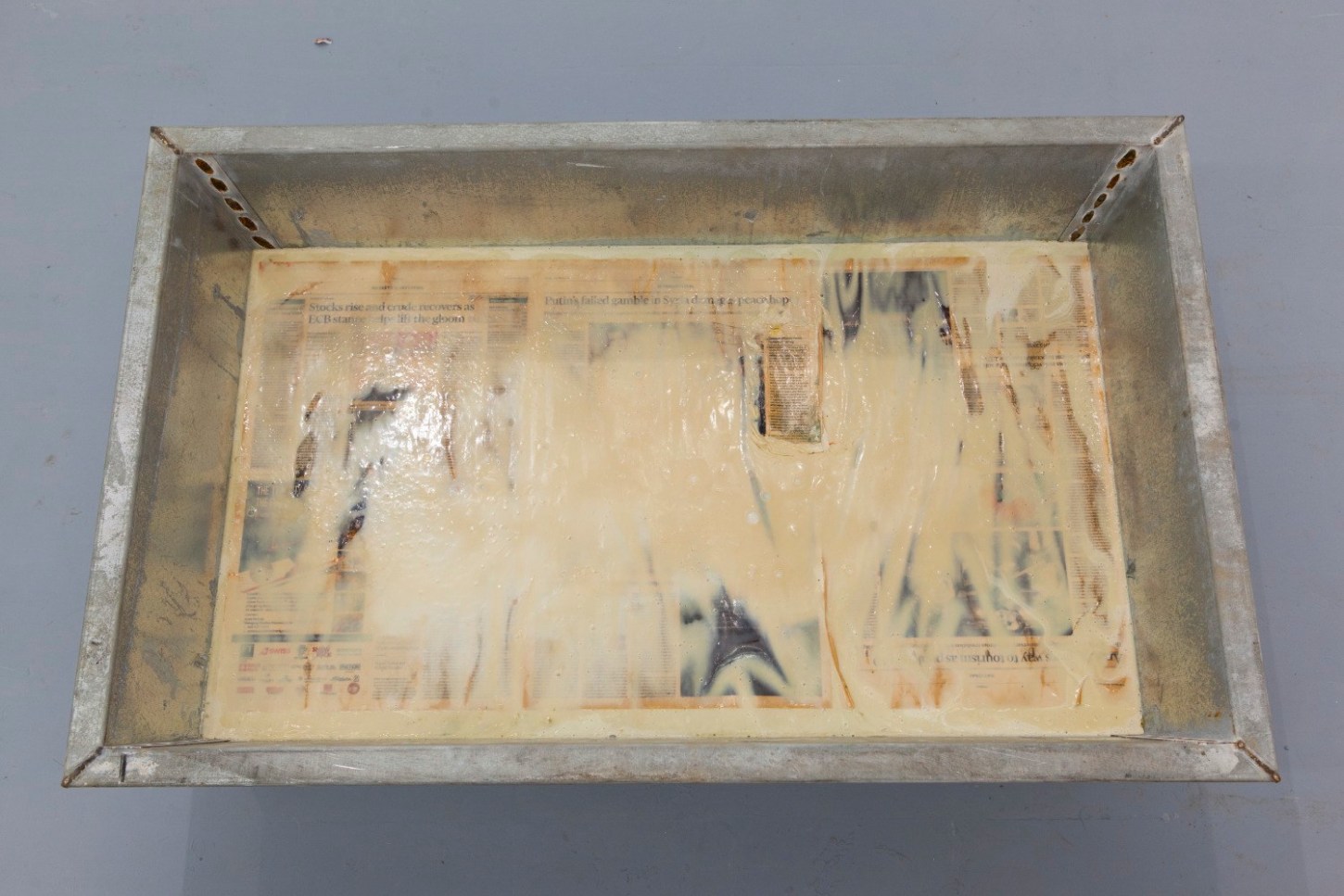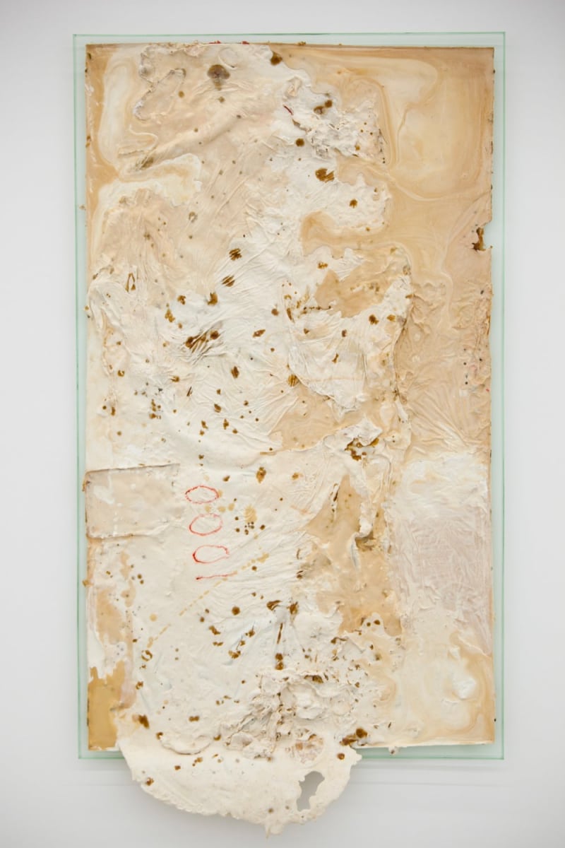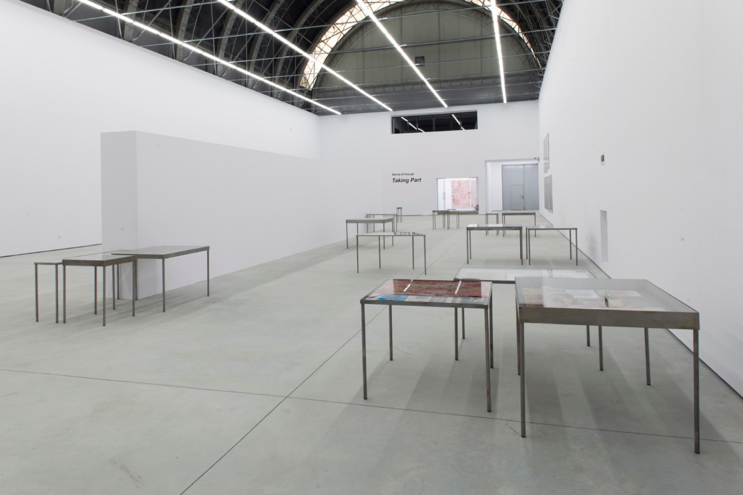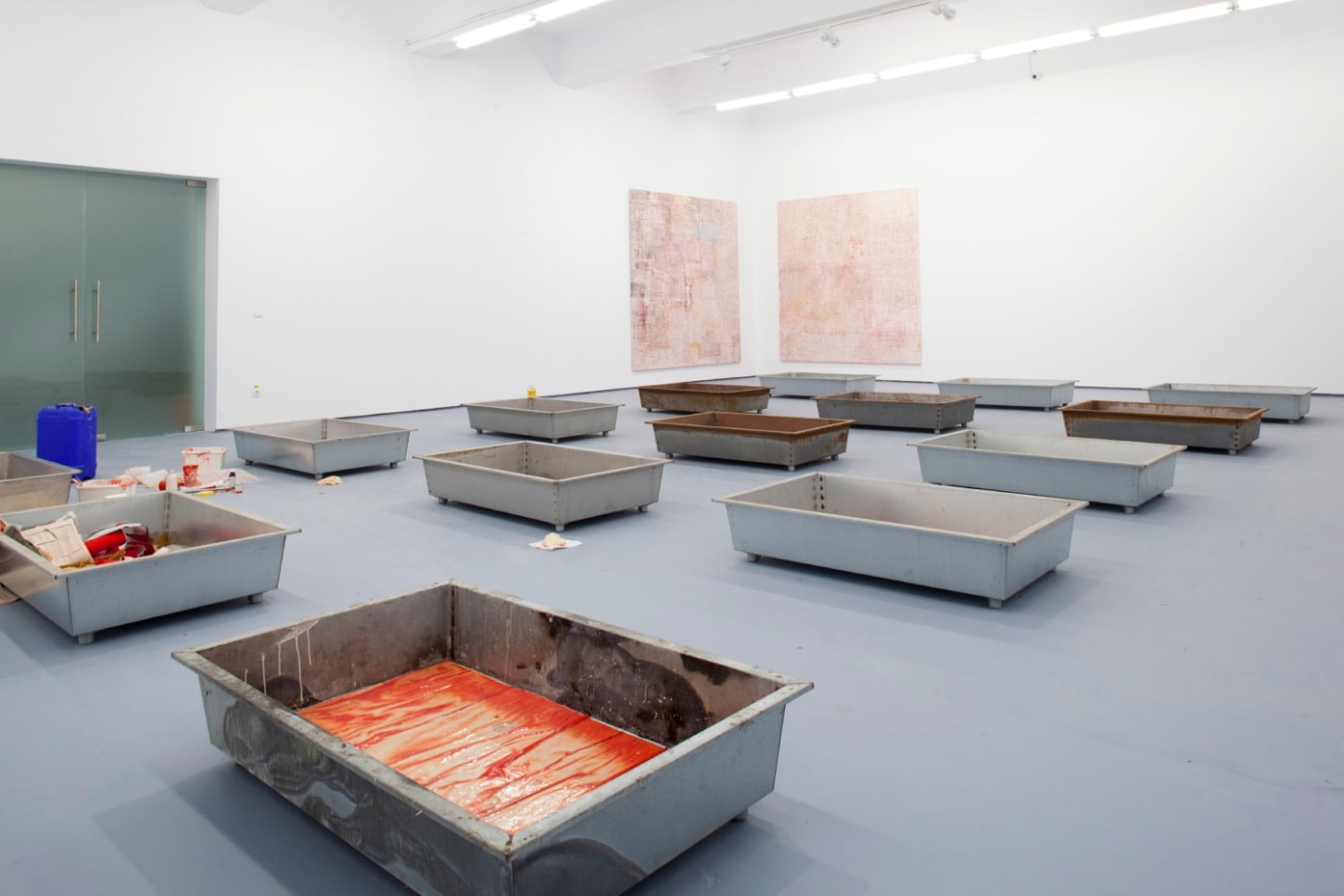 In Taking Part, El-Sayegh presents her research-based practice in several formations around the gallery’s spaces, each one highlighting a different stage in experimental processes based in material and linguistic exploration. By interrogating the part-to-whole relation, El-Sayegh addresses the breakdown of socio-political, economic and semantic orders, whilst putting these interchangeable, fragmented signs and substances back in play to form new, non-totalizable sums with emergent properties.