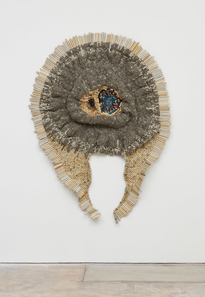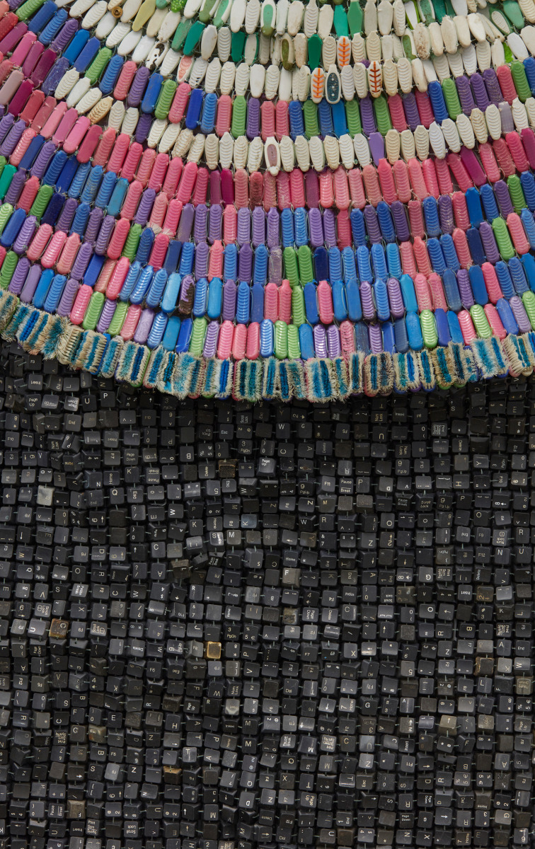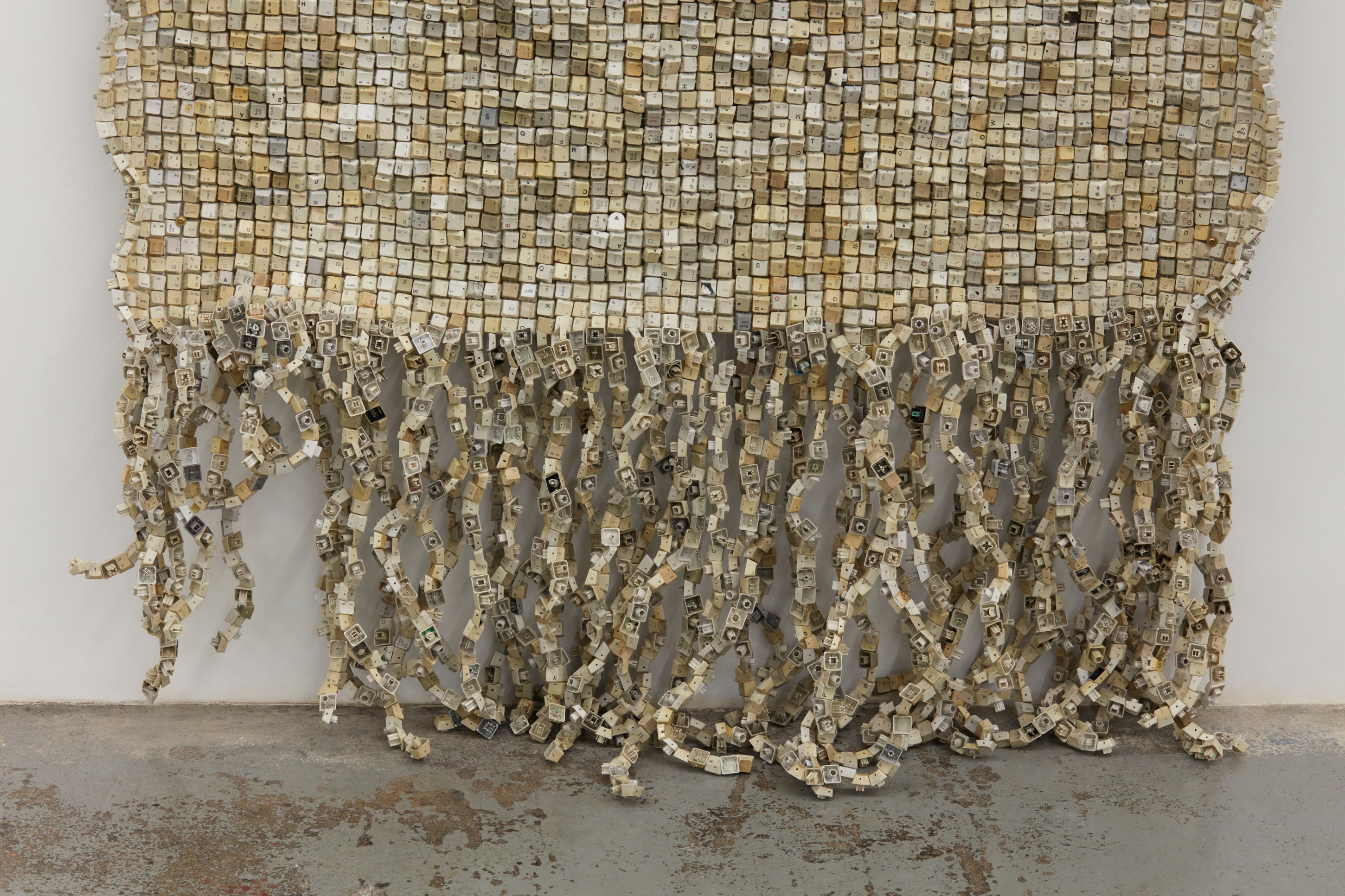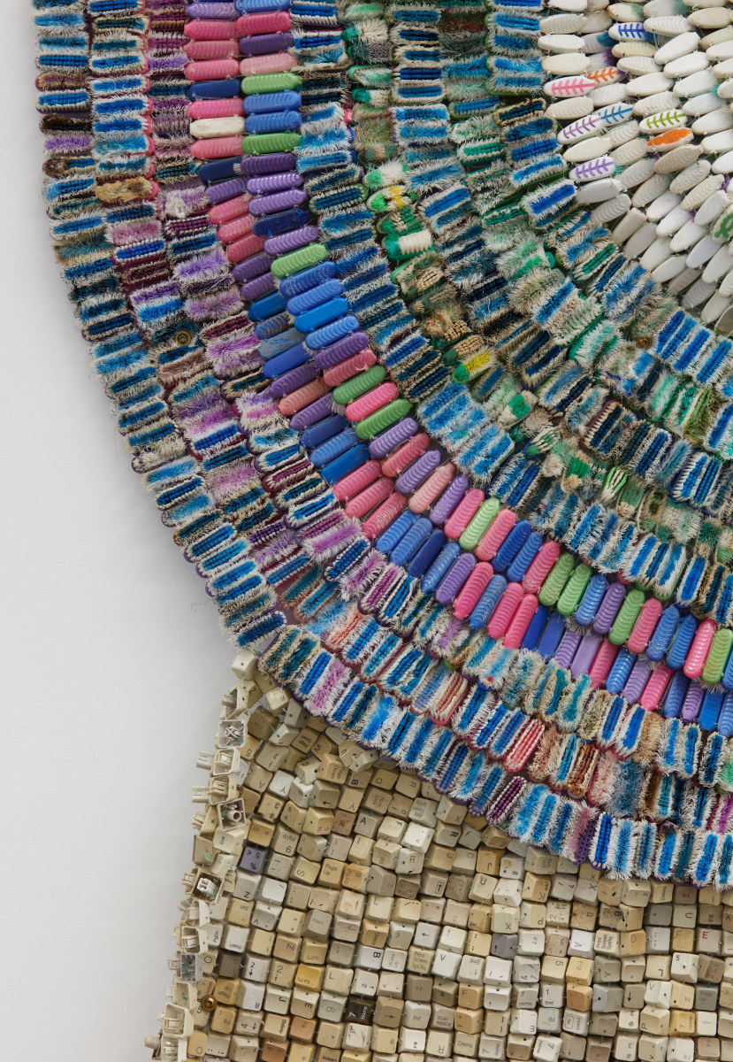 Moffat Takadiwa considers the intricate wall-hangings that he stitches together from old computer keys or used toothbrush heads ‘post-colonial African Dada’; these abstract tapestries of waste confront Western viewers with the ugly fallout from their late-capitalist lifestyles, giving them the opportunity to buy it back, now redeemed through beauty.