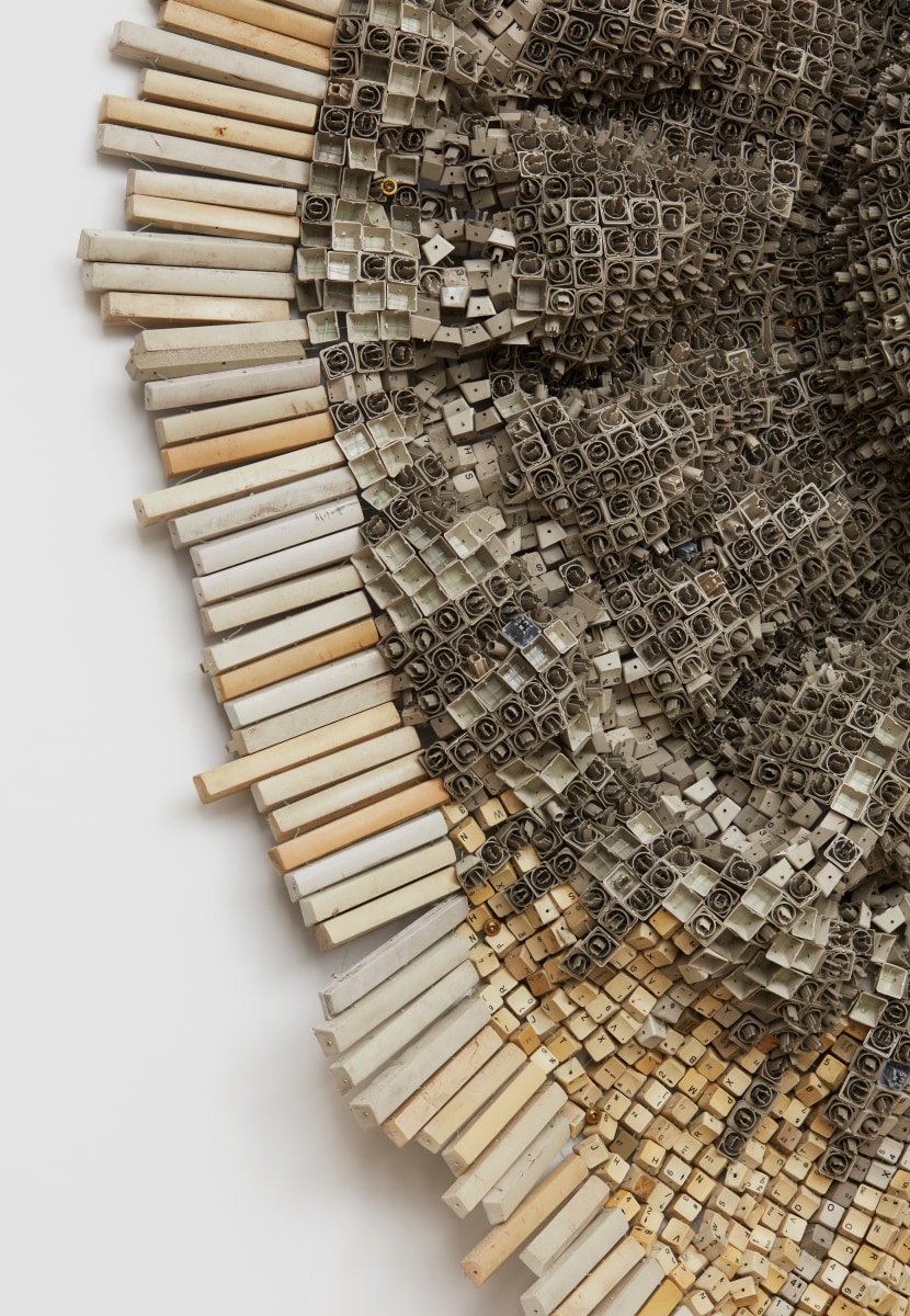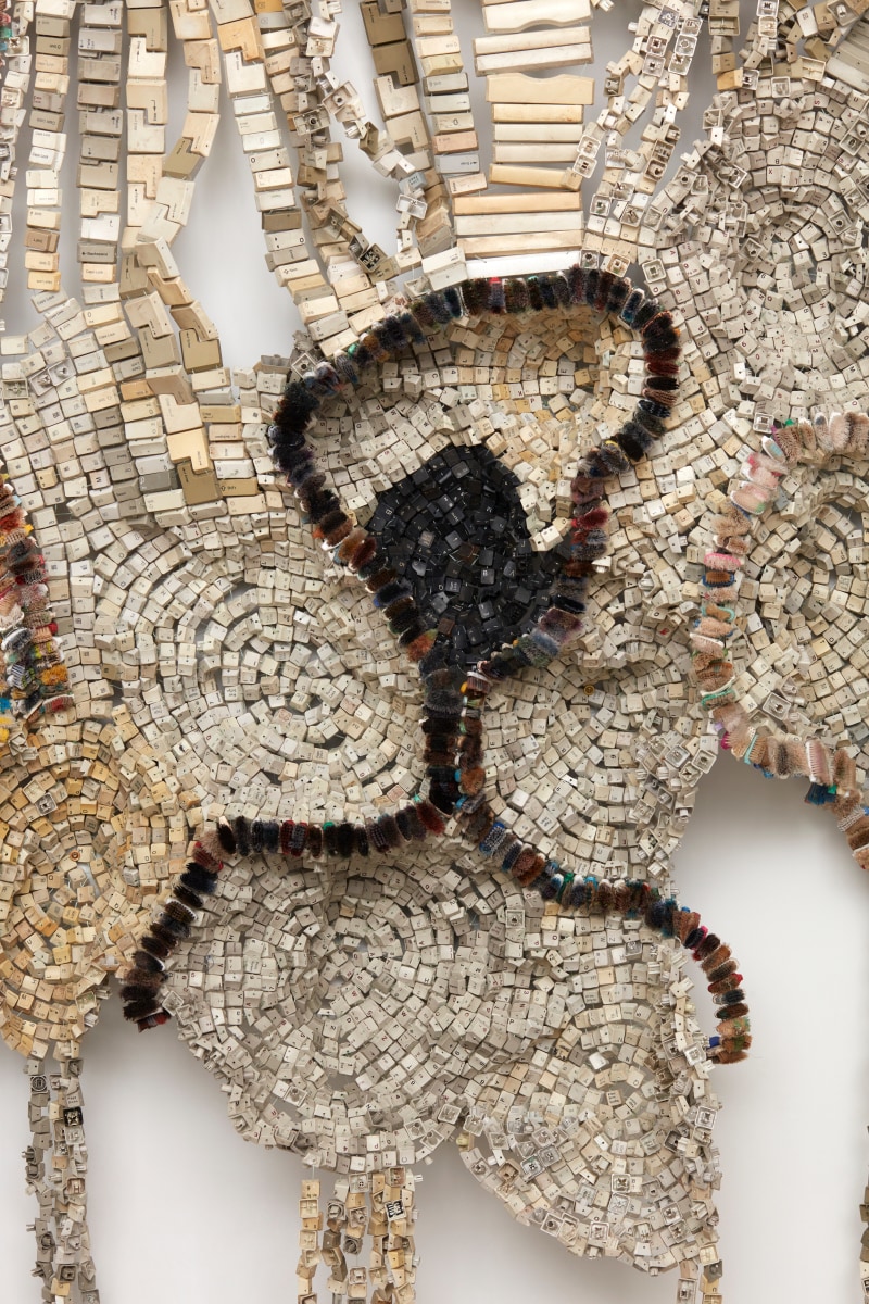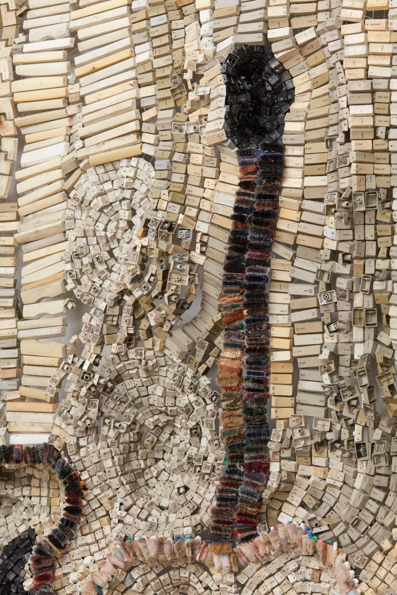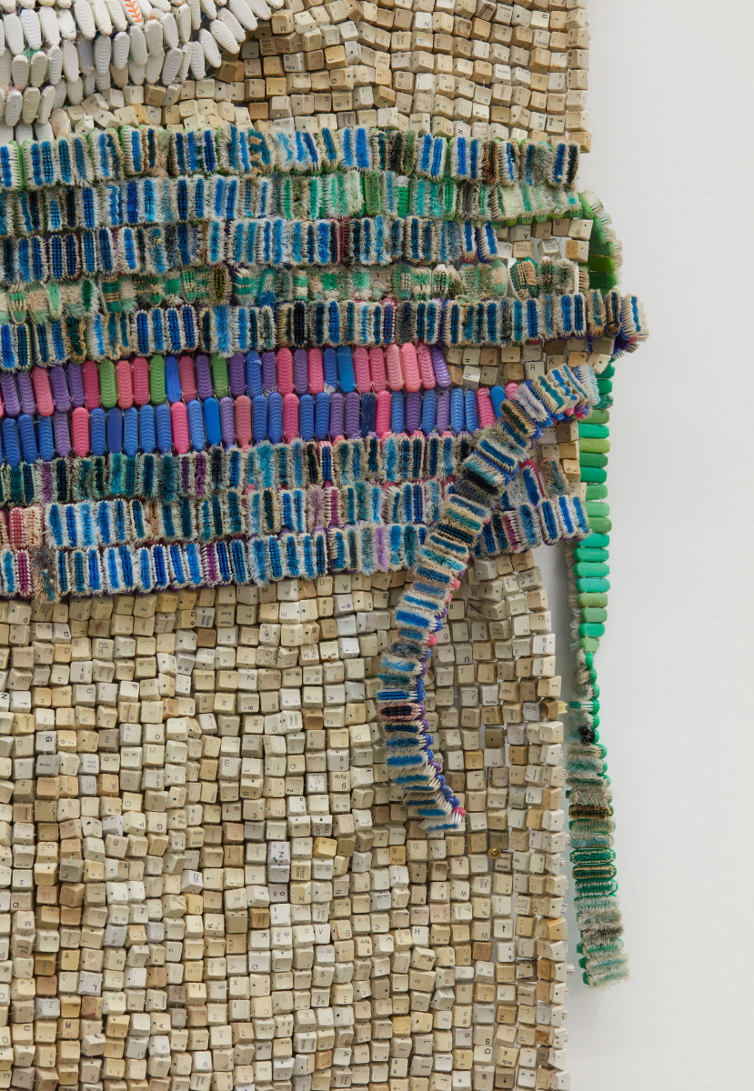 Moffat Takadiwa considers the intricate wall-hangings that he stitches together from old computer keys or used toothbrush heads ‘post-colonial African Dada’; these abstract tapestries of waste confront Western viewers with the ugly fallout from their late-capitalist lifestyles, giving them the opportunity to buy it back, now redeemed through beauty.