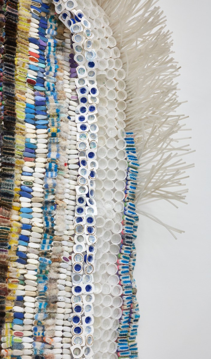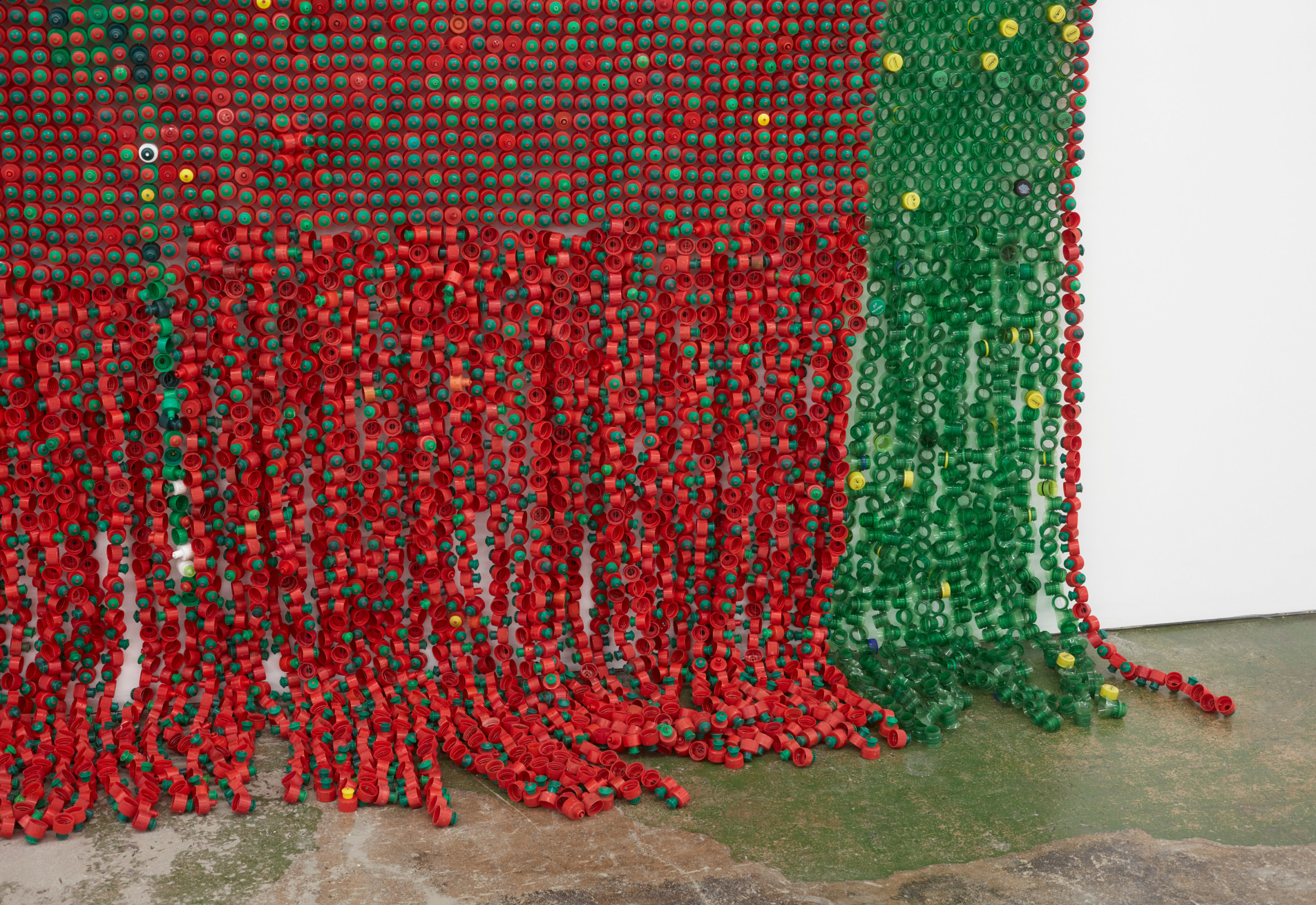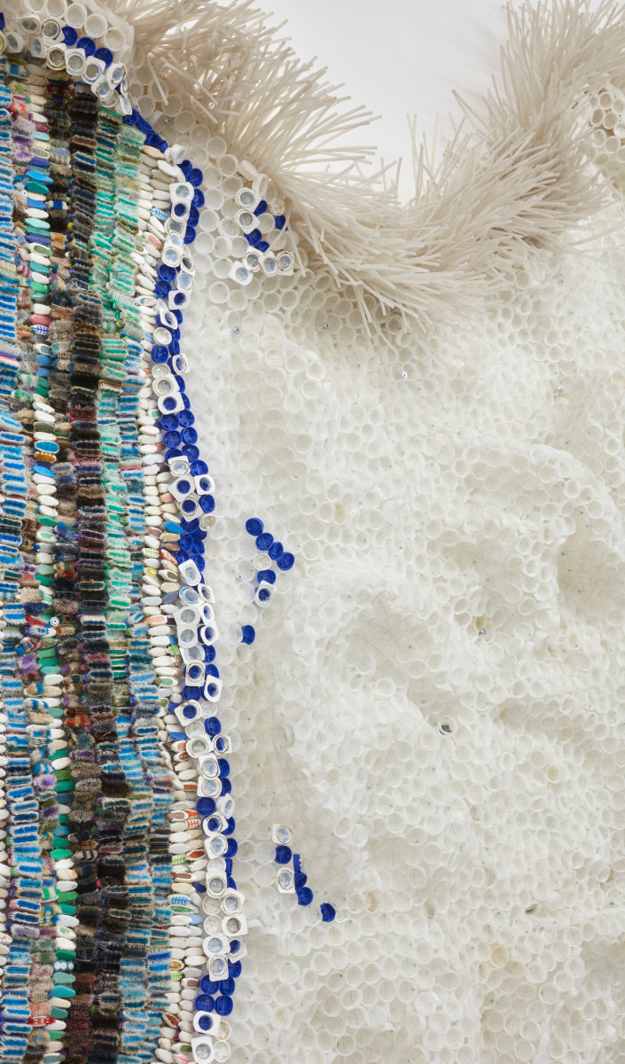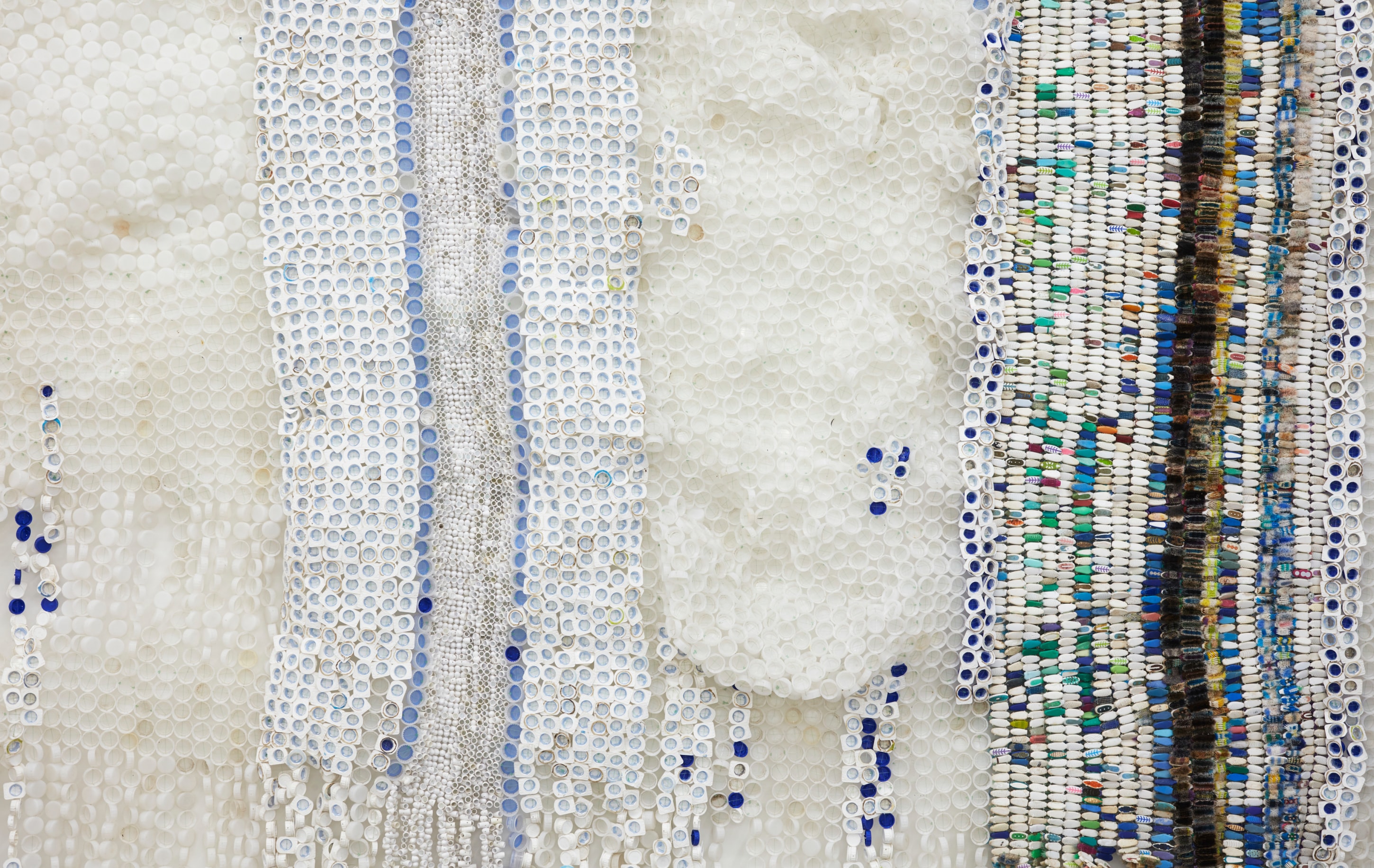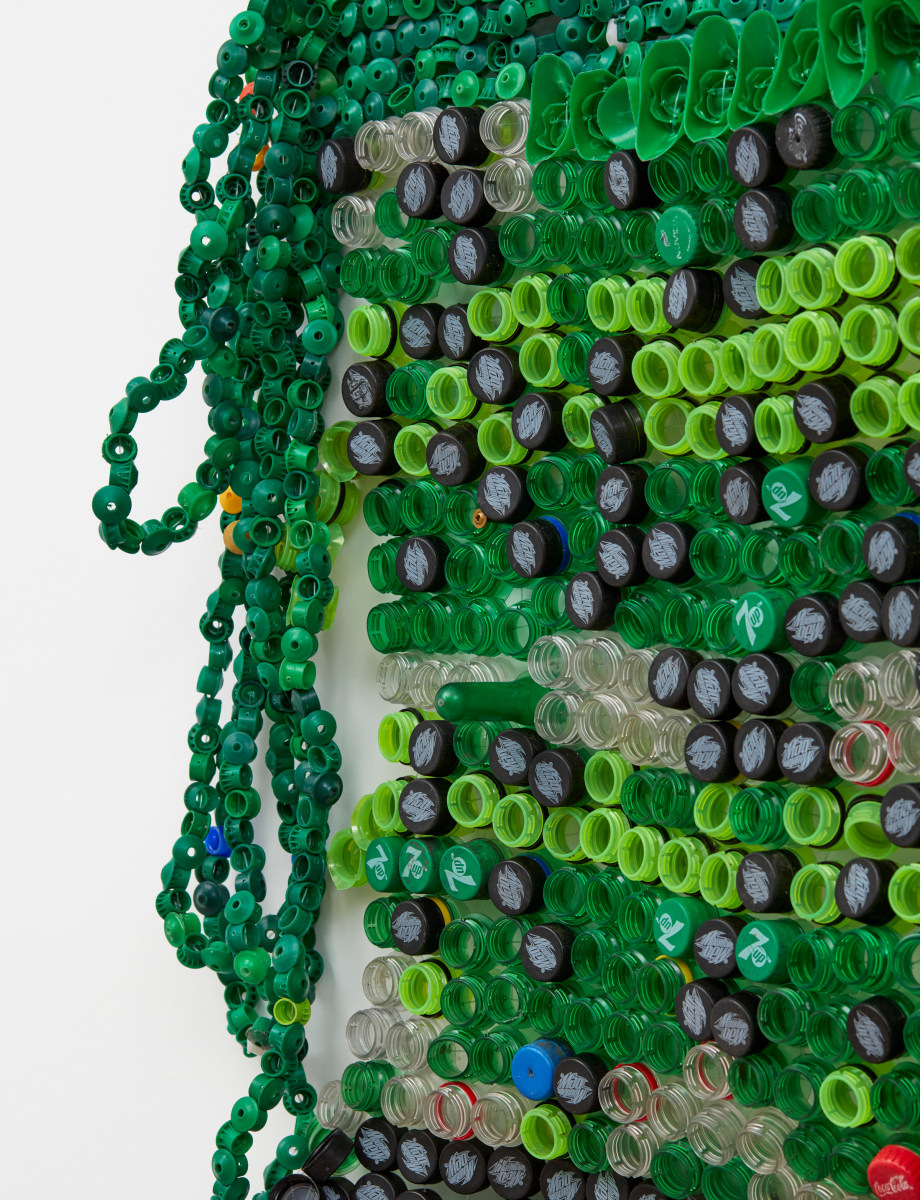 Caps, lids, toothpaste tubes, toothbrushes, rings and everyday objects with a more than ephemeral life - from a disposable perspective - become part of elaborate compositions that recall the artisan tradition. Every piece, every infinitesimal waste, recovered from immense mountains in landfills, is the bearer of a story, of a responsibility, often told by a printed name, by a brand, from a source. The theme of reuse and recovery, present in the production of numerous artists, in these works takes on particular value precisely because of the multiplicity of readings they offer and the extraordinary link with the origins, in a complex path that manages to bring out a profound dimension cultural.