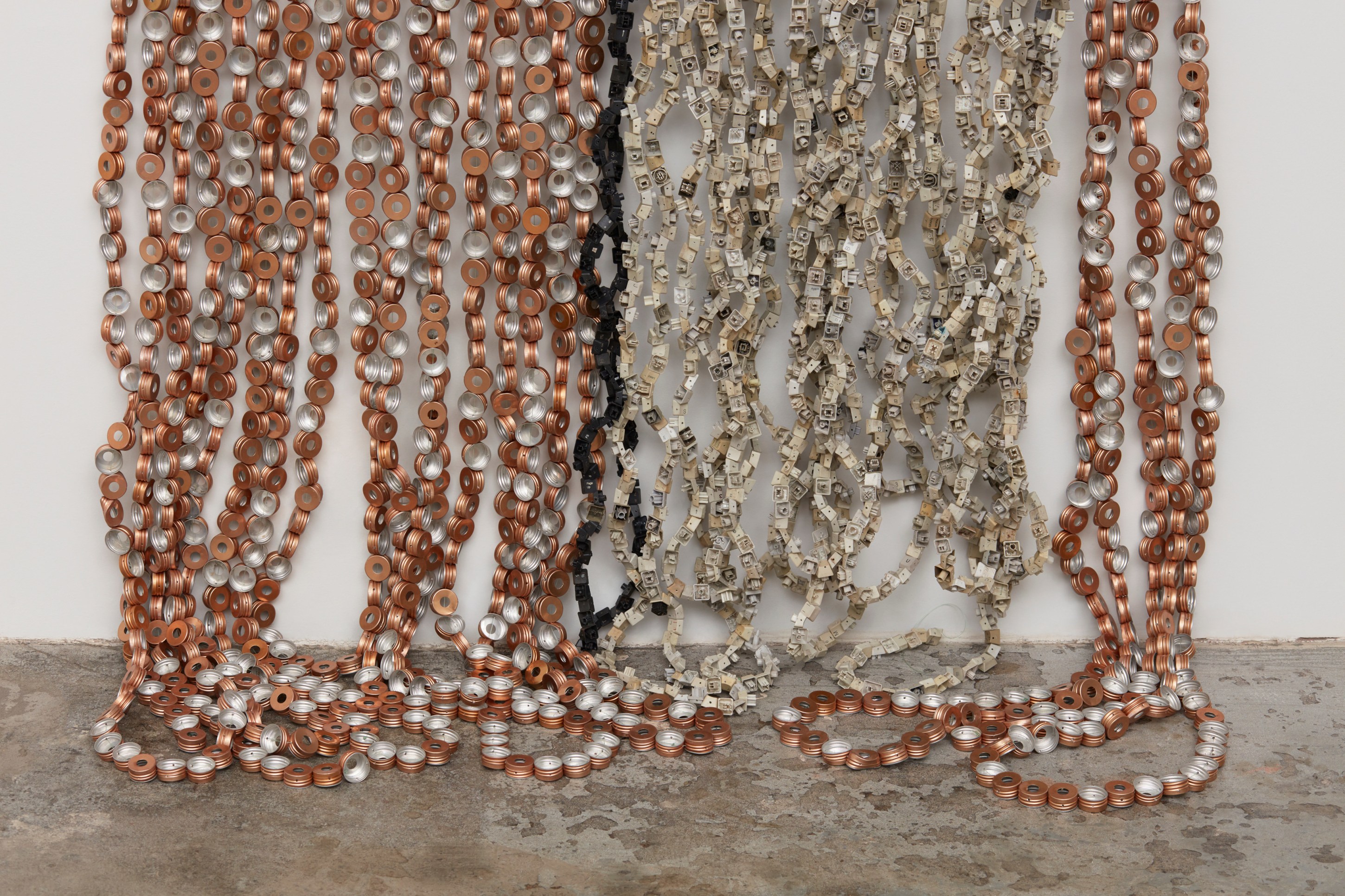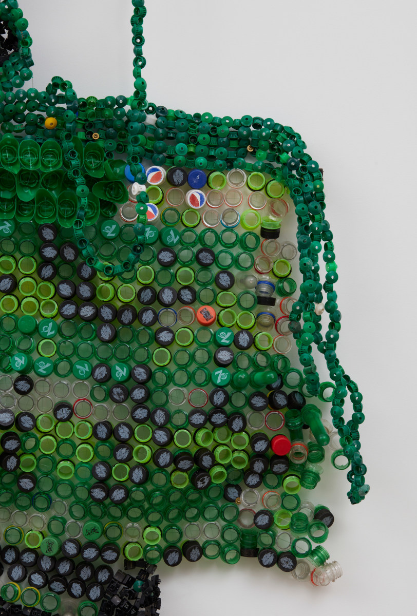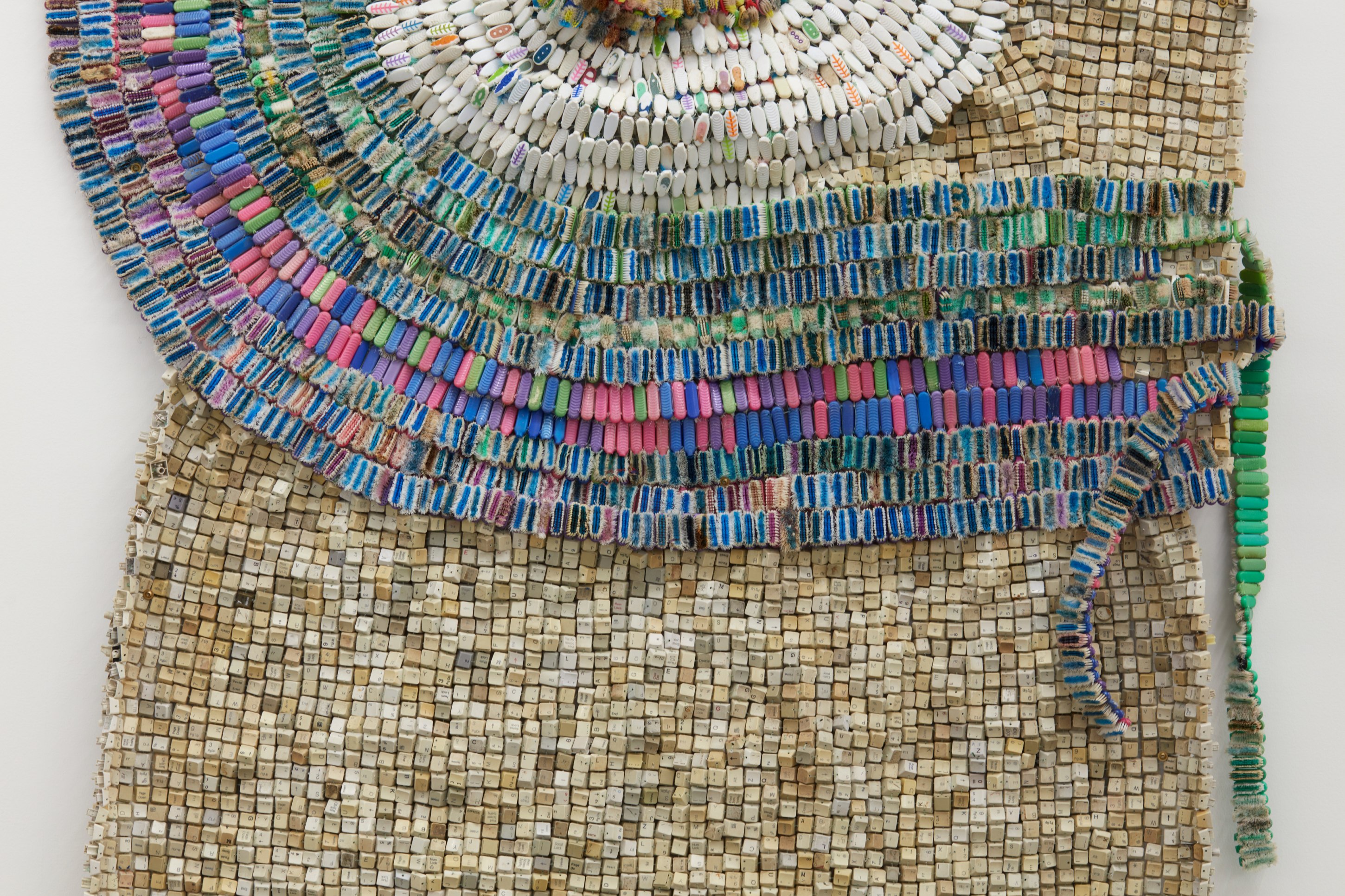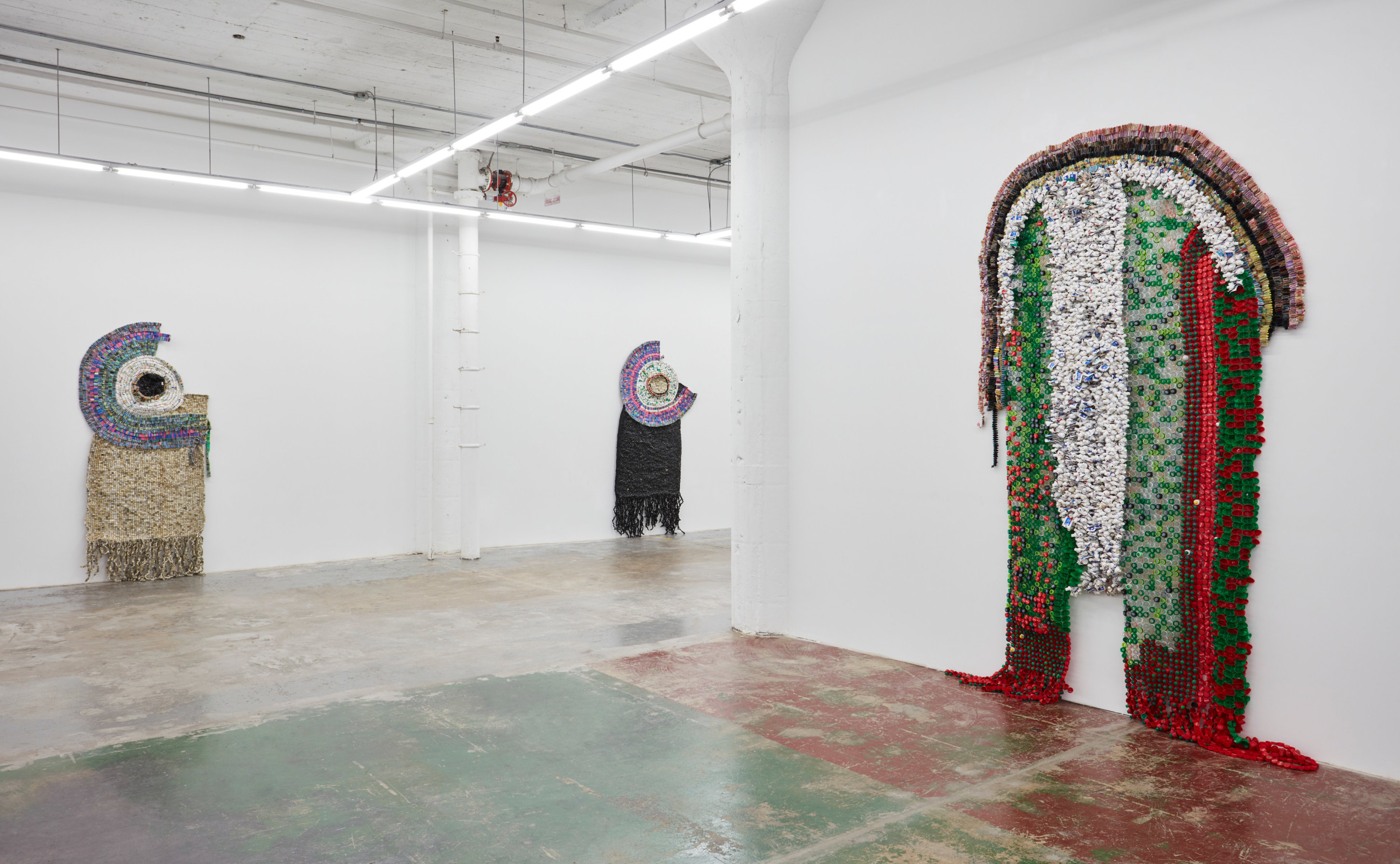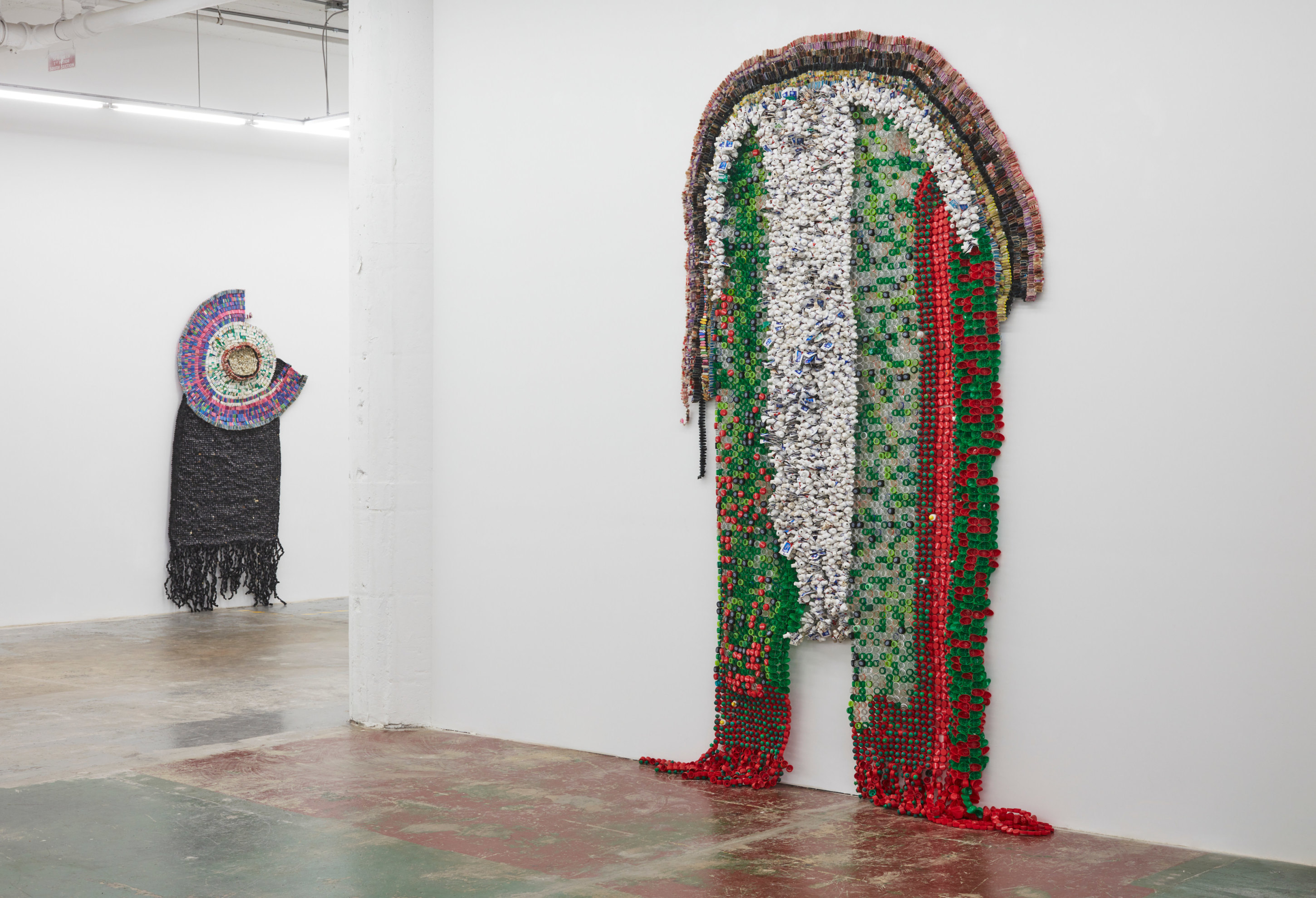 Son of the Soil is Moffat Takadiwa’s first solo exhibition in the United States. Takadiwa reassesses his own Korekore craft culture through the appropriation of garbage from the West.