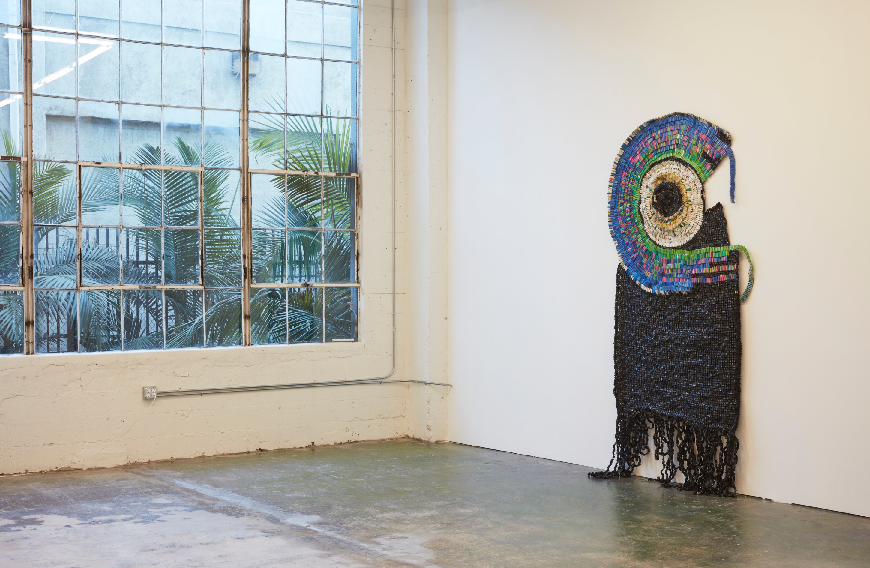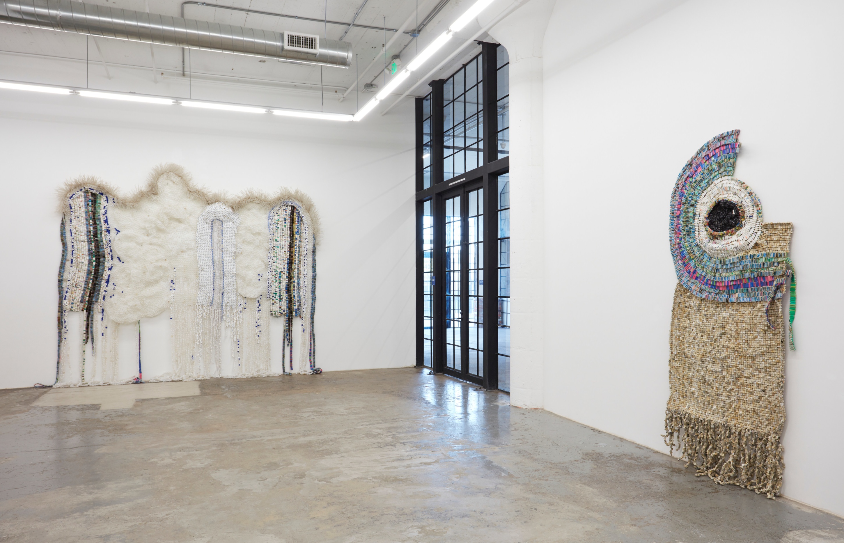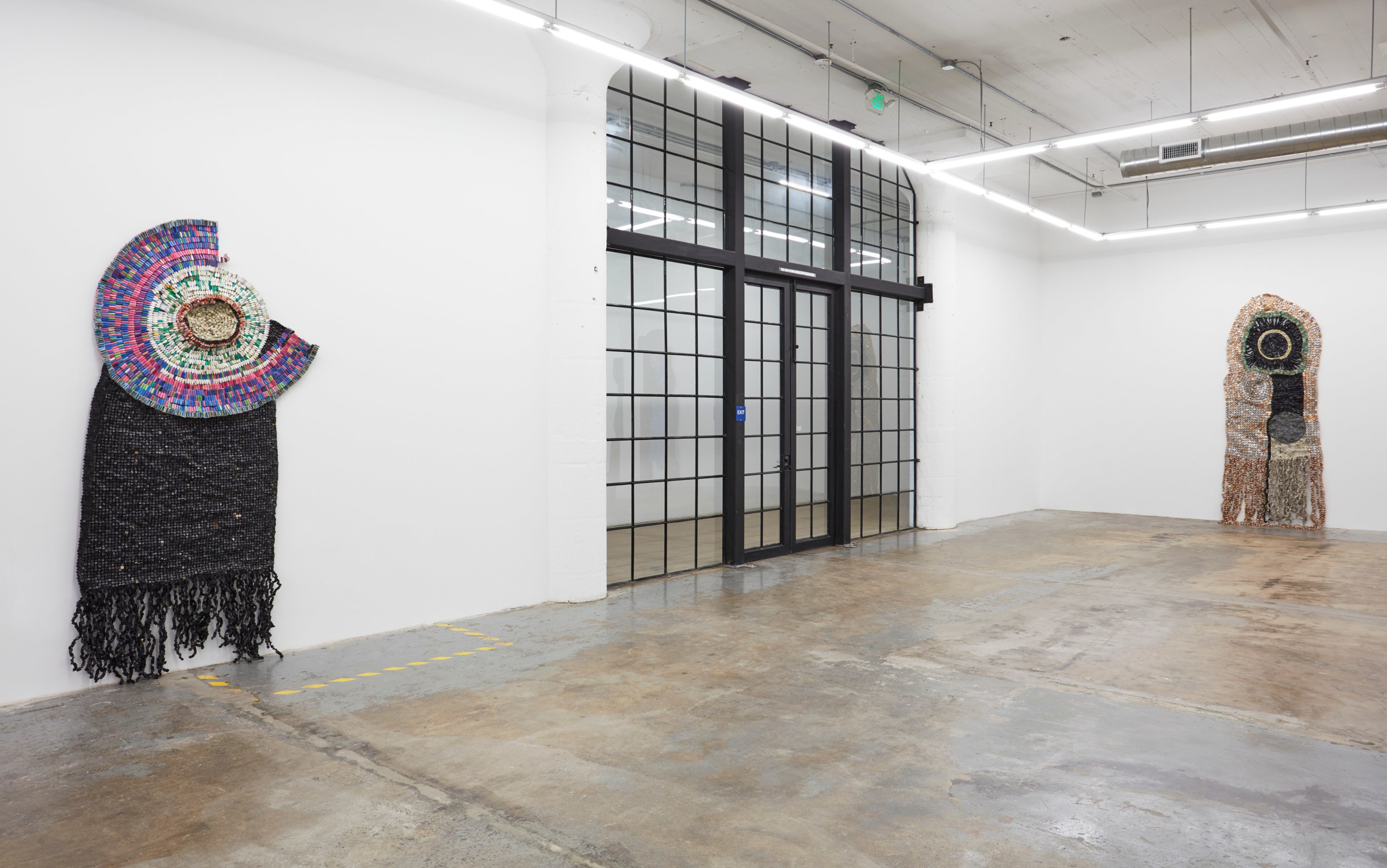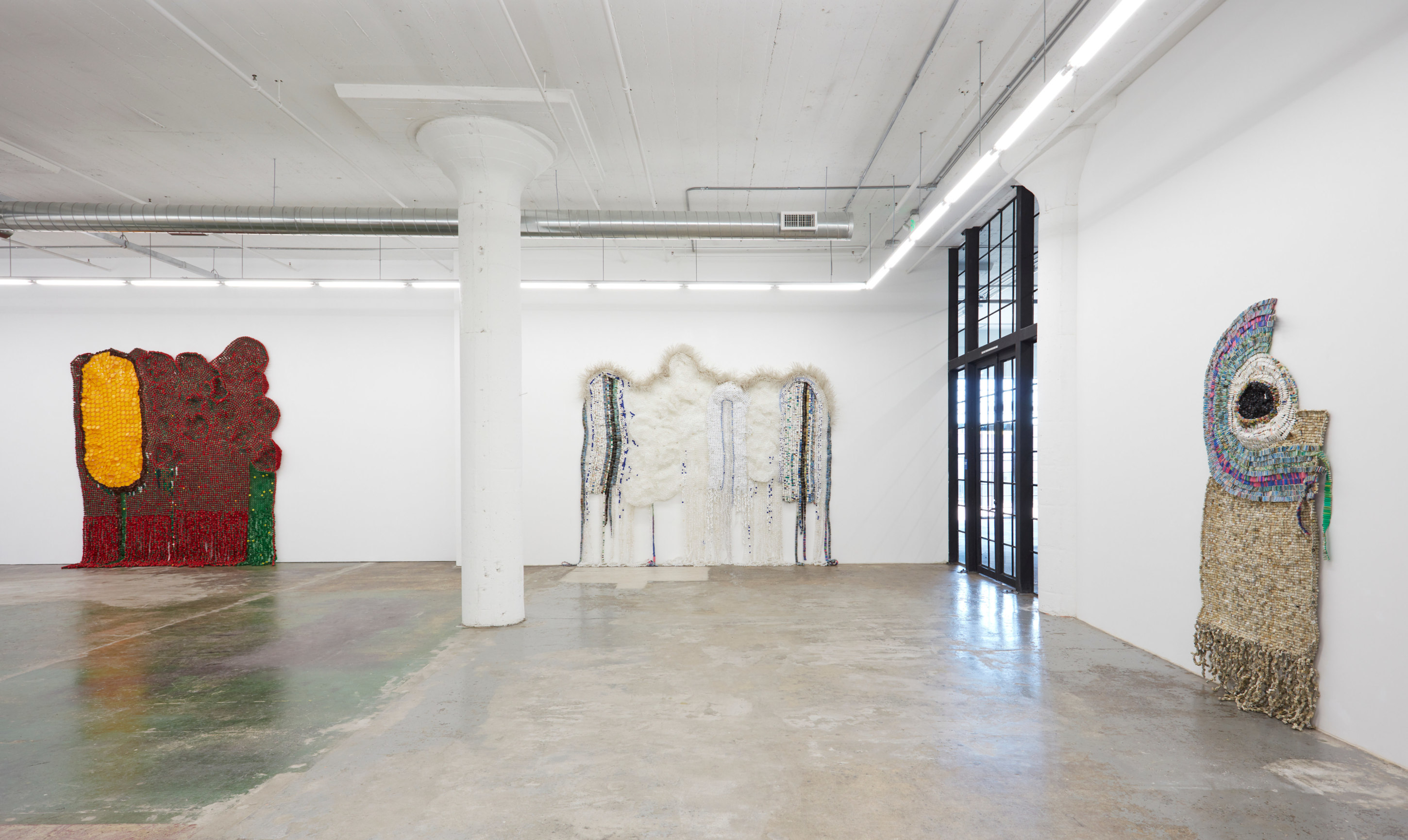 Downtown itself has more than one ecosystem, and tonight they’re all activated. Amidst a plethora of art openings this first week of September, exuberant found-material assemblage tapestries by Moffat Takadiwa activate Nicodim Gallery’s inaugural show in their brand new space on Santa Fe Avenue.