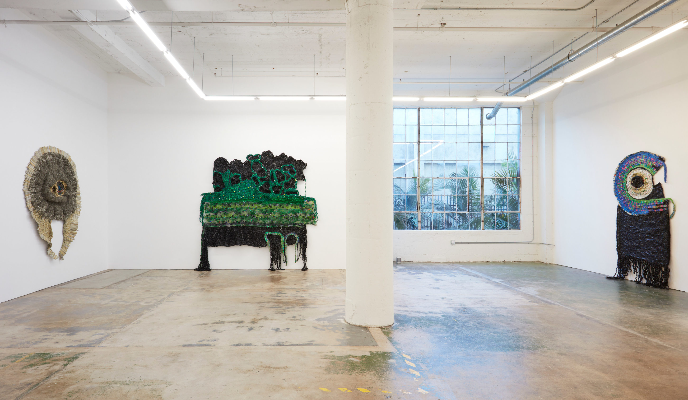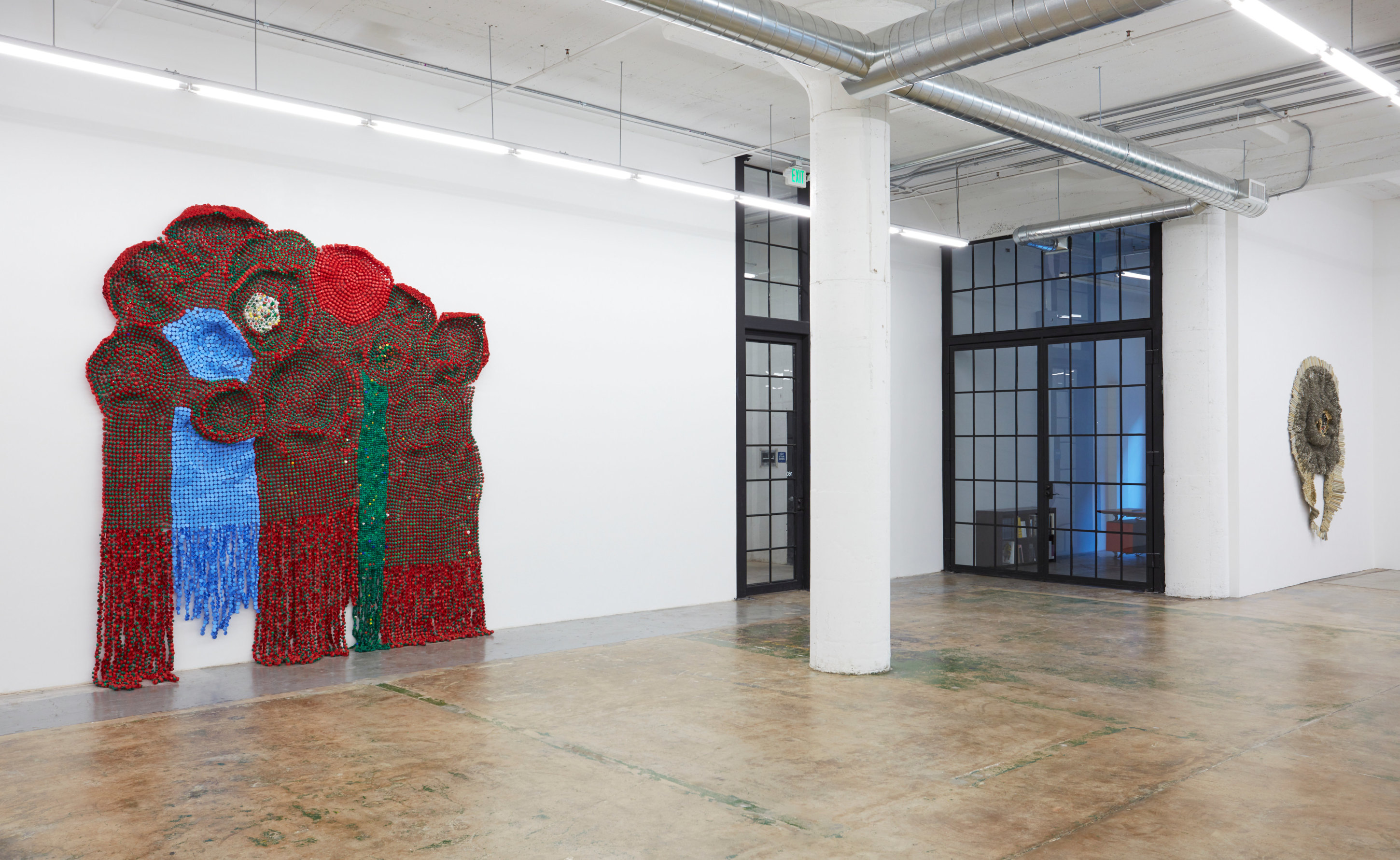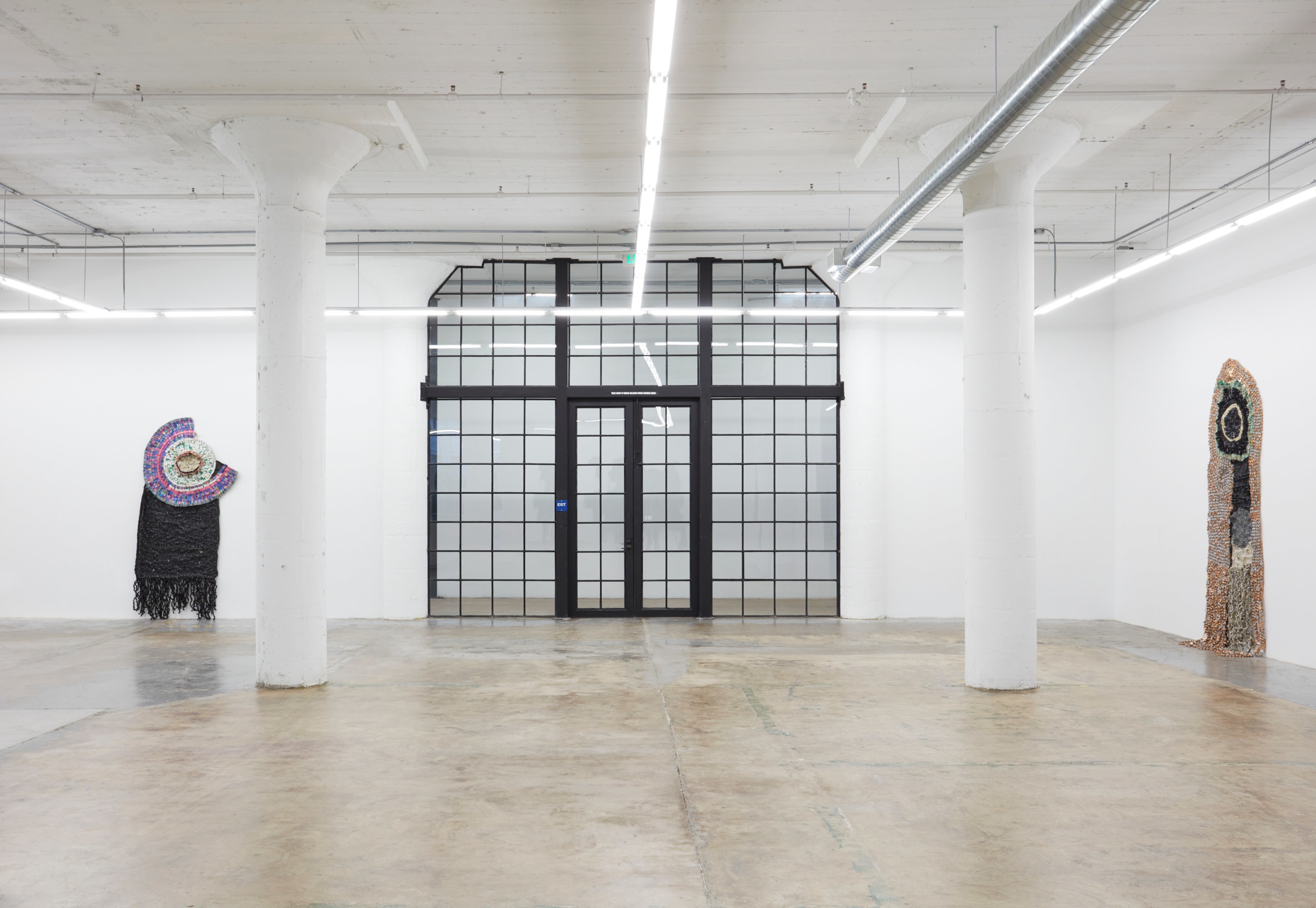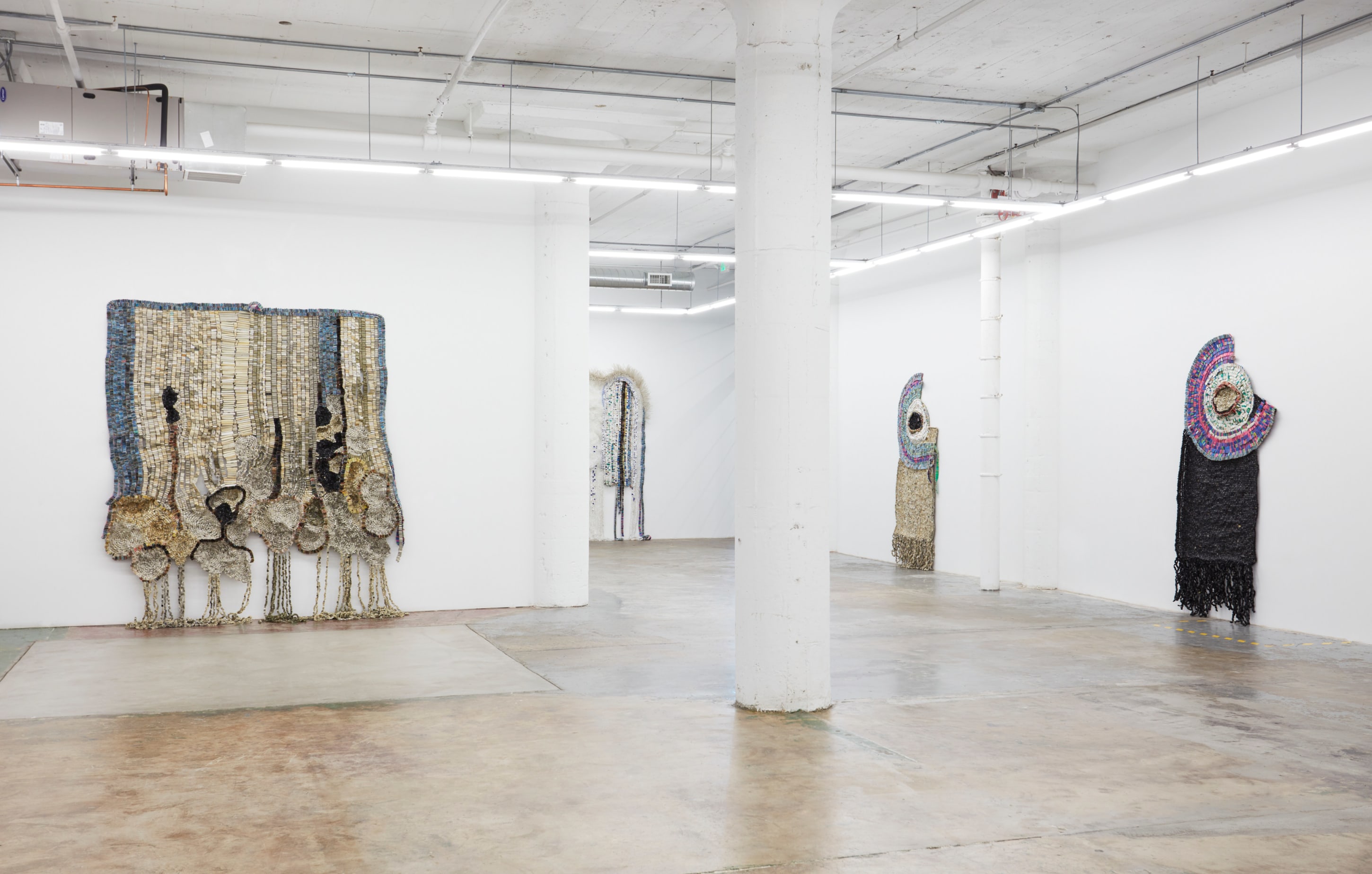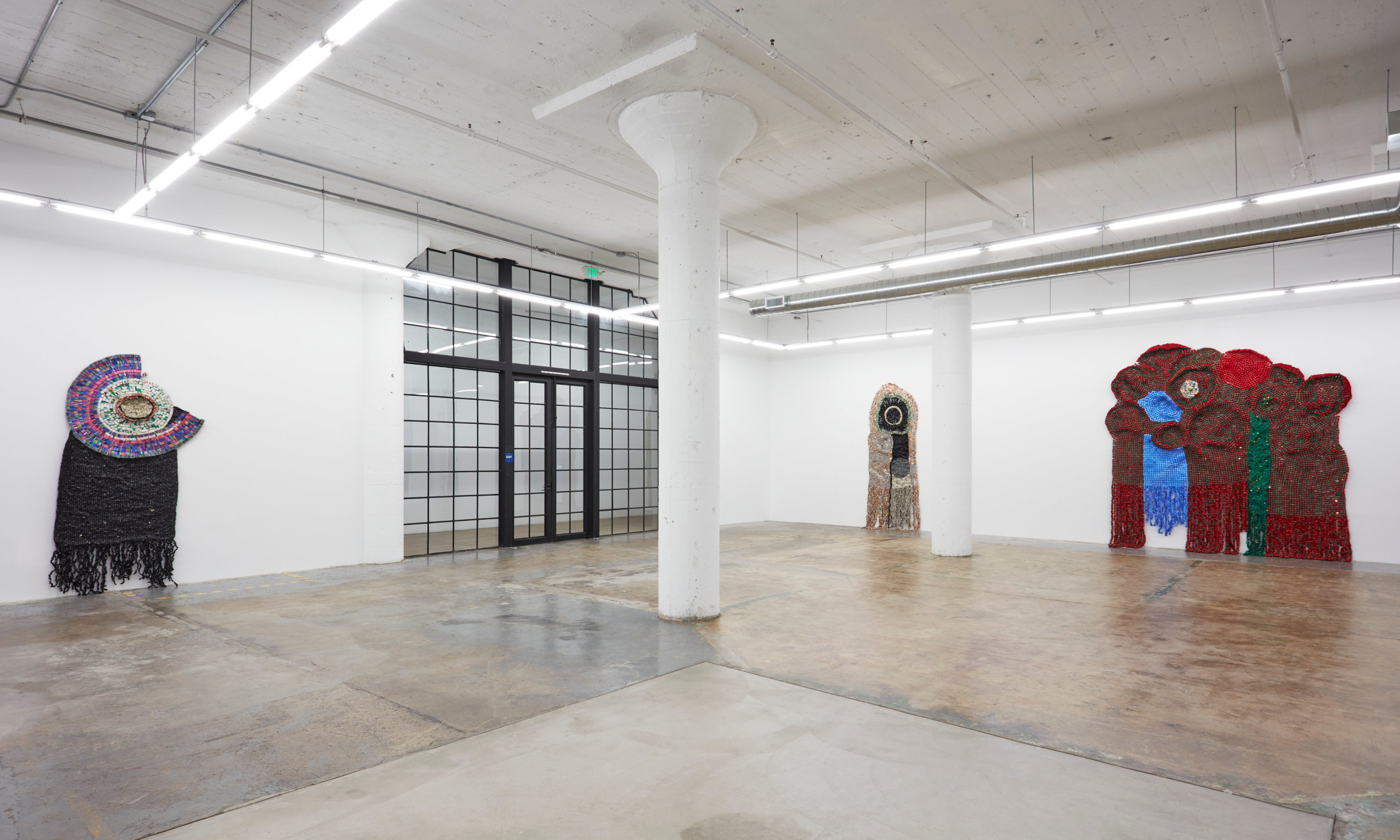 Downtown itself has more than one ecosystem, and tonight they’re all activated. Amidst a plethora of art openings this first week of September, exuberant found-material assemblage tapestries by Moffat Takadiwa activate Nicodim Gallery’s inaugural show in their brand new space on Santa Fe Avenue.
