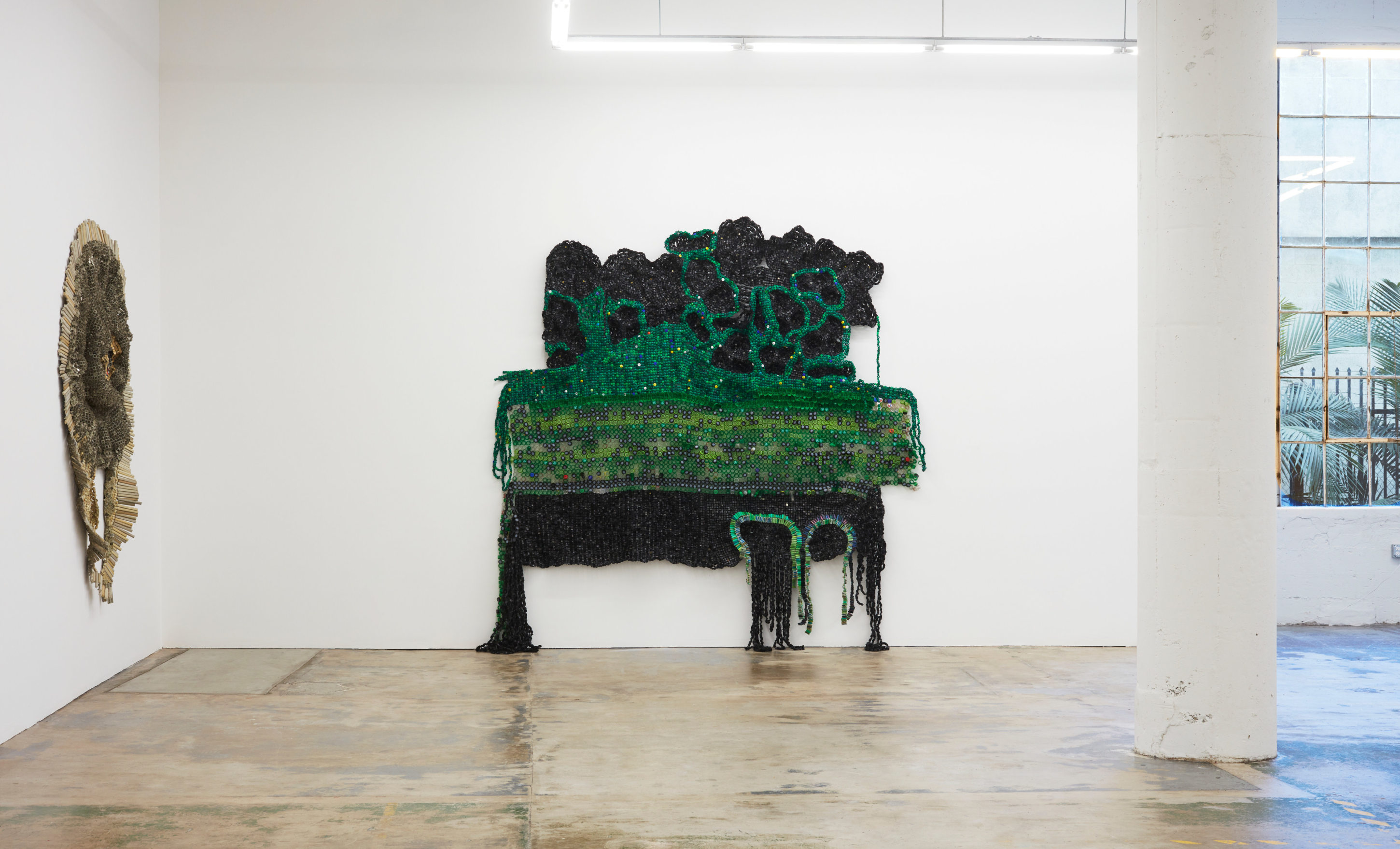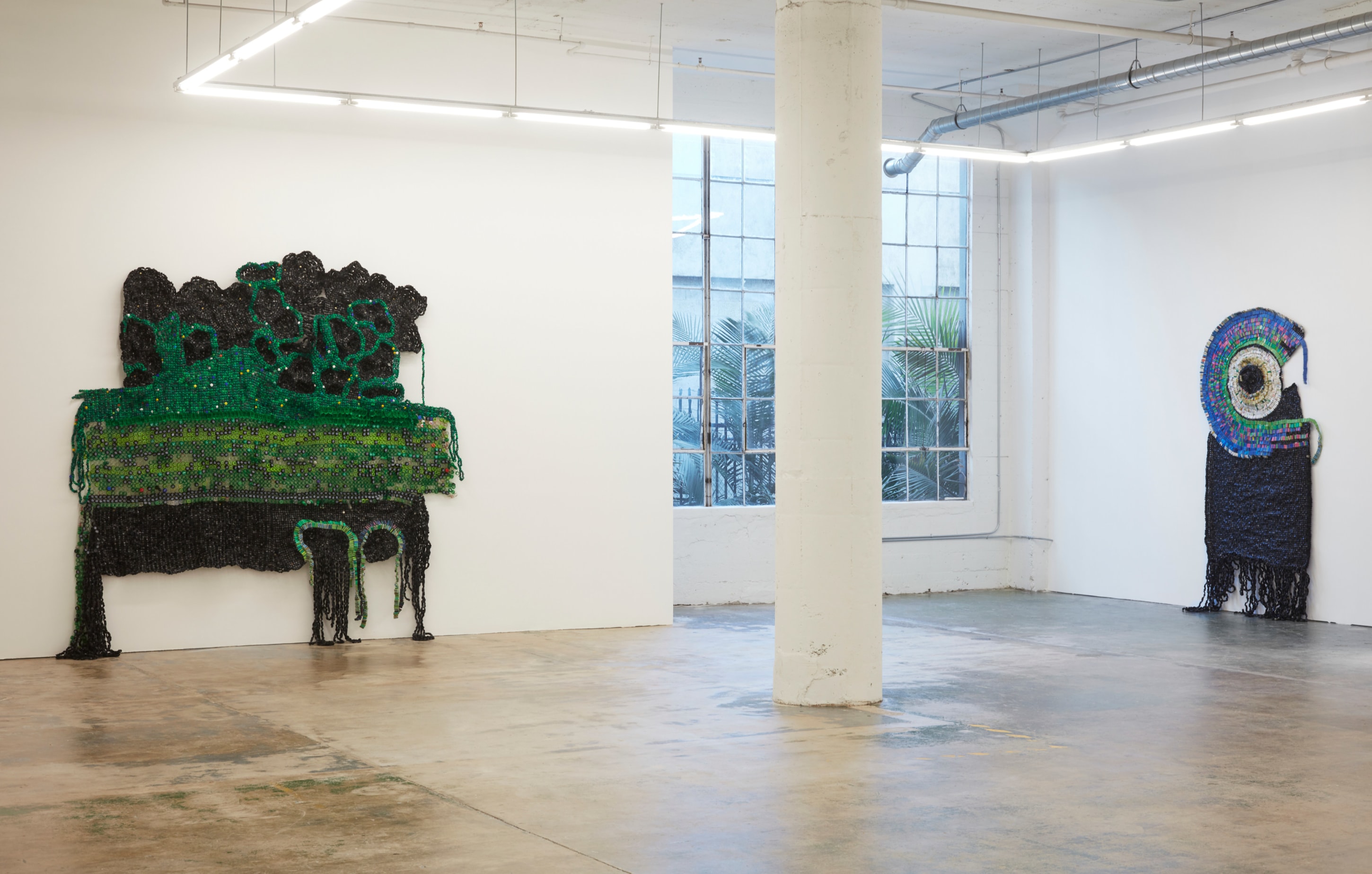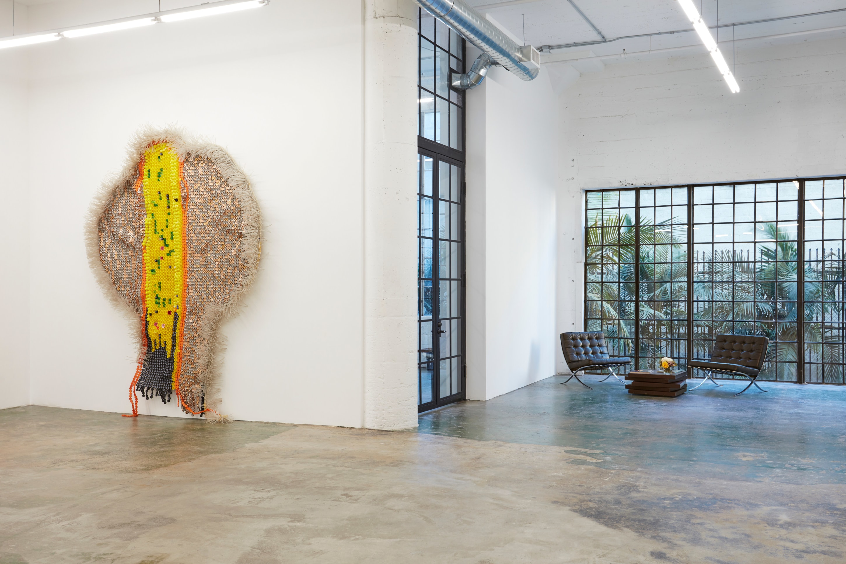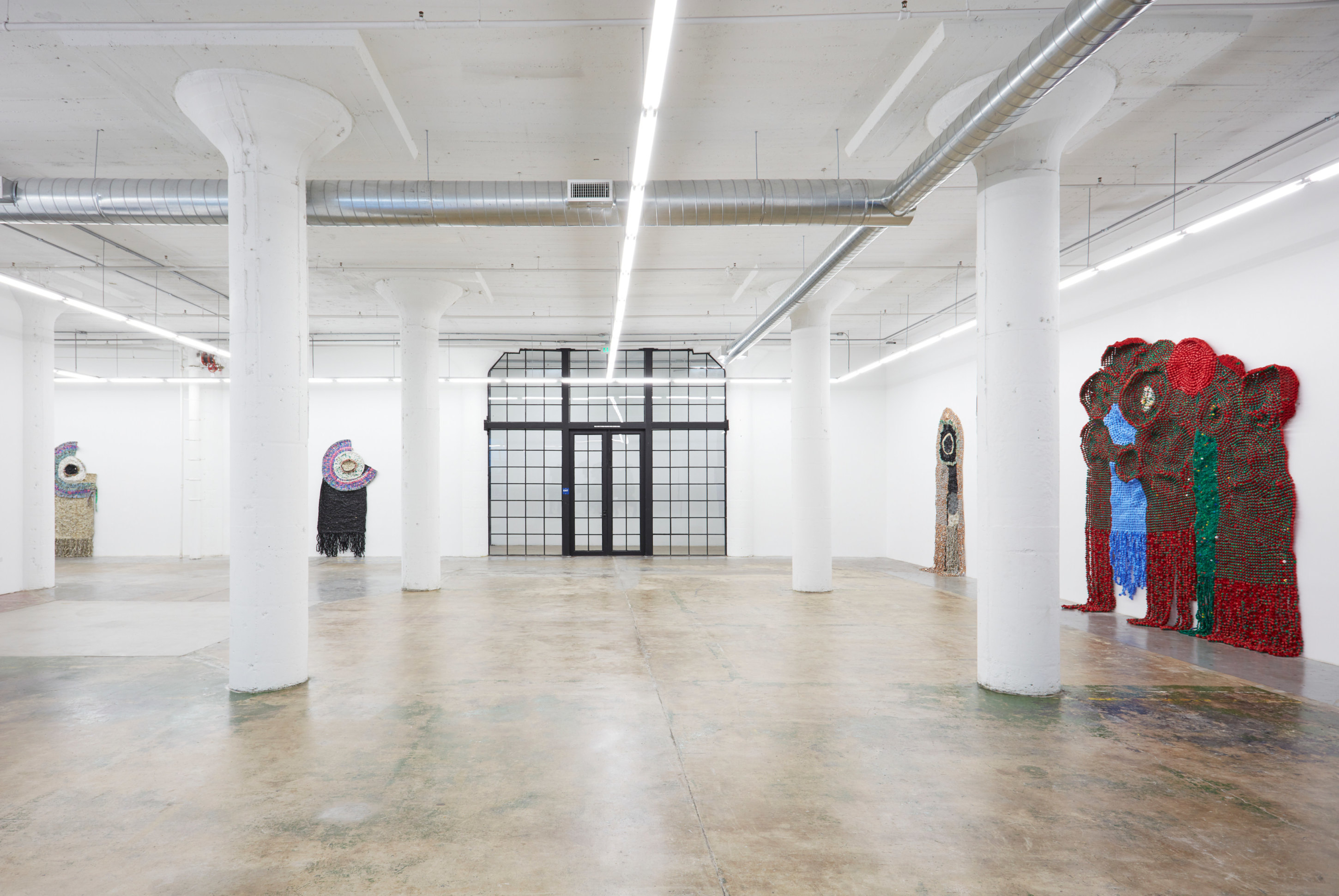 Downtown itself has more than one ecosystem, and tonight they’re all activated. Amidst a plethora of art openings this first week of September, exuberant found-material assemblage tapestries by Moffat Takadiwa activate Nicodim Gallery’s inaugural show in their brand new space on Santa Fe Avenue.