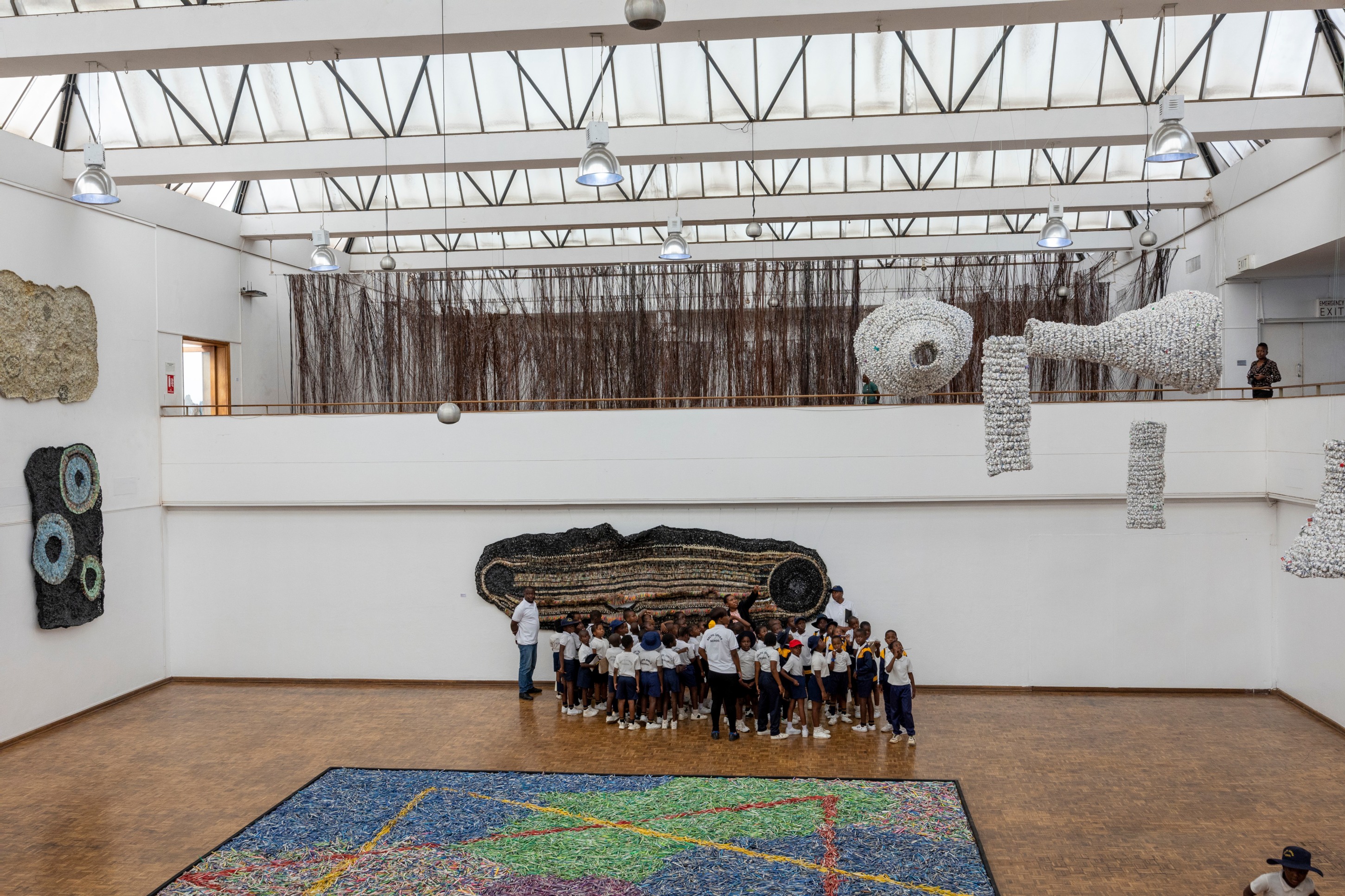 National Gallery of Zimbabwe is pleased to present Vestiges of Colonialsm – the first solo exhibition with Zimbabweian artist Moffat Takadiwa. Takadiwa transforms post-consumer waste – such as used toothbrushes, bottle tops, and computer keyboards – into lush, densely layered sculptures and tapestry-like wall works that embody the complexities of contemporary Zimbabwean politics, culture, and reference his Korekore heritage.