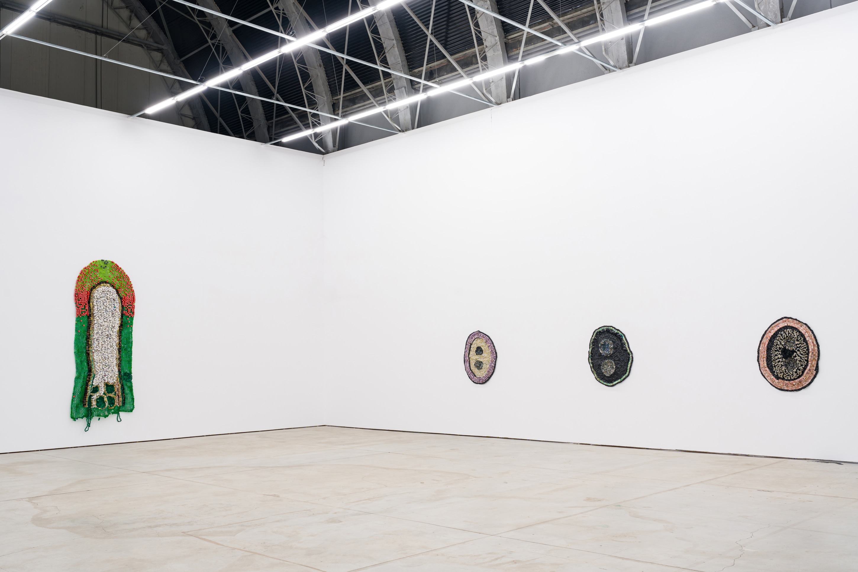 Moffat Takadiwa (b. 1983, Karoi) lives and works in Harare, Zimbabwe. Part of the post-independence generation of artists in Zimbabwe, Takadiwa has exhibited extensively across major institutions in Zimbabwe as well as internationally. Takadiwa also was a founder of Mbare Art Space in Harare where he plays a part in mentoring the growing artist community. Recent exhibitions include Vestiges of Colonialism, Galeria Nicodim, Bucharest (2024, solo); Feeling Without Touching, Nicodim, New York (2023); Zero Zero, Semiose, Paris (2023, solo); Vestiges of Colonialism, National Gallery of Zimbabwe, Harare (2023, solo); A Love Letter to LA, curated by Storm Ascher, Superposition Gallery, Phillips Auction House, Los Angeles (2023); Africa Supernova, Kunsthal KAdE, Amersfoort (2023); Nous sommes tous des lichens, Musée d’art contemporain de la Haute-Vienne – château de Rochechouart (2022); The Bull, Semiose, Paris (2022, solo); Brutalized Language, Nicodim, New York (2022, solo); Witch Craft: Rethinking Power, Craft Contemporary, Los Angeles (2021, solo); This is Not Africa: Unlearn What You Have Learned, ARoS Museum, Denmark (2021); Mr. Foreman you have destroyed the farm, Semiose, Paris, France (2021, solo); INXS: Never Before Seen Major Works by Simphiwe Ndzube, Moffat Takadiwa, Zhou Yilun, Nicodim, Los Angeles, CA (2020); Son of the Soil, Nicodim, Los Angeles, CA (2019, solo); Thread., Long Beach Museum of Art, Long Beach (2019); Stormy Weather, Museum Arnhem, Arnhem, The Netherlands (2019); Second Hand: Selected Works from the Jameel Art Collection, Jameel Arts Centre, Dubai (2019); Material Insanity, Museum of African Contemporary Art Al Maaden, Marrakech (2019); The Eye Sees Not Itself, Nicodim, Los Angeles (2018); and Chinafrika. under construction, Museum for Contemporary Art Leipzig (2017).