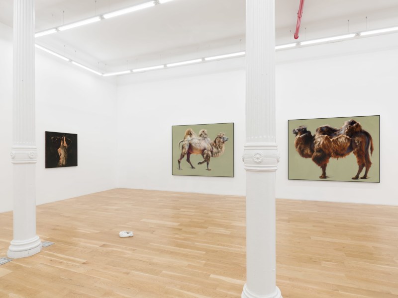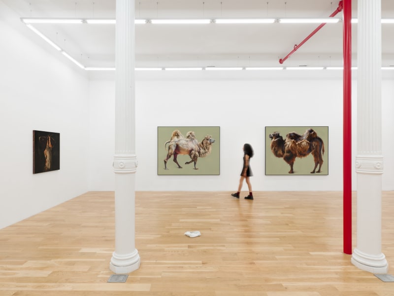 With Bactrian II, Wilson reappropriates a baseline symbol of Britain’s Orientalist duplicity with a rendering of a shaggy camel moulting its wool in a manner that recalls 18th century jewels of the crown like George Stubbs and John Wootten. The Bactrian breed is famously domesticated, but Wilson’s muse is flamboyant, unbridled, and sure-footed as he proudly trots through a greenish negative space that smirks of English school pretense. The camel is isolated, imperfections magnified—no gods, no masters. He’s almost winking at us, asking (and borrowing a mondegreen from Nigel Tufnel), “what’s wrong with being sexy?”