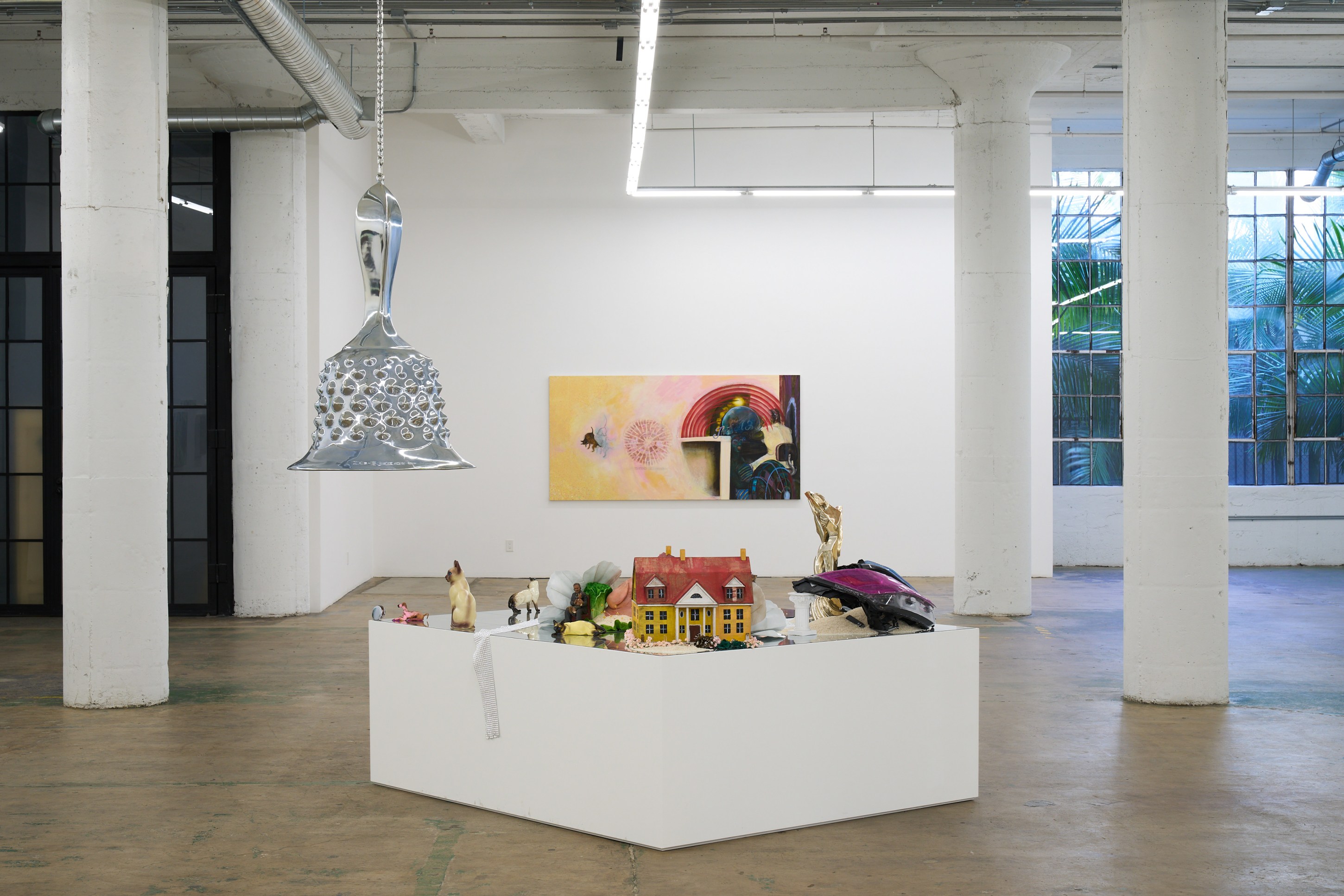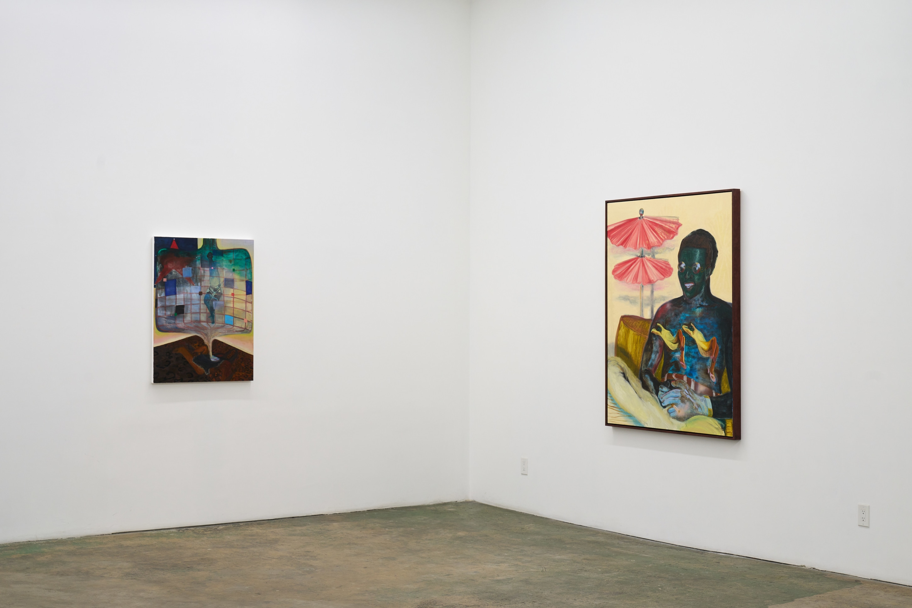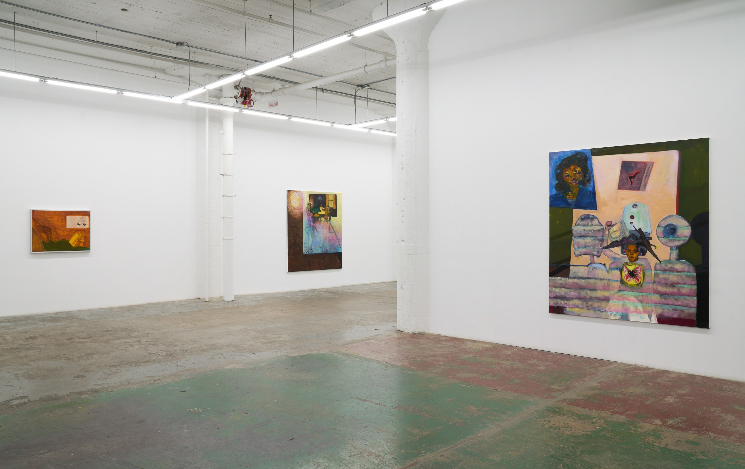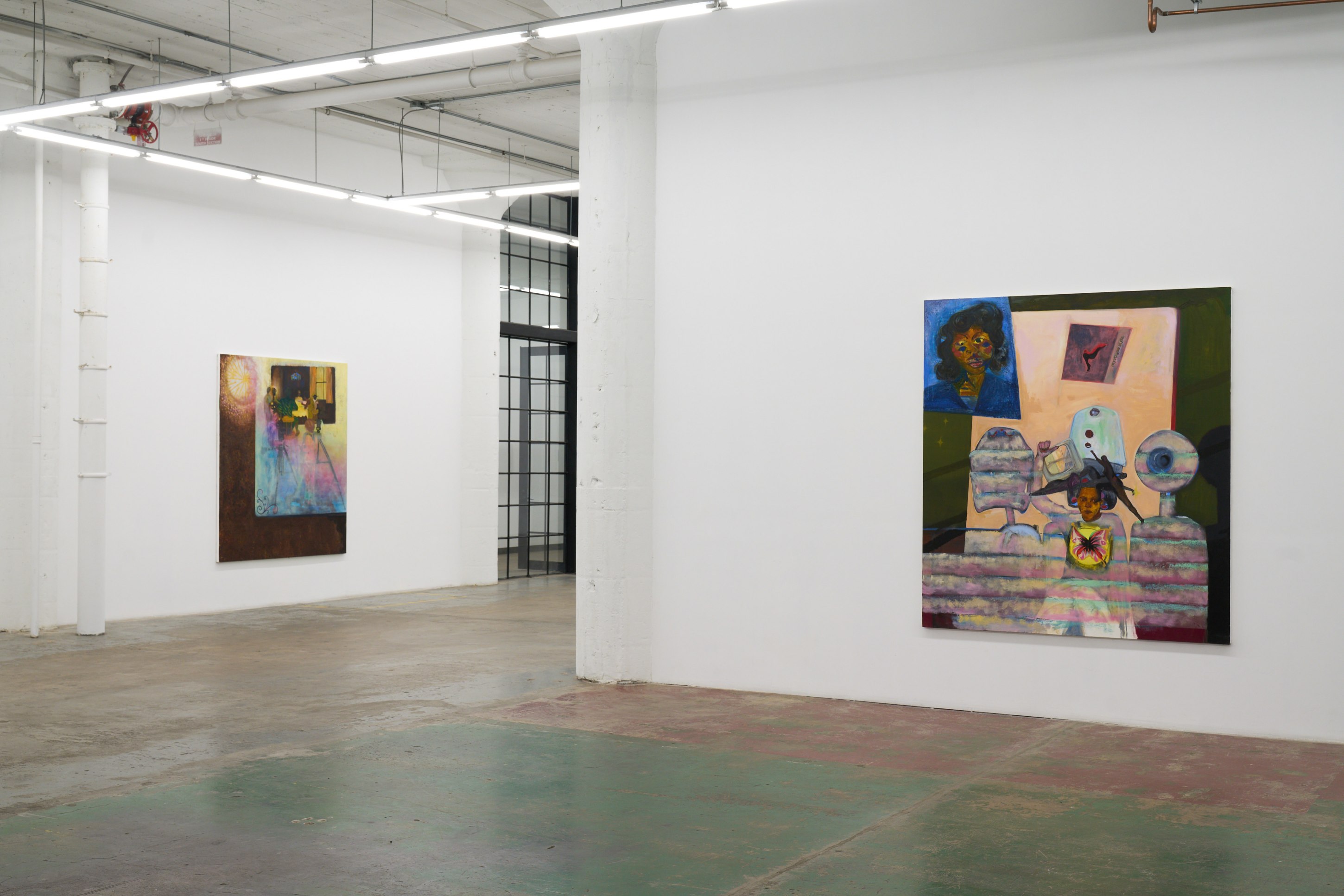 The exhibition, Romney’s second solo with Nicodim, emerges underneath the nighttime magic of Hecate. Impossible spaces assert their dominion within and beyond the gallery walls— time and identity are compressed, distorted, opaqued, vaulted, organic, exhibitional—they produce their own fantasy acoustics. Sound and possibility are in abundance here. Bodies old and used morph into new, taking spirit-form. They explode through logic and time, caught mid-transit journeying through and opening portals. The music cracks, breaks, deconstructs, destroys in tradition and reverbs towards freedom.