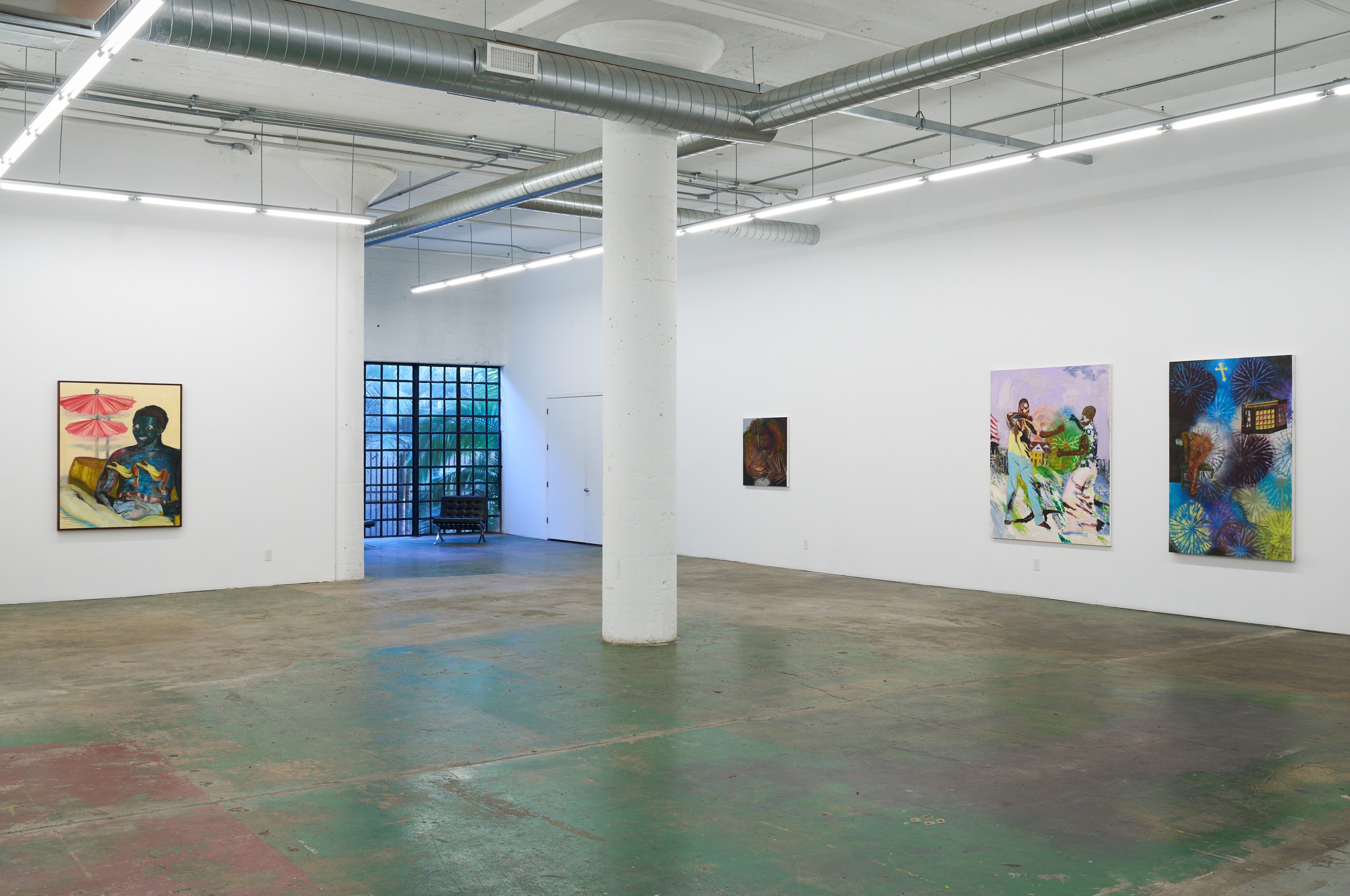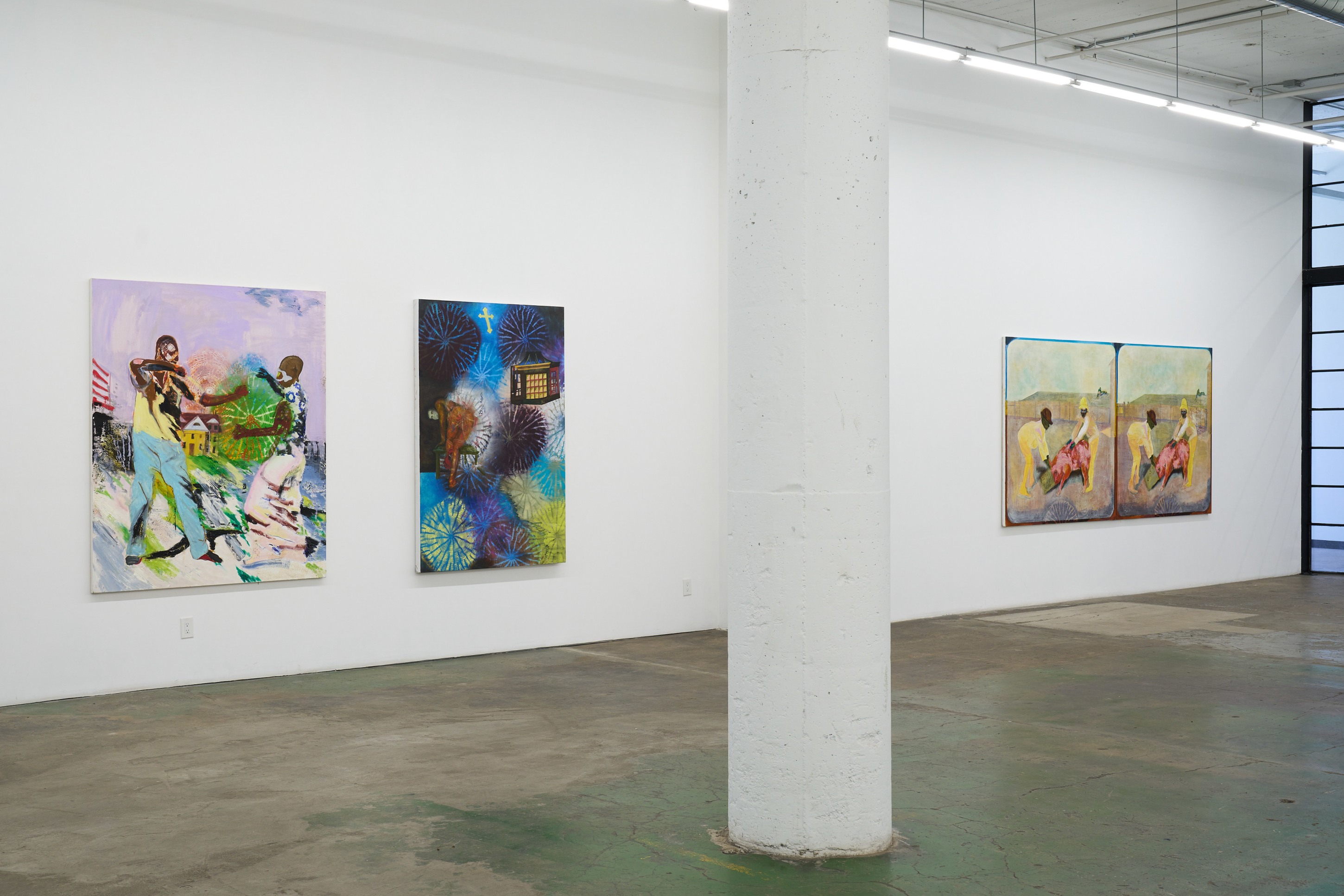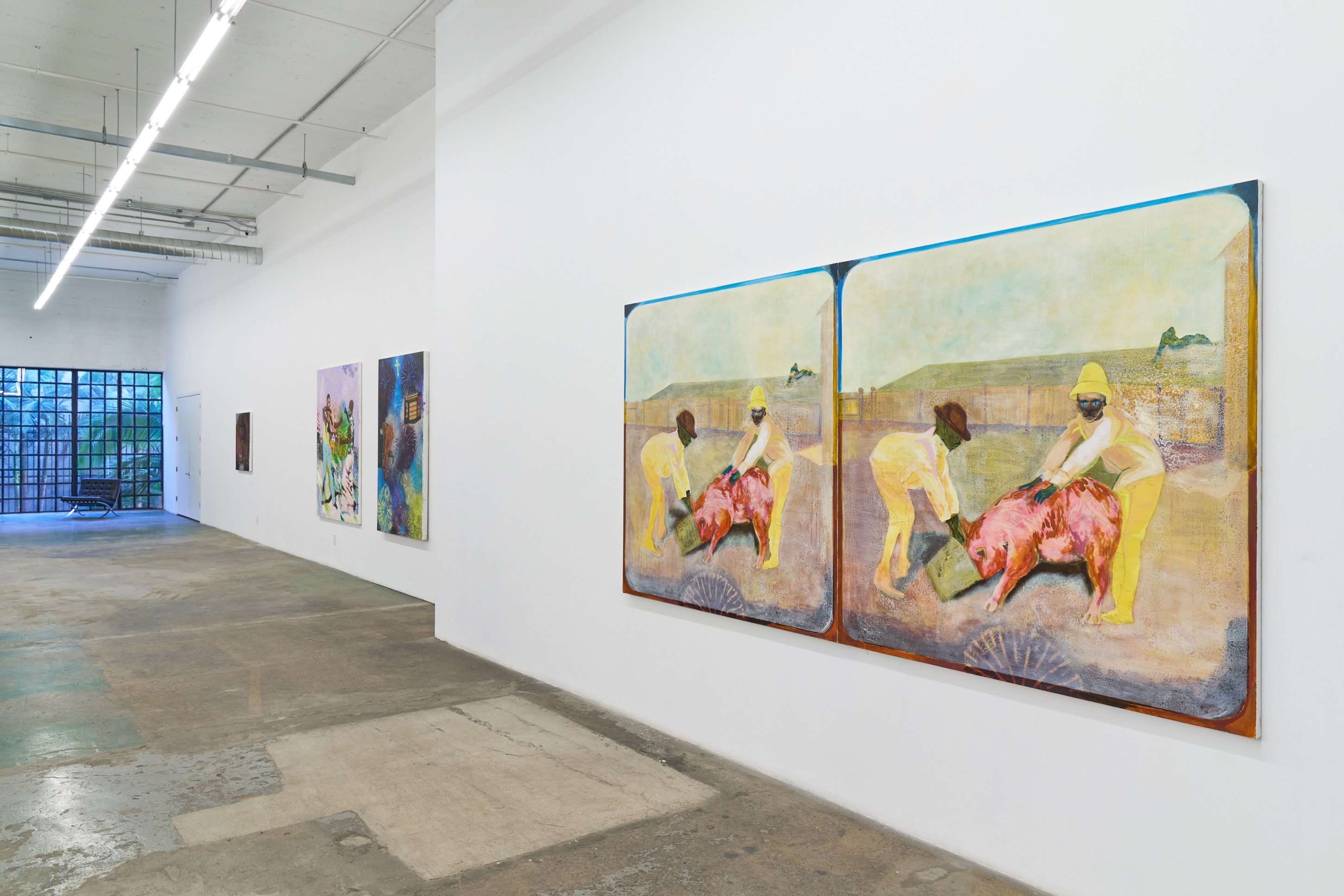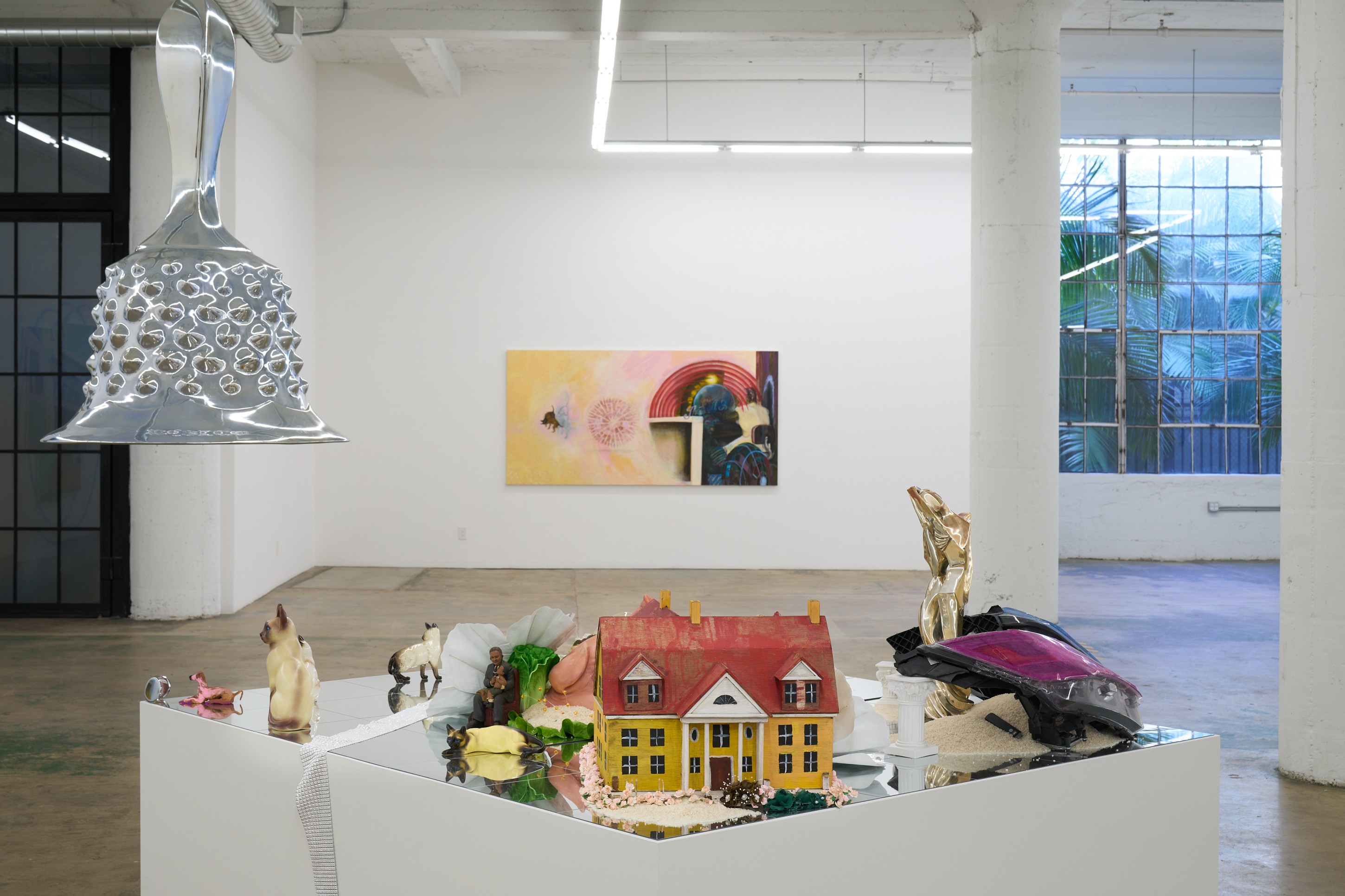 The exhibition, Romney’s second solo with Nicodim, emerges underneath the nighttime magic of Hecate. Impossible spaces assert their dominion within and beyond the gallery walls— time and identity are compressed, distorted, opaqued, vaulted, organic, exhibitional—they produce their own fantasy acoustics. Sound and possibility are in abundance here. Bodies old and used morph into new, taking spirit-form. They explode through logic and time, caught mid-transit journeying through and opening portals. The music cracks, breaks, deconstructs, destroys in tradition and reverbs towards freedom.