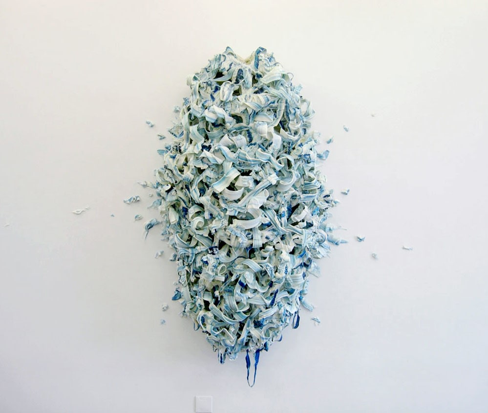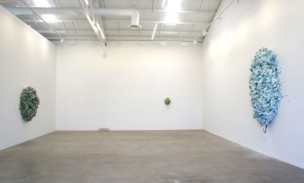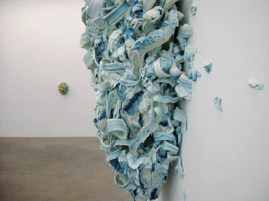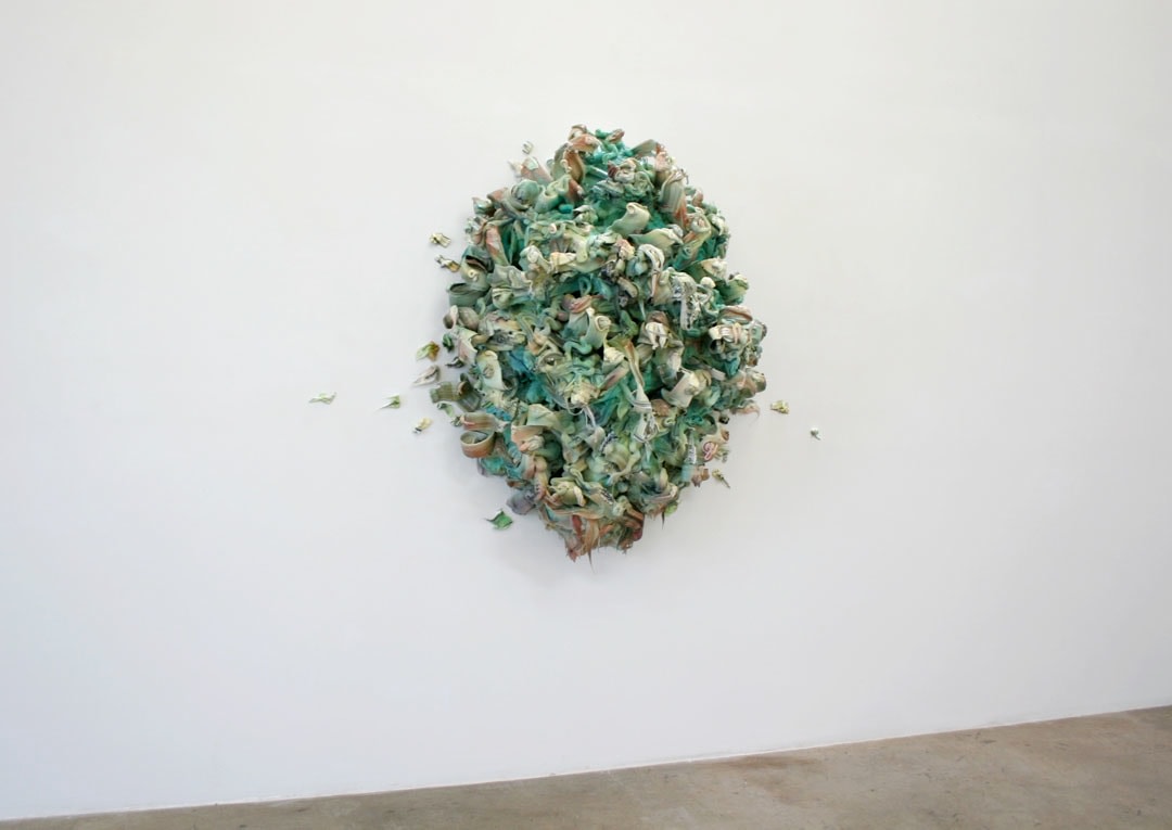 This exhibition presents both Fanestra and Nonsobre alongside new work made specifically for Mihai Nicodim Gallery. Rock’s deepening commitment to exploring legacies of physical painting through unique processes and the rupturing of formal devices is evident in the obsessional interlacing of form and surface, material and support in this new work. Fanestra itself, monumental in both scale and painstaking construction, takes its name from a passage in the memoir of the Greek born, Italian painter Giorgio de Chirico, who used the term as an allegory for creative determination and vision. Significantly, it also relates to the literal meaning from which this allegory is taken; the entanglement of kite strings in flight. When juxtaposed with Fanestra’s semantic connection to the Italian word for window, finestra, Rock wants us to use this triadic relationship to look at the fractured role and function of painting today as it stands between paradigmatic moments in its recent history, amidst a growing complexity of internal languages and their increasing hybridization with other forms of cultural production.