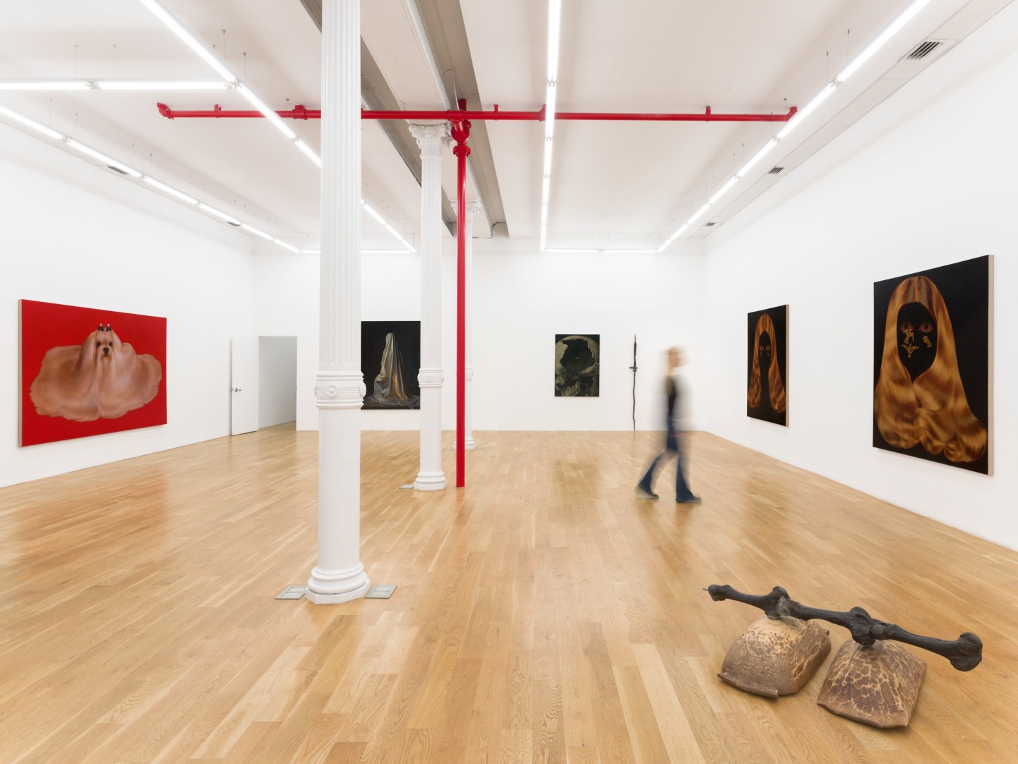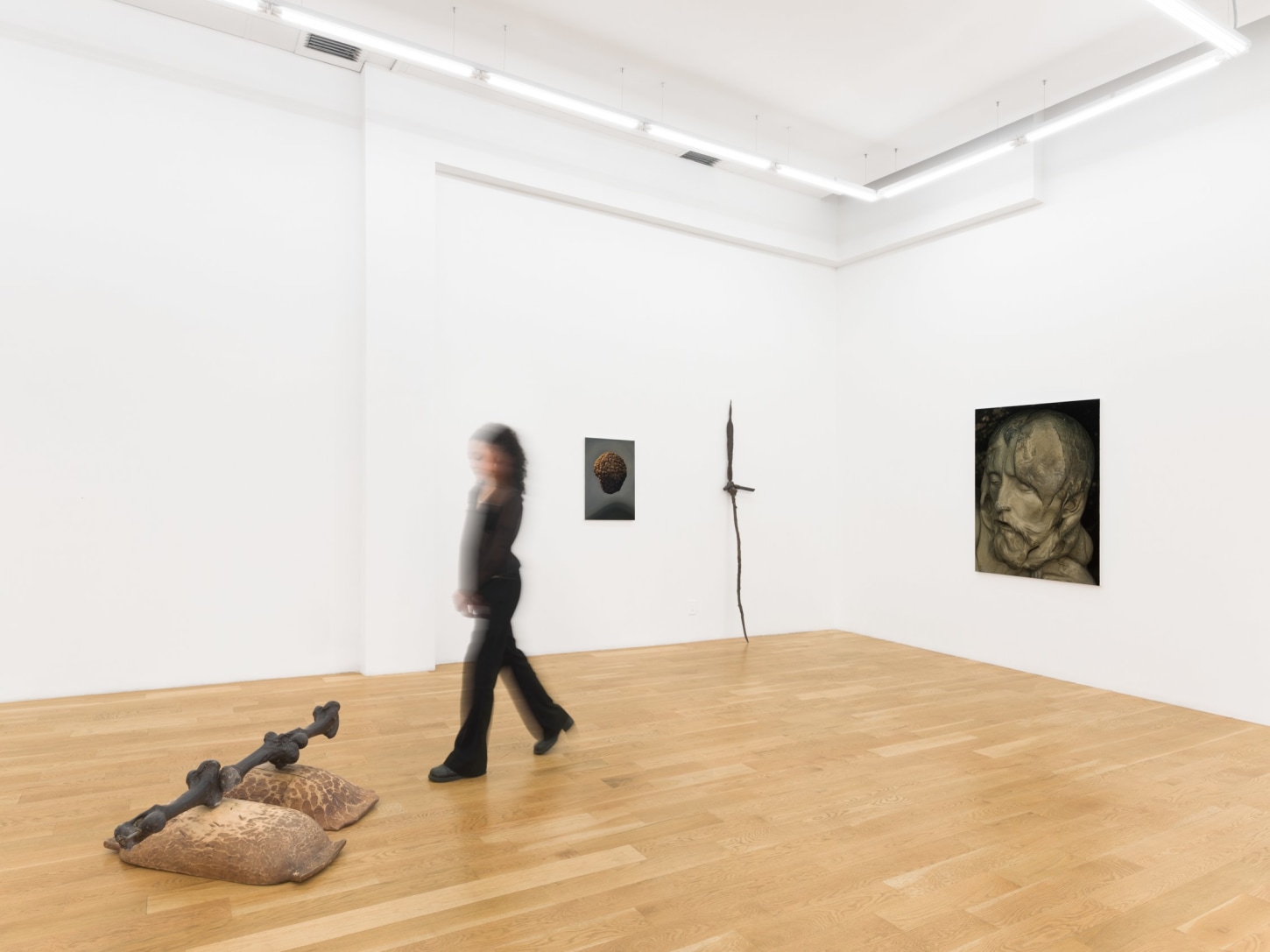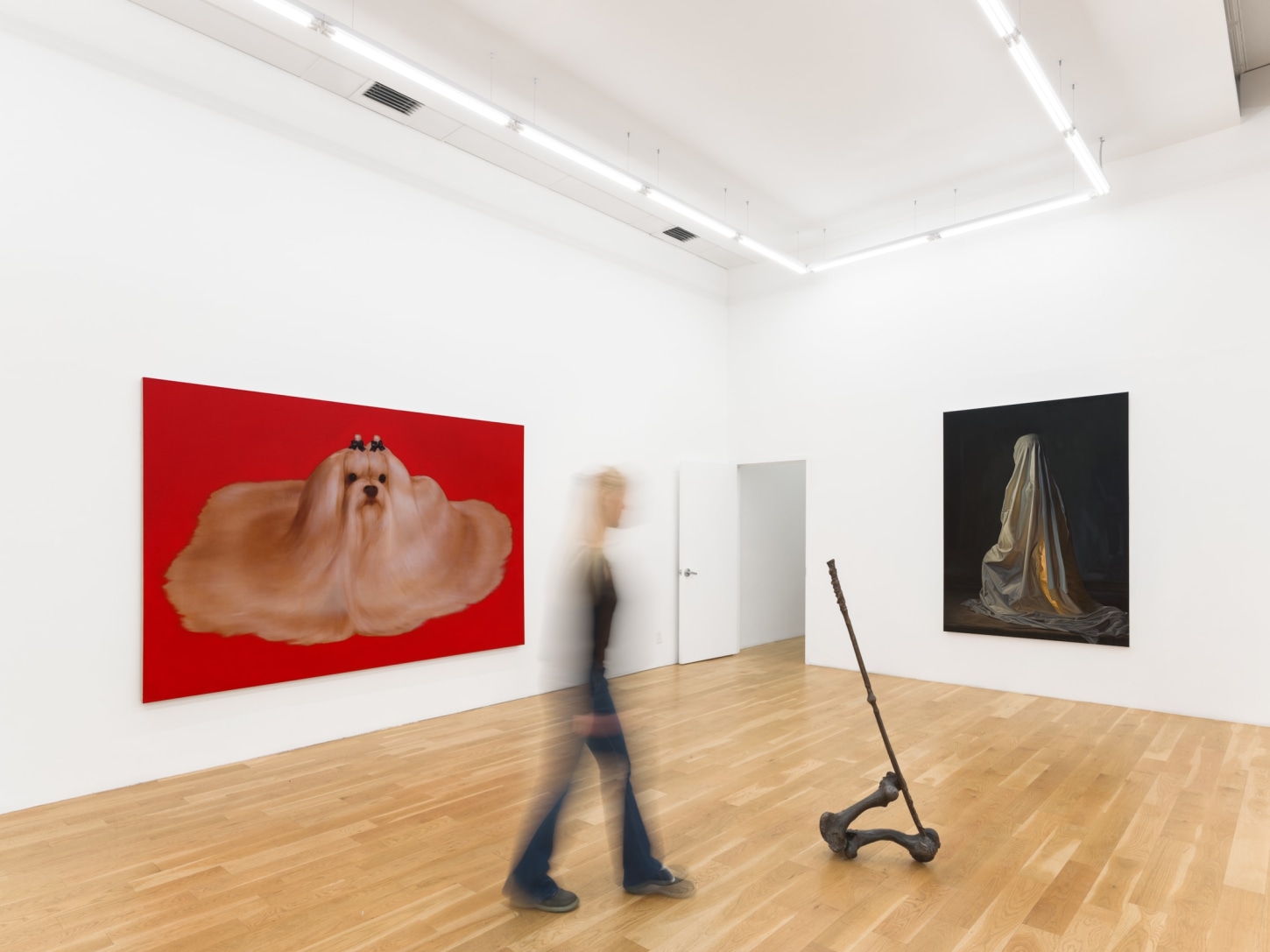 Niklas Asker, Rae Klein, Jorge Peris is an exhibition of artists whose practices filter and funnel the aforementioned informational acid hurricane into consumable portions that foster new understandings. Each artist’s voice and methodology is unique, yet complementary to the others. Niklas Asker applies an even-handed emotional logic to personal triumphs and traumas, focusing a singular, steady spotlight on compositions reckoning with the death of a loved one, his wife’s pregnancy, and the search for meaning and beauty through it all in equal parts allegory and representation. A pearl, a ball of light within a skull, a warm glow shining from within a bedsheet become eternal iterations of the same hopeful mantra. Rae Klein’s visual vocabulary isolates references to mankind’s attempts to assert its mastery over the feral world through fear, power, spirituality, or some combination of the three. A monumentally-scaled Maltese swimming in so much of its own perfectly coiffed fur that its mobility is seriously impeded, if not impossible, is both a lullaby to the feral world, and an acknowledgement of man’s place within the hierarchy of species: look what we did to the wolf! Finally, Jorge Peris’s sculptures comprise a collaboration between his body, the natural world, and the voices inside his head. Cattle femurs cast in bronze become everlasting reminders of the impermanence of flesh and the foundations for new structures and systems of perception.