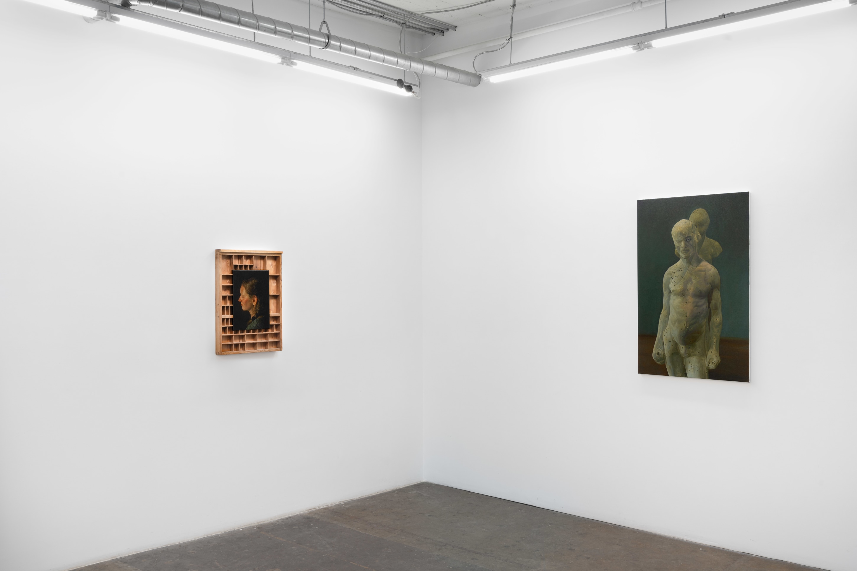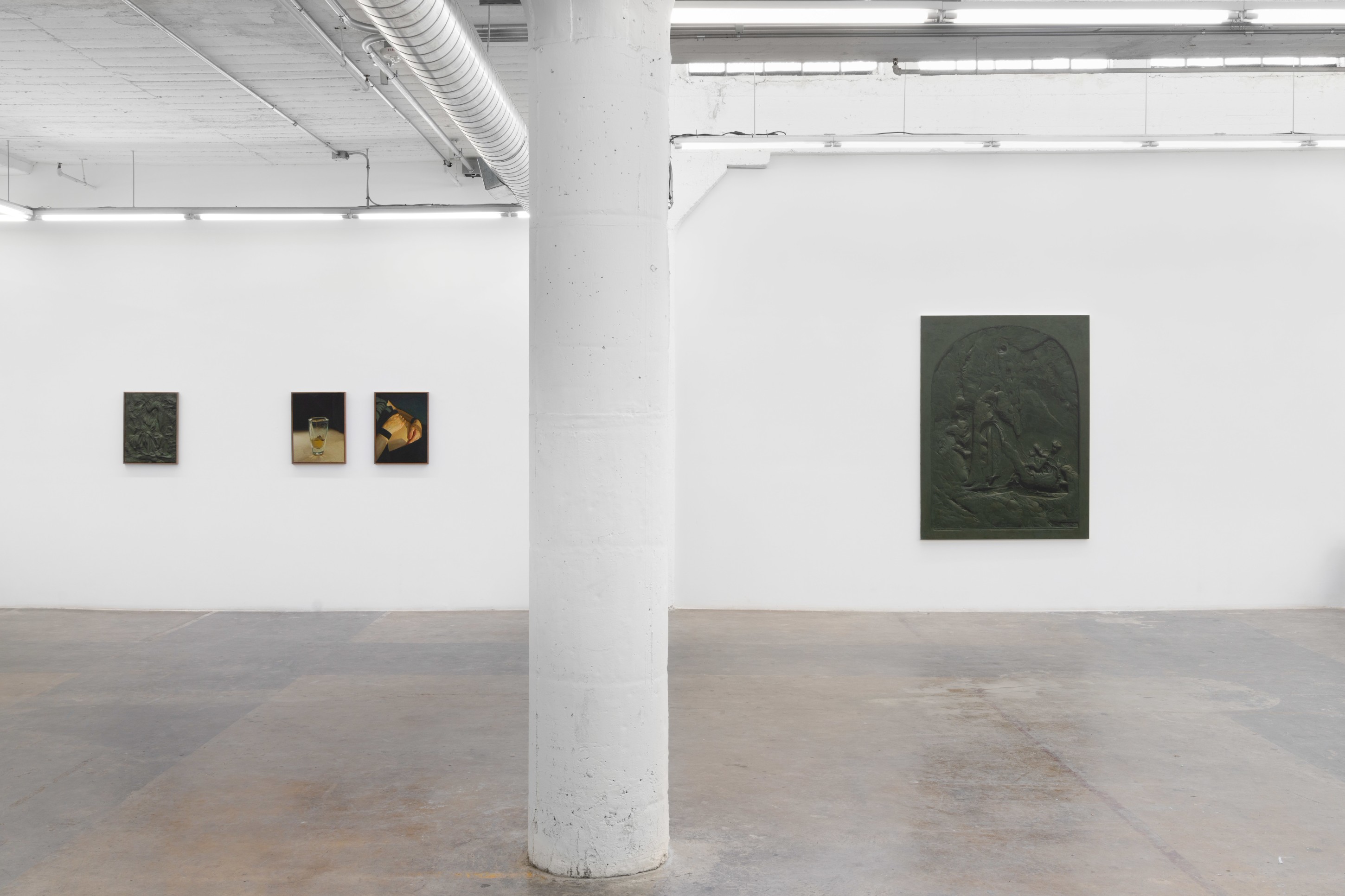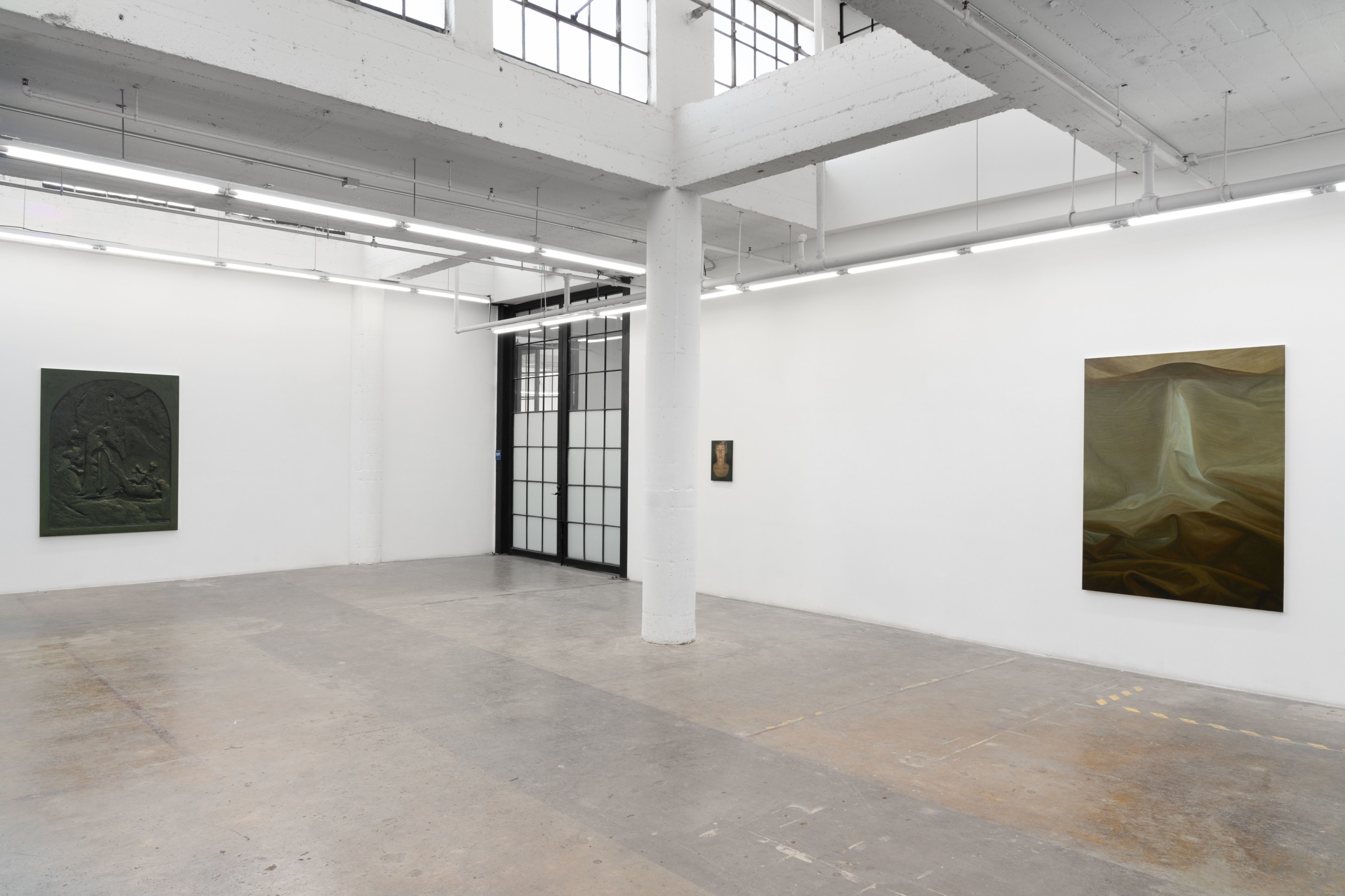 The Shroud combines figurative works that borrow from Western traditions of portraiture, still lifes, and larger pieces that utilize the concept of the shroud translated into a visual format. These pieces often begin with a reference to a sculpture or image that Asker then transforms and obscures through different digital processes, while two-dimensional drawings and paintings are transformed into reliefs. These reliefs are then used as a reference point for Asker’s paintings, bouncing back and forth between art history to the digital world and back again. Asker views this process as a means to examine how many elements in an image he can carve away without removing the core emotion of the piece. Almost as by consumption, he takes ownership of these images through this practice of dissection and recreation, allowing the artist to experience them in an intense yet intimate way, learning about their inherently devotional qualities he seeks to tease out in his final paintings.
