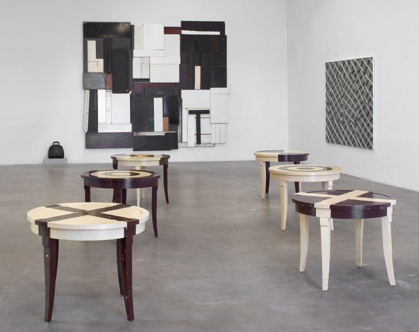 Juxtaposing two shades of wood, the tables’ faces echo a similar material discourse found in the artist’s metal works. Playing materials against one another, Wagner’s asssemblages read more of Man Ray than Braque or Schwitters. The product is conjectural and surreal while eloquently assuming the ruse of high formalism.