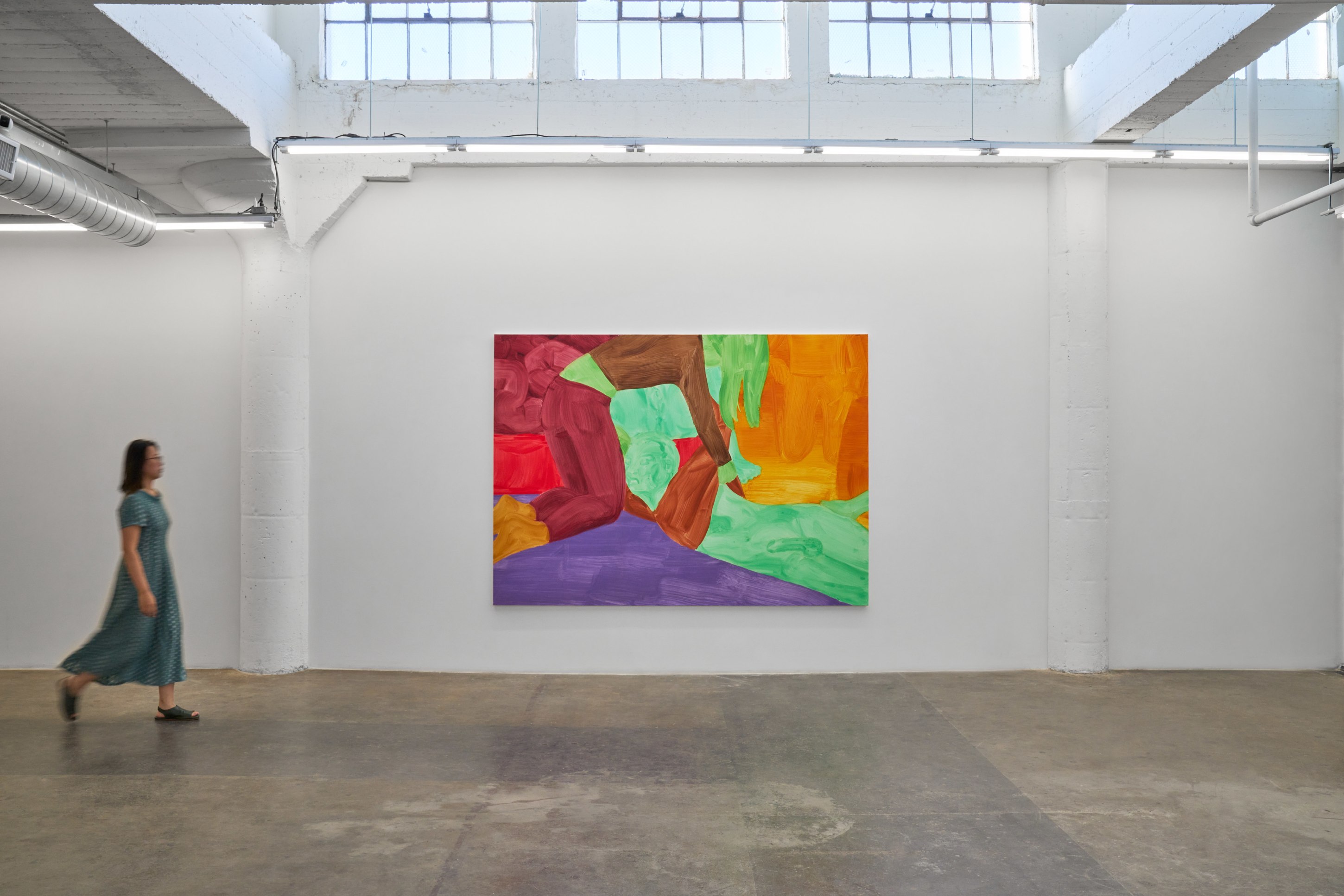 A Philipp Kremer canvas, taken as a whole, at once registers as abstraction. Groupings of bold primary and secondary colors are thickly dipped and deftly stroked from large brushes. The pigments rub up against, but never bleed into one another. Each separate pantone is a whole unto itself, a unique form, a semi-sentient body within a communal surface. The compositions are multihued communities of wholes comprised of smaller wholes fitting themselves into many smaller holes.