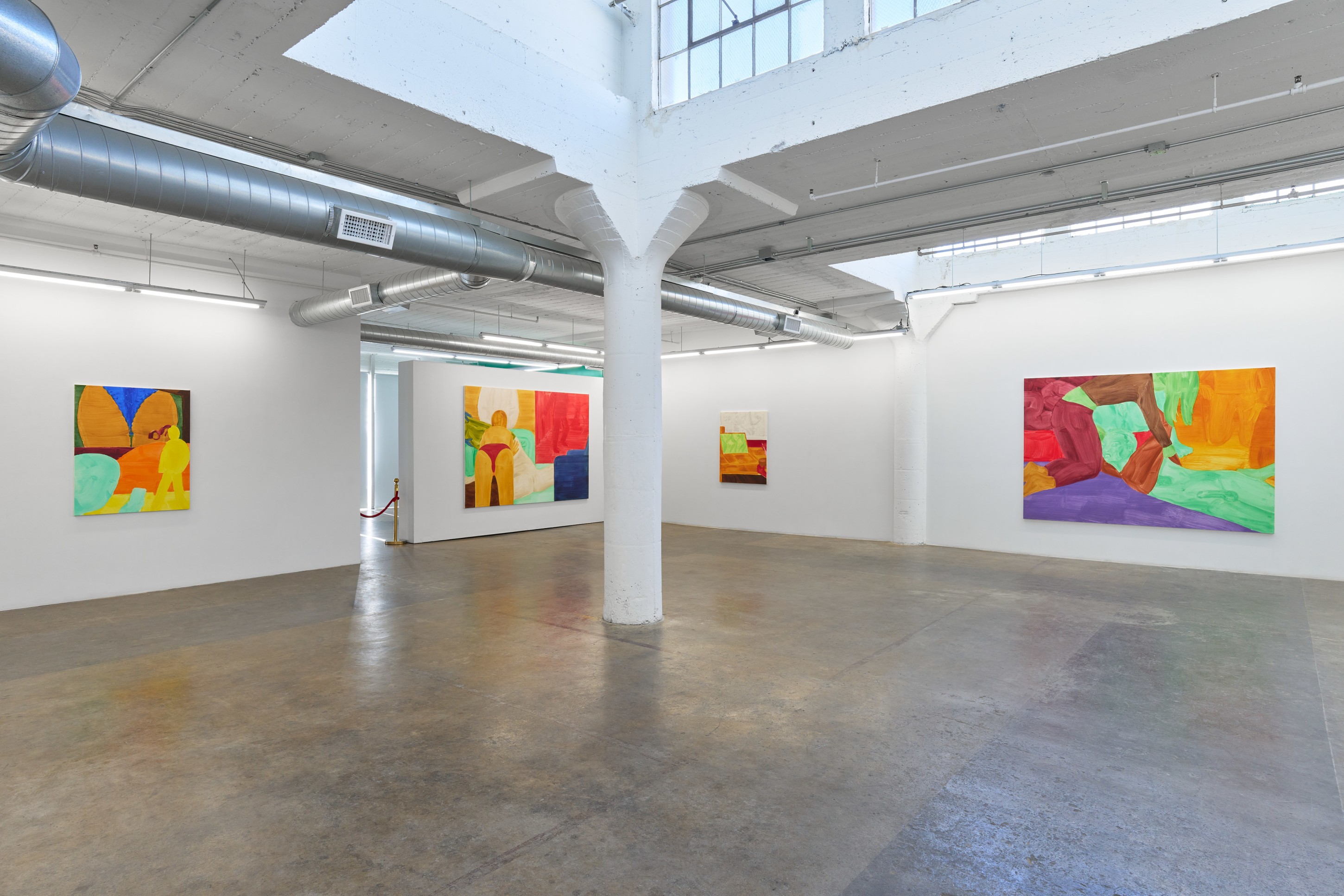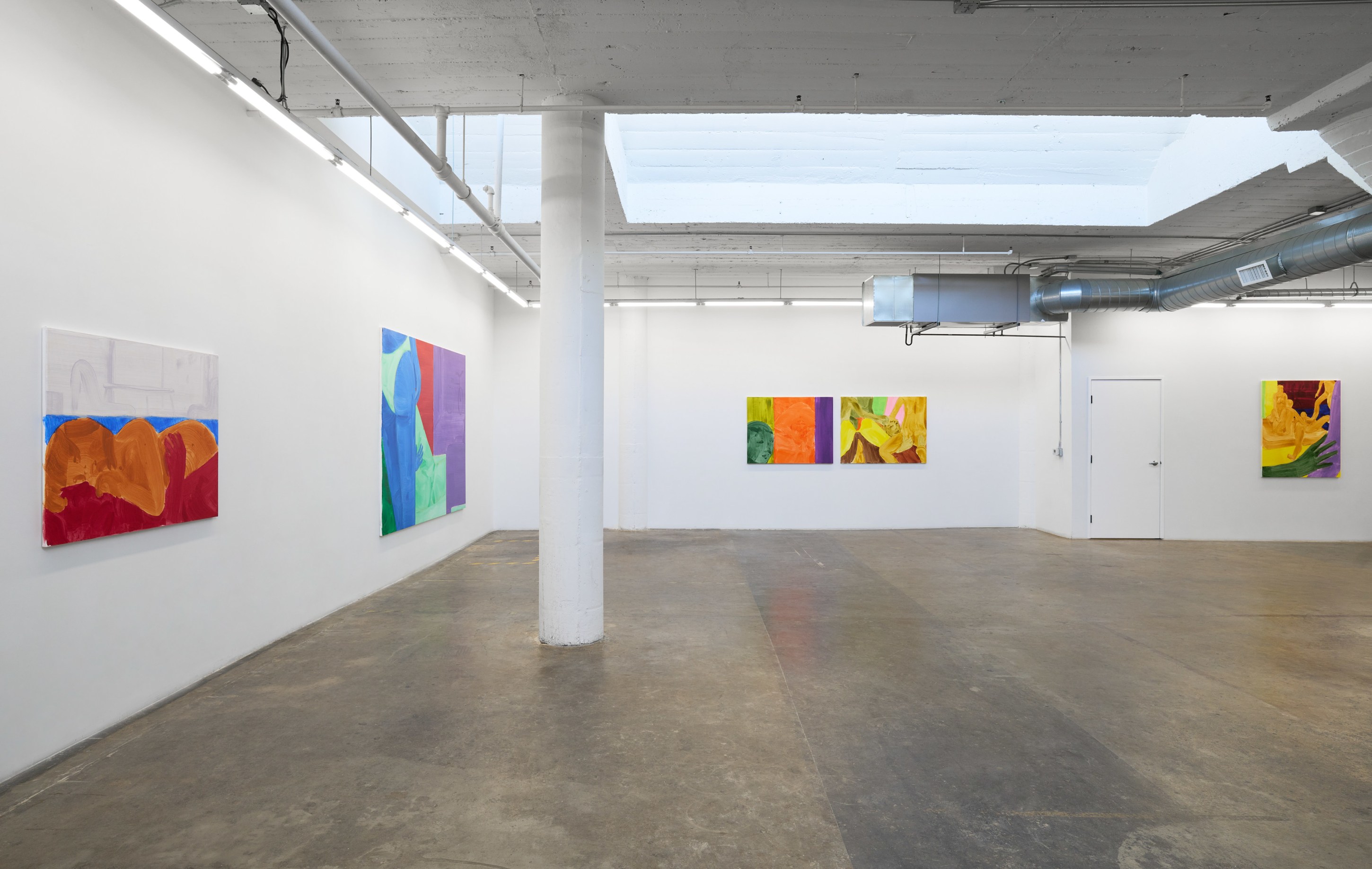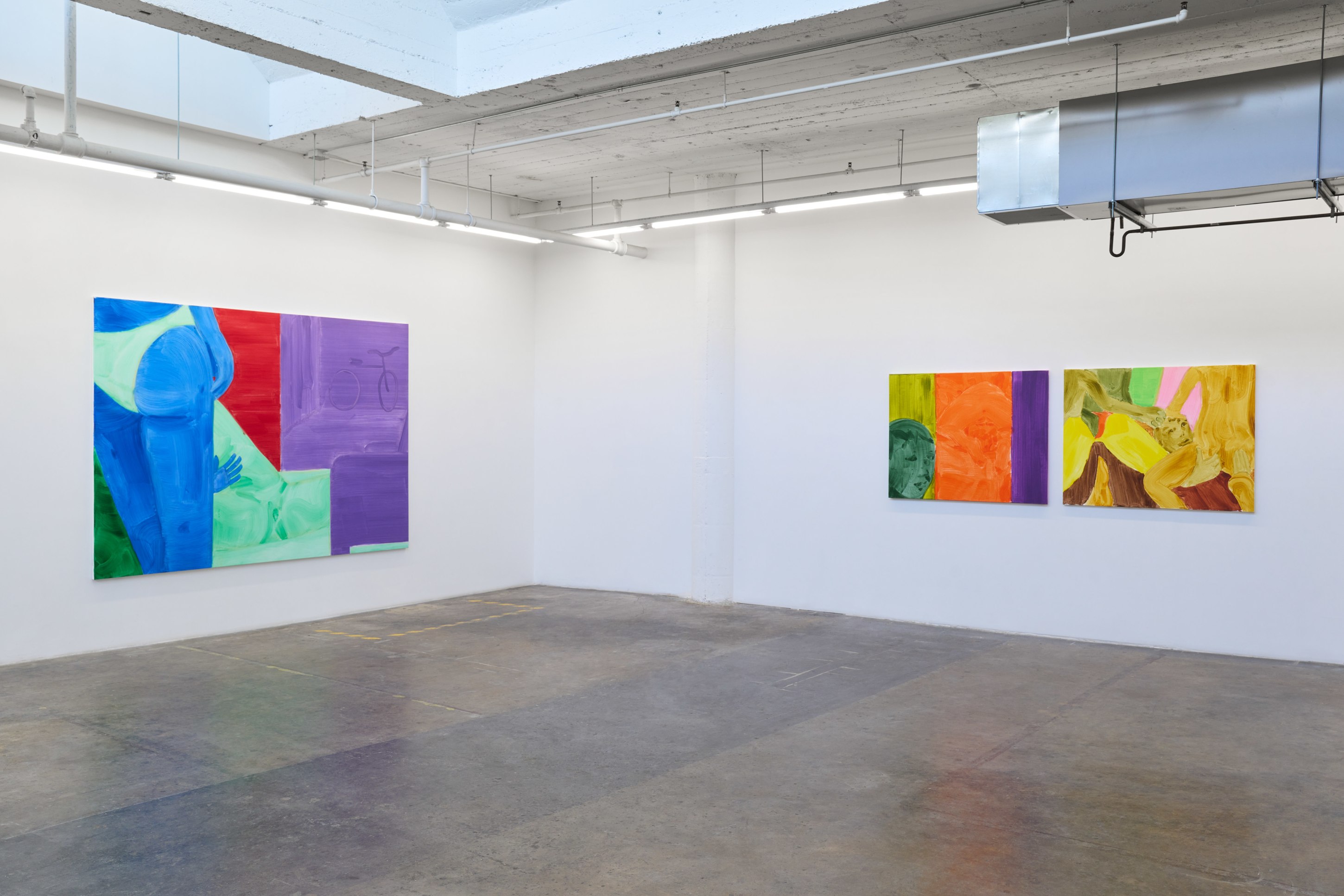 Us, Kremer’s fourth solo exhibition with Nicodim, implicitly binds the viewer to the communities on his canvases. In “Gathering (XXIII),” 2021, our gaze is fixed from around the corner. We are voyeurs, first upon a partitioning of eight individual colors, then a partially disrobed foursome, then another individual, watching us watching them. The setting of “Gathering (XXXIII),” 2021, is foregrounded by a disembodied hand—it could be our hand—pulling back the curtain on four figures rendered in a single shade as they piece themselves together in carnal delight, each appendage and embrace delineated by the weight of Kremer’s brushstrokes. He strokes us all onto the same plane, the same existence. It’s a bit uncomfortable, and not without a sense of mischief, but his approach is sincere and considered. In this body of work, every body is a part of the action, communally. All of us.