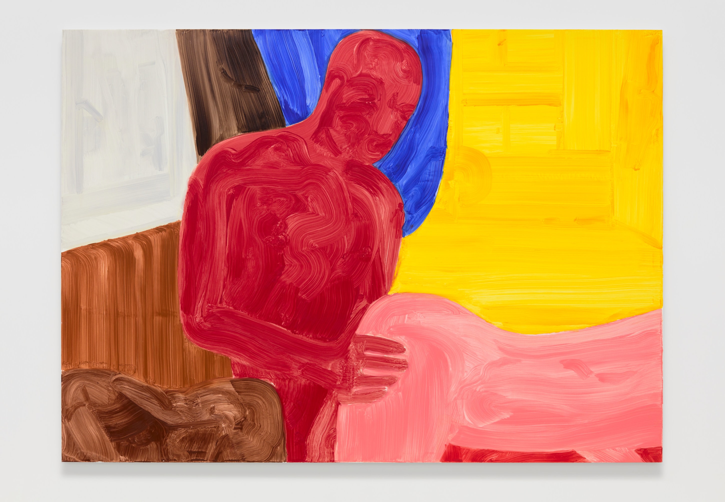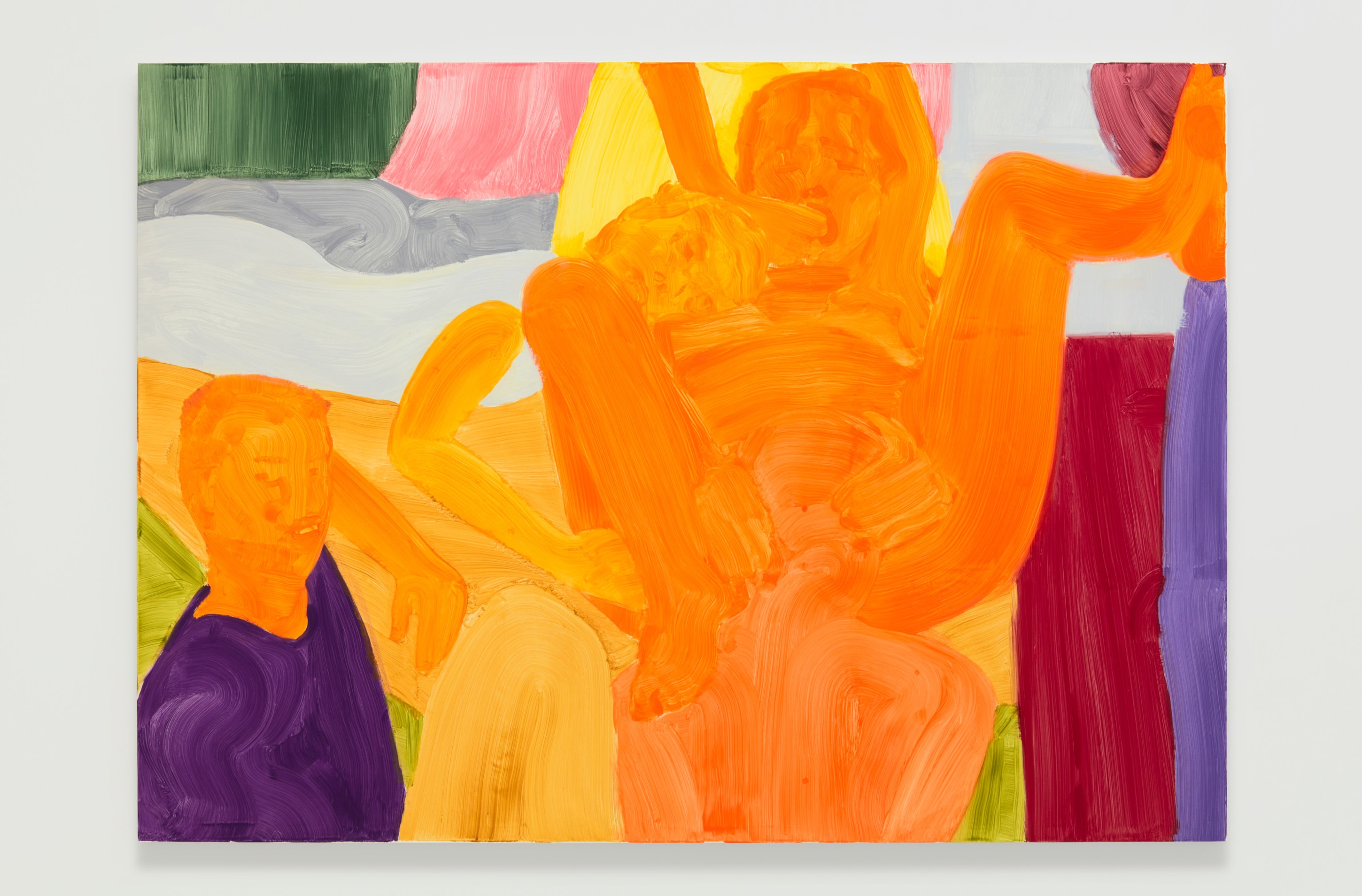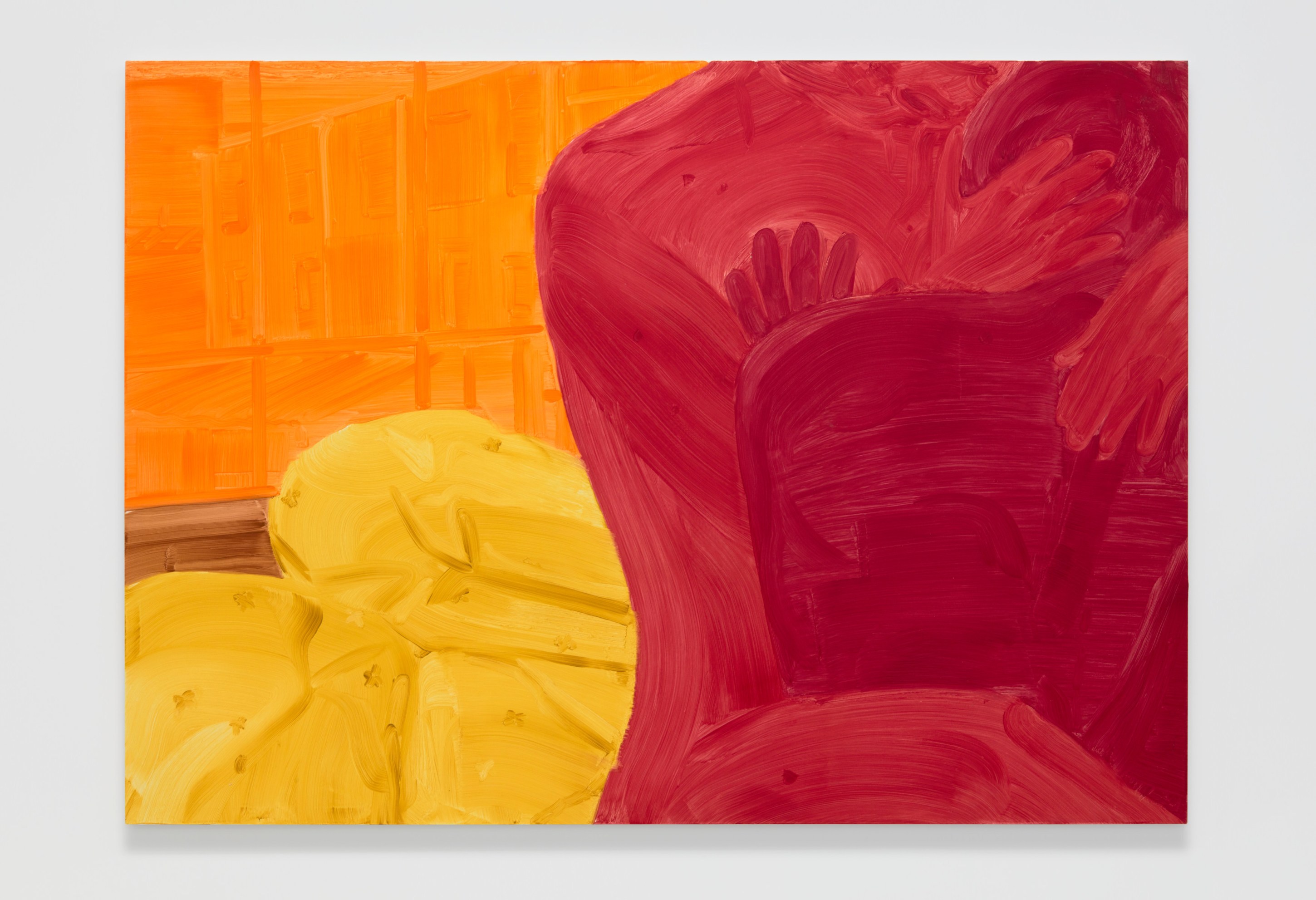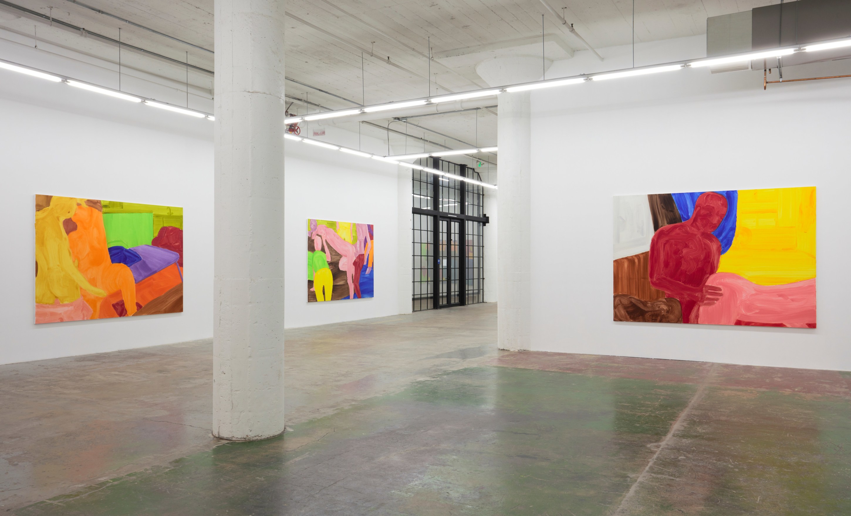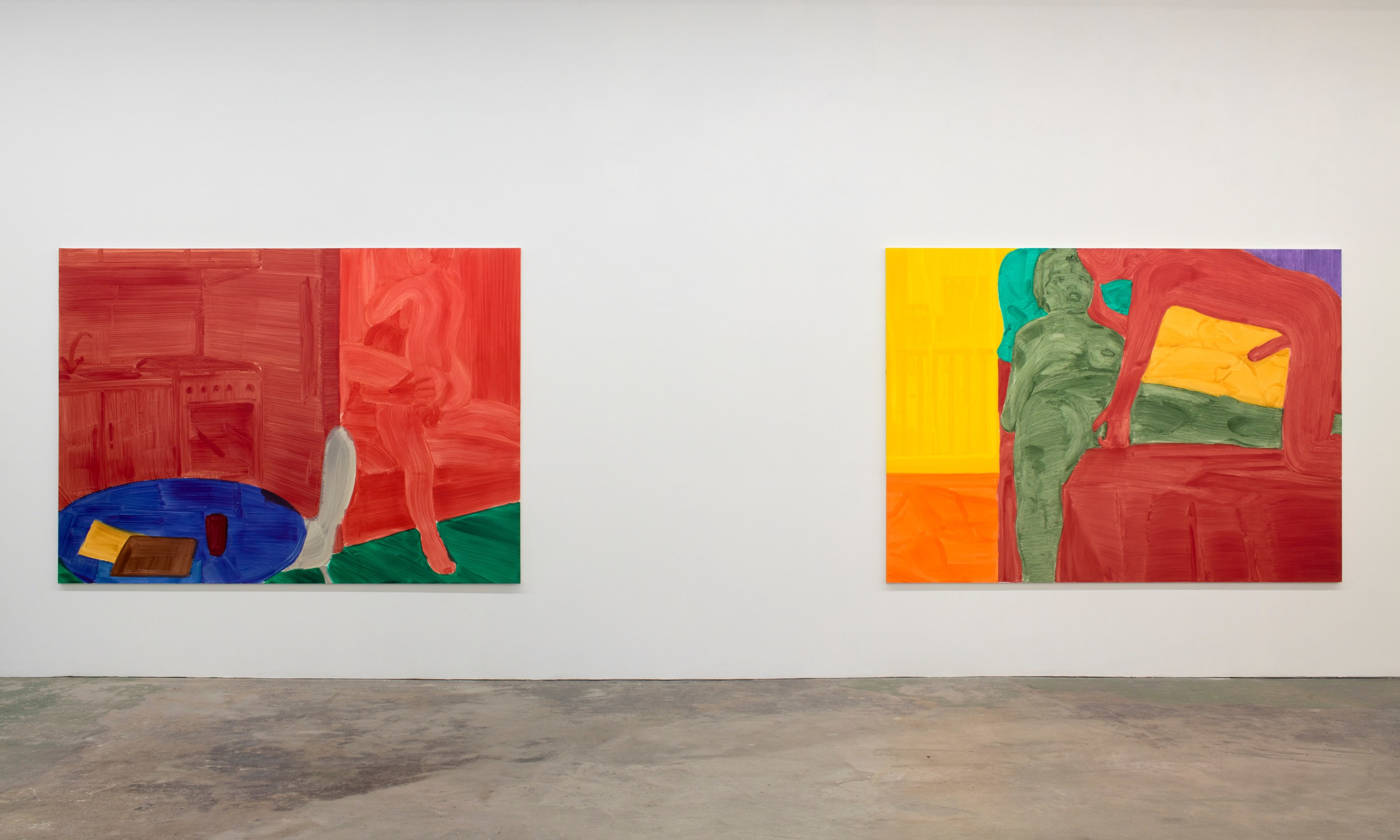 Offset, shifted colors meet, but never mix within Philipp Kremer’s elephantine canvases. They present themselves as abstractions at first. The brushstrokes are bold and purposeful in their execution, but no color-filled expanse amounts to negative space; there is a place and a reason for every erect flourish, every neon finger of color penetrating another field. Kremer creates a decisive ambiguity, an awkward, yet familiar relationship between his clearly delineated shapes. They’re connecting, touching, much as lovers do. It’s pleasing to look at, maybe even a little horny. Wait, is that a dick?