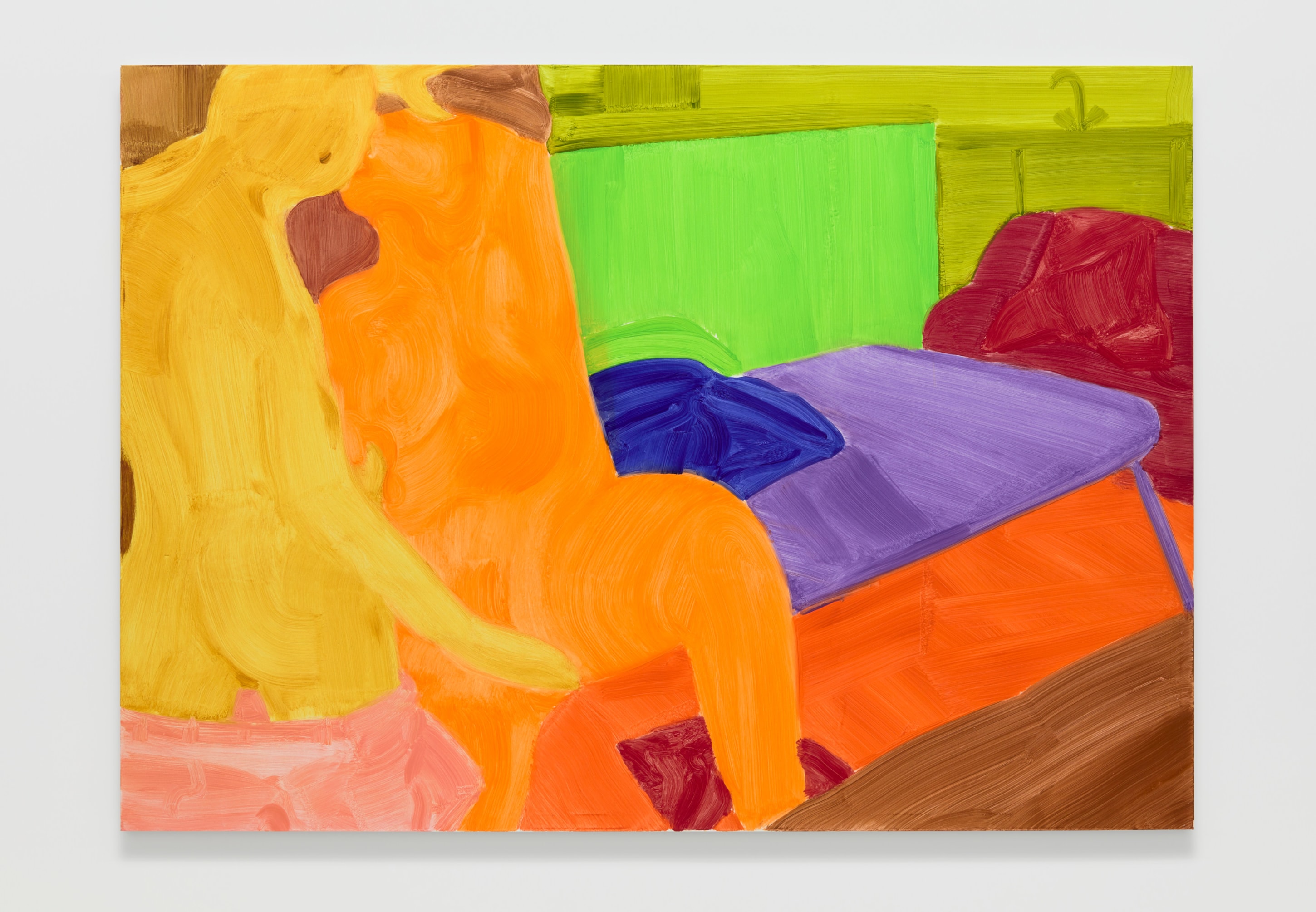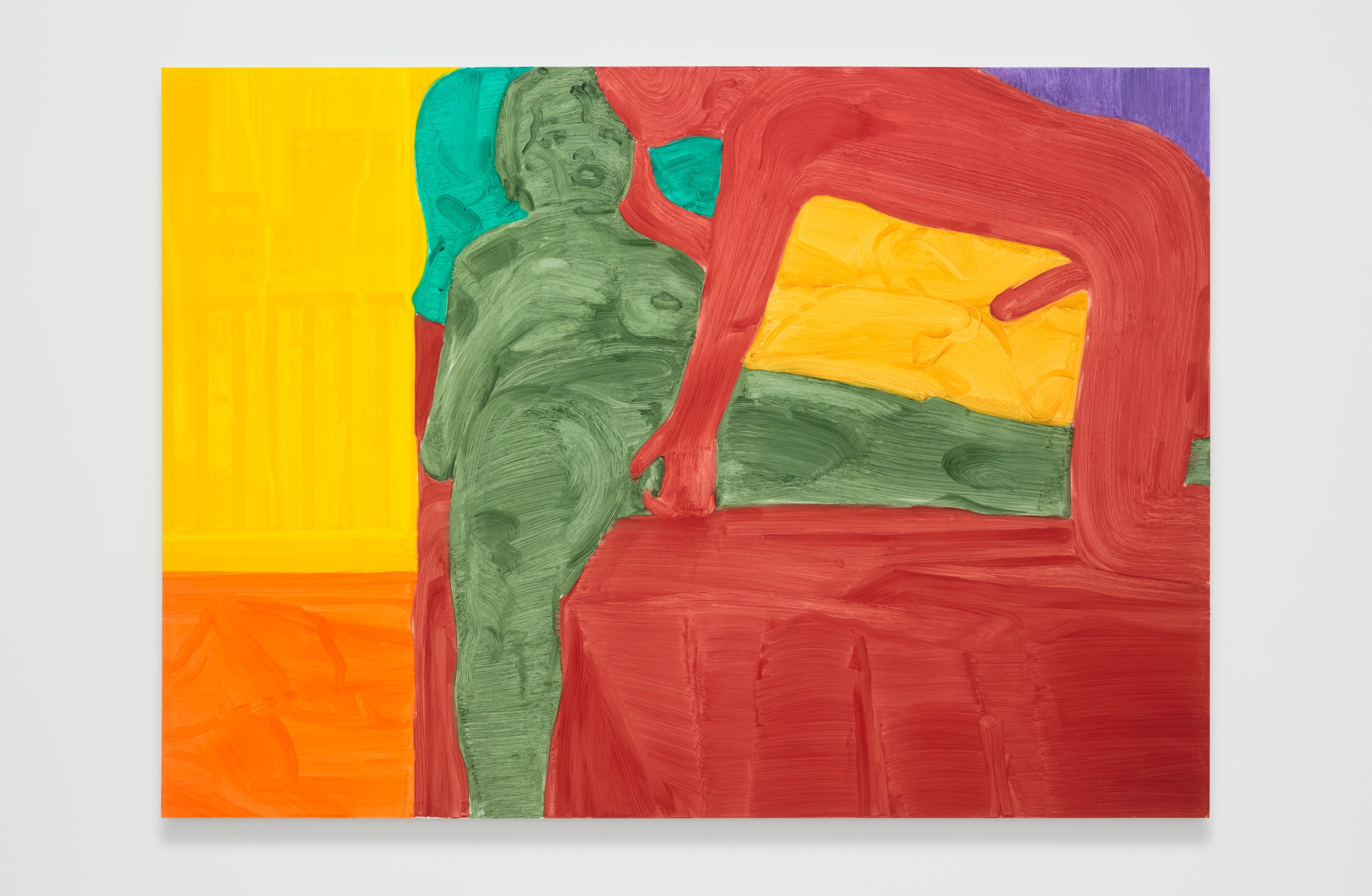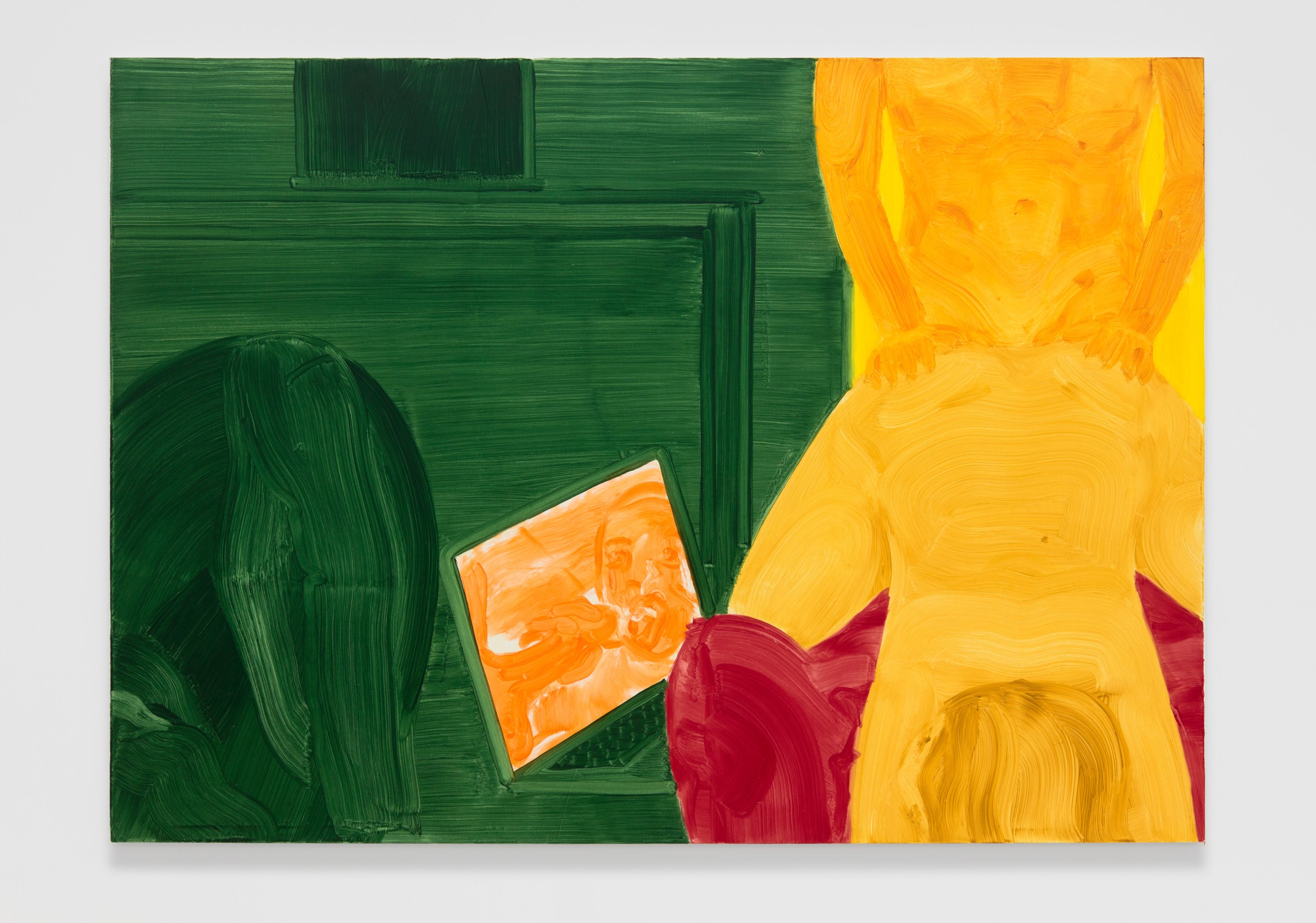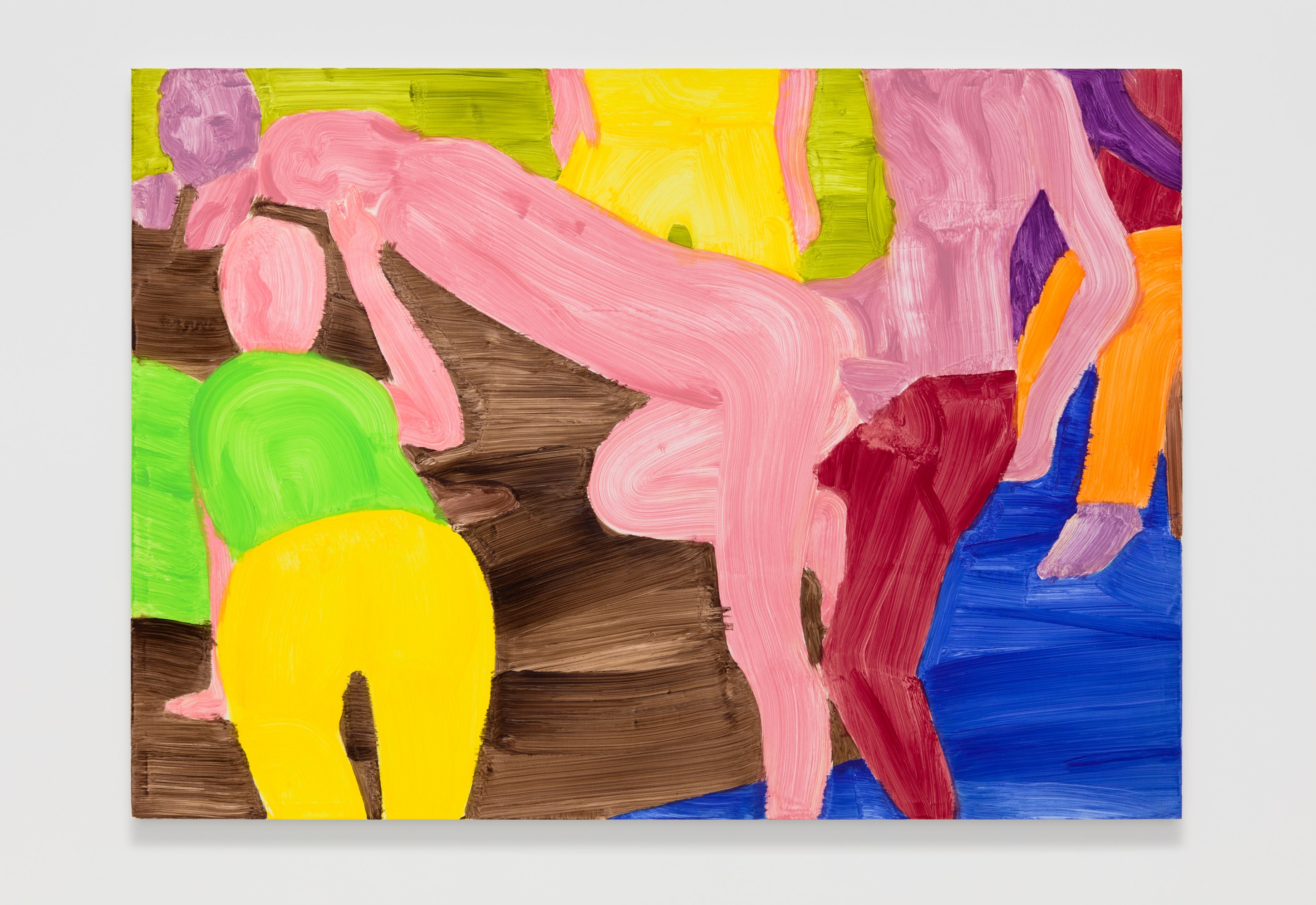 Enter the Green World of Philipp Kremer: With Lovers, see what’s behind the green door. With Kremer’s equal treatment of background and foreground, figures and surroundings, the two-dimensional, figurative orgies and sex scenes that emerge from his abstract forests of color lack the hierarchies traditionally associated both with their palettes and the configurations of the subjects depicted within. Save for their anotomical swords and houses, the figures and hues are largely genderless, and treated with the same zealous deference as the furniture on which they’re fucking. From Kremer’s perspective, the viewer is just as voyeuristic of the doorway as she is of the fingercuffing that takes place in front of it. In this way, his compositions are not pleasant escapism, but rather an accurate visualization of the world—not in the least, the world of desire—a more genuine existence to which we should all aspire.