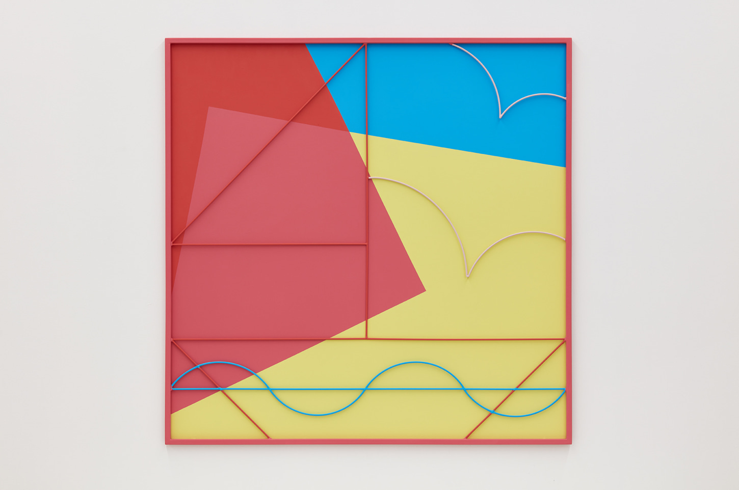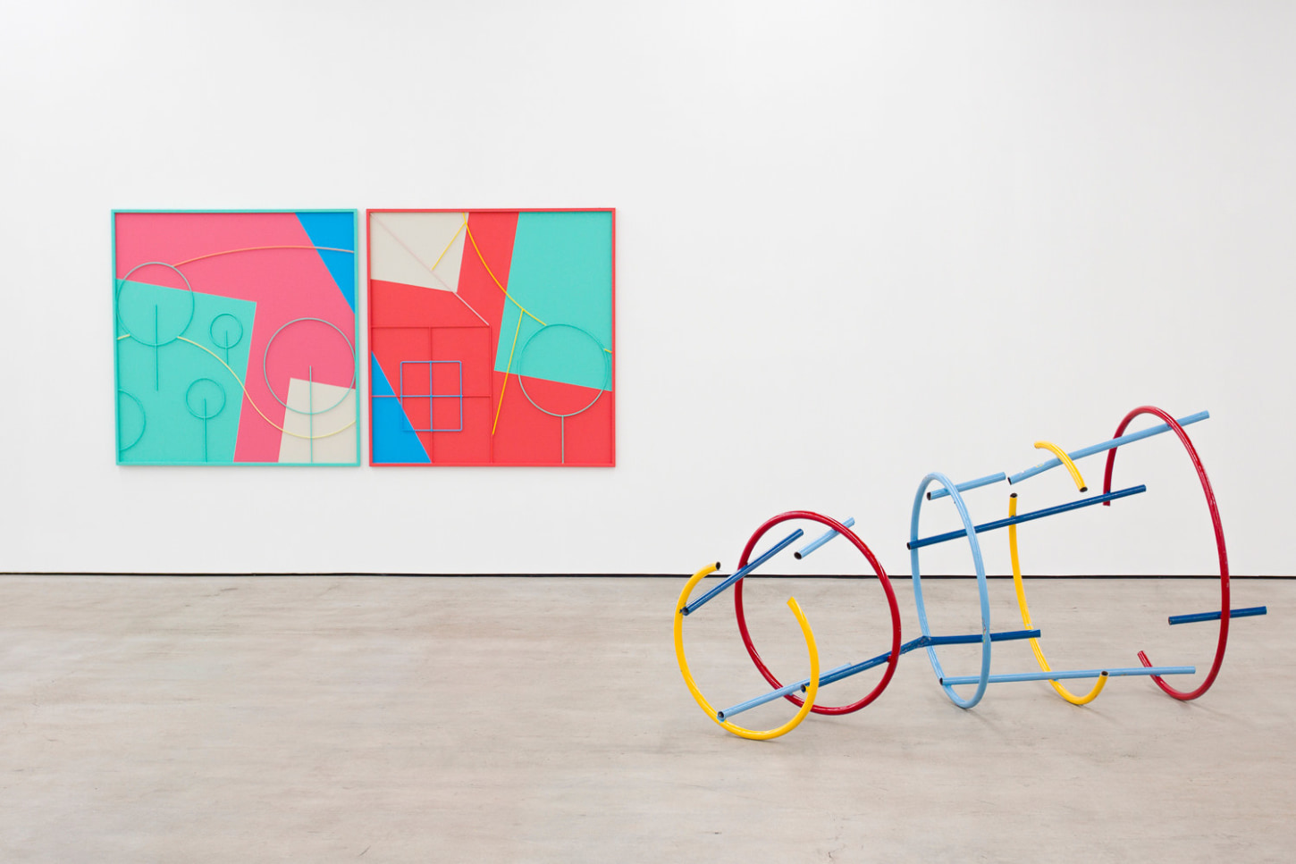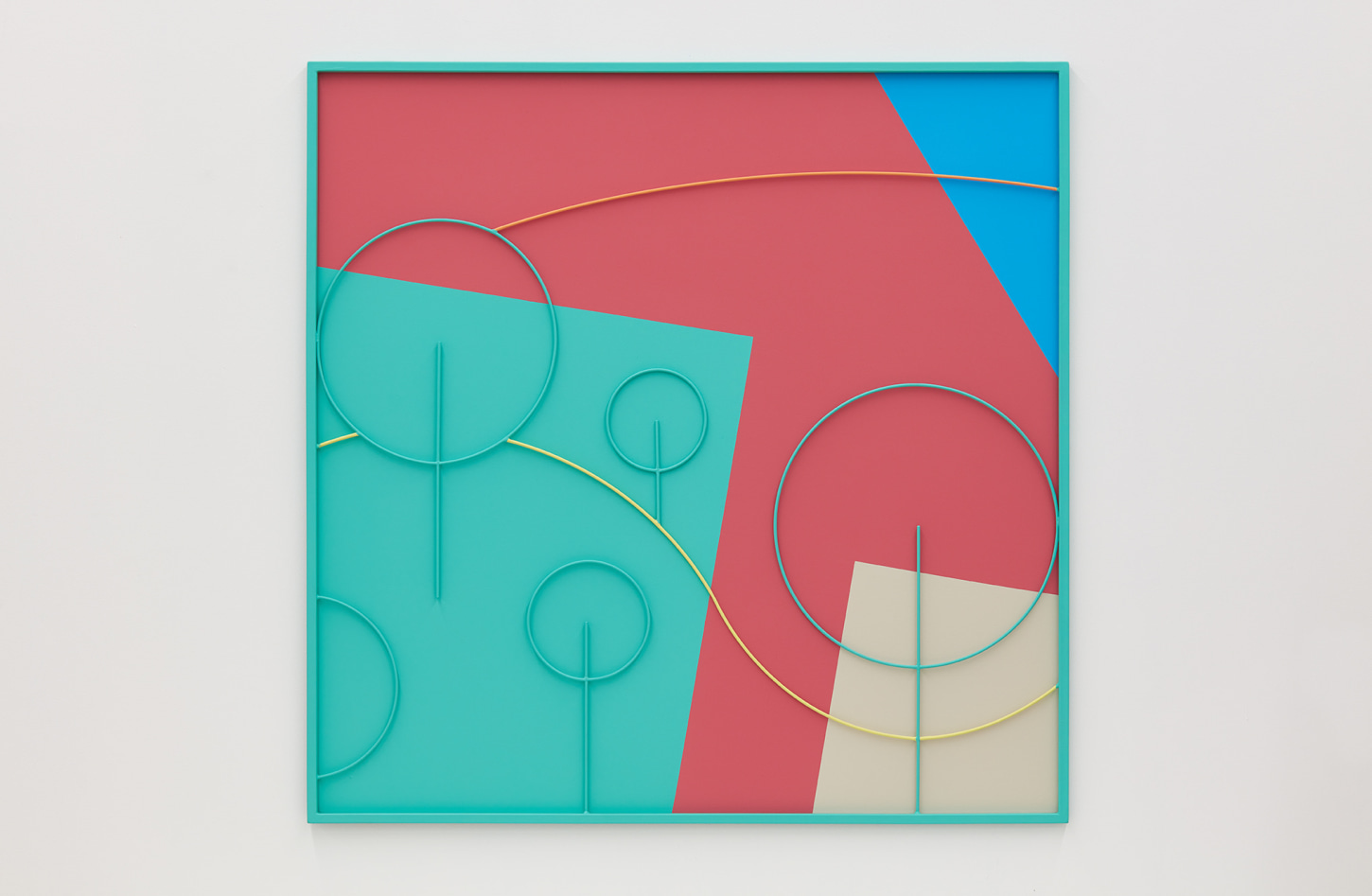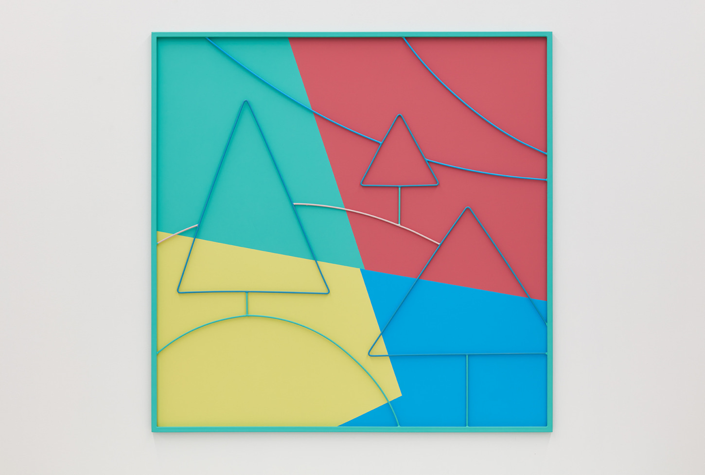 Nicodim Gallery Los Angeles is pleased to present Sandomir, by Berlin-based artist Przemek Pyszczek. The exhibition includes two bodies of work: Facade paintings—colorfield paintings framed behind metal grills—and Playground Structures, sculptures that reference children’s playground equipment. These bodies of work result from his continuous research on bloki—clusters of low-cost, concrete-paneled, prefabricated apartment buildings constructed after World War II in his birthplace, Poland.