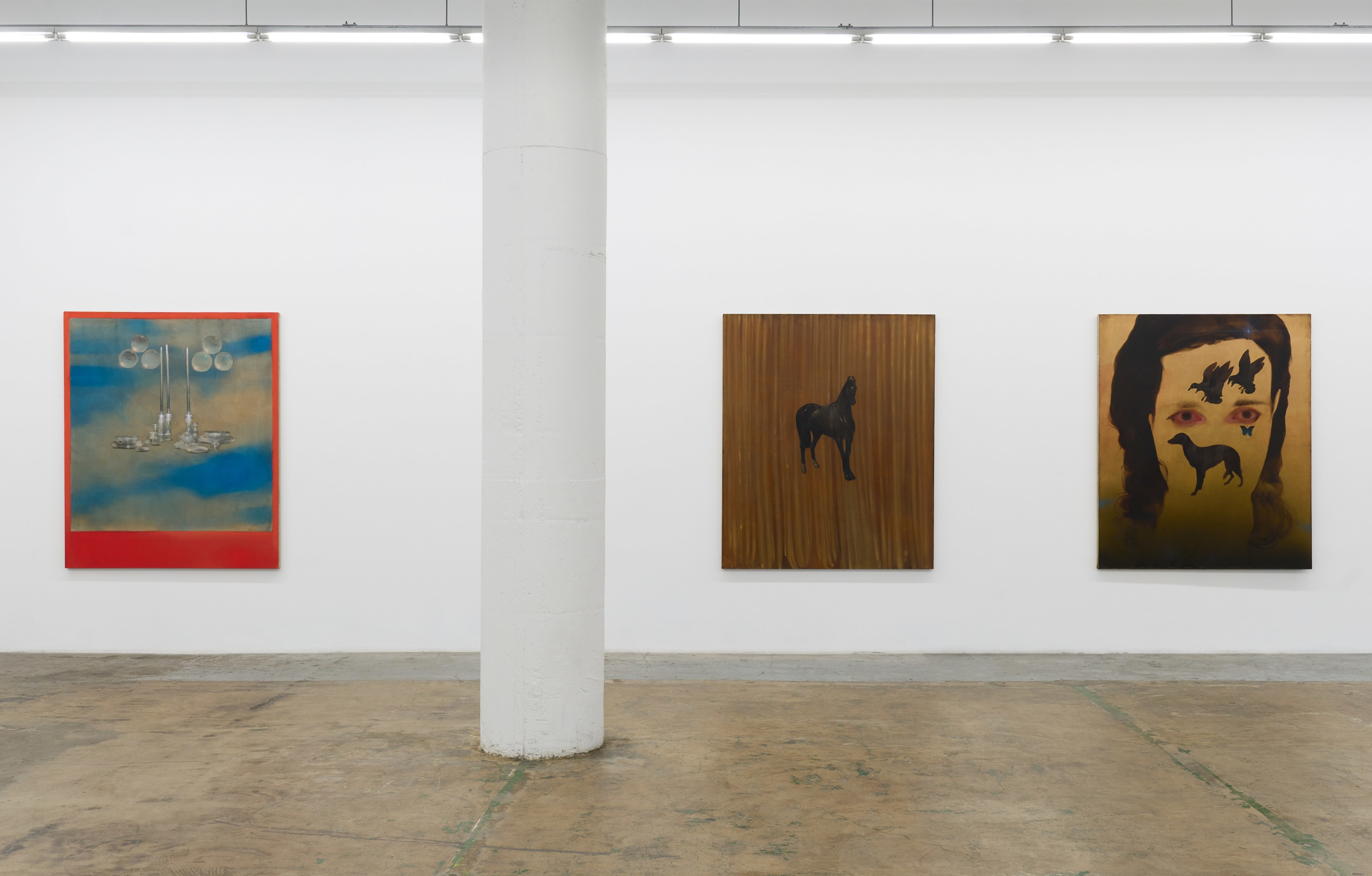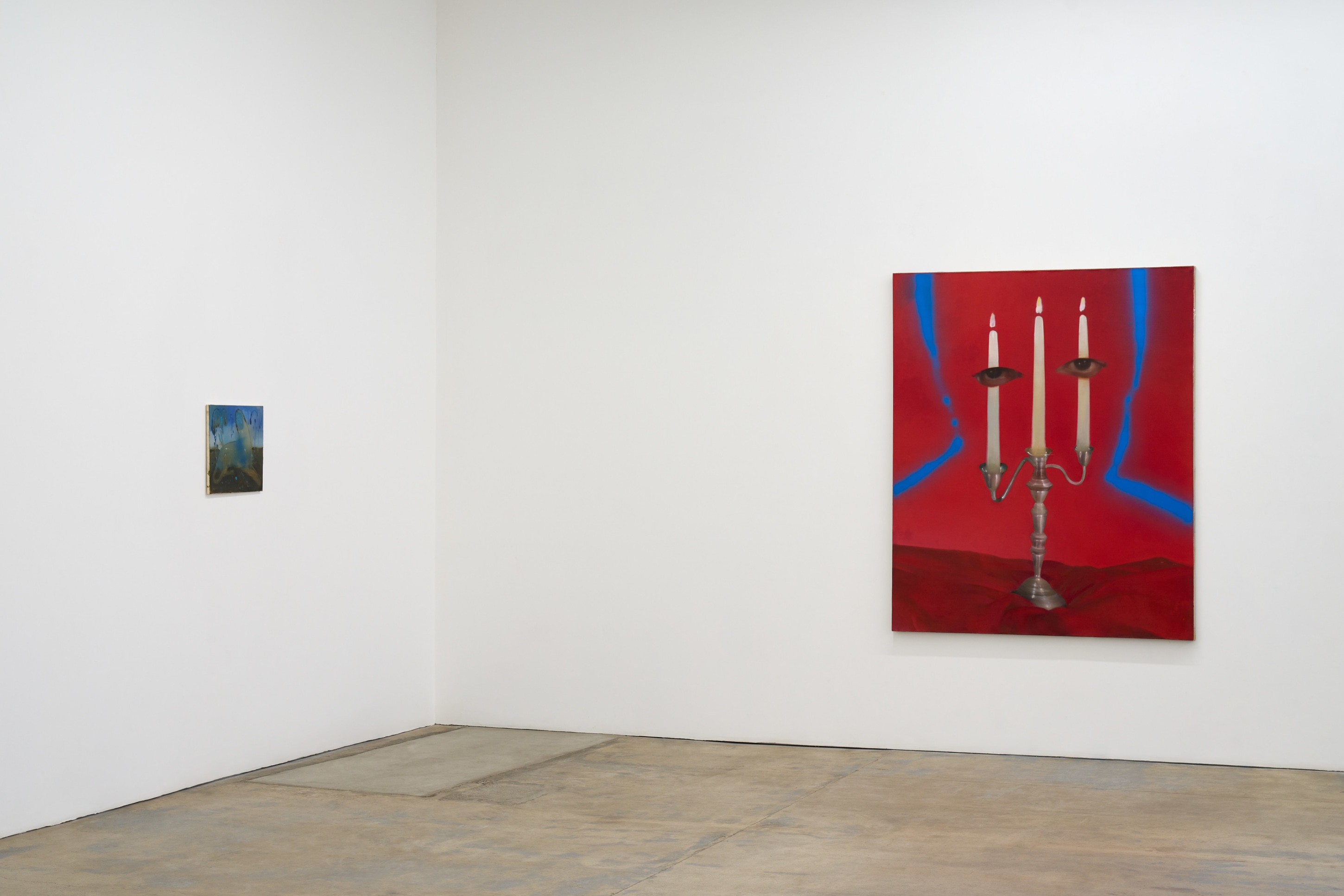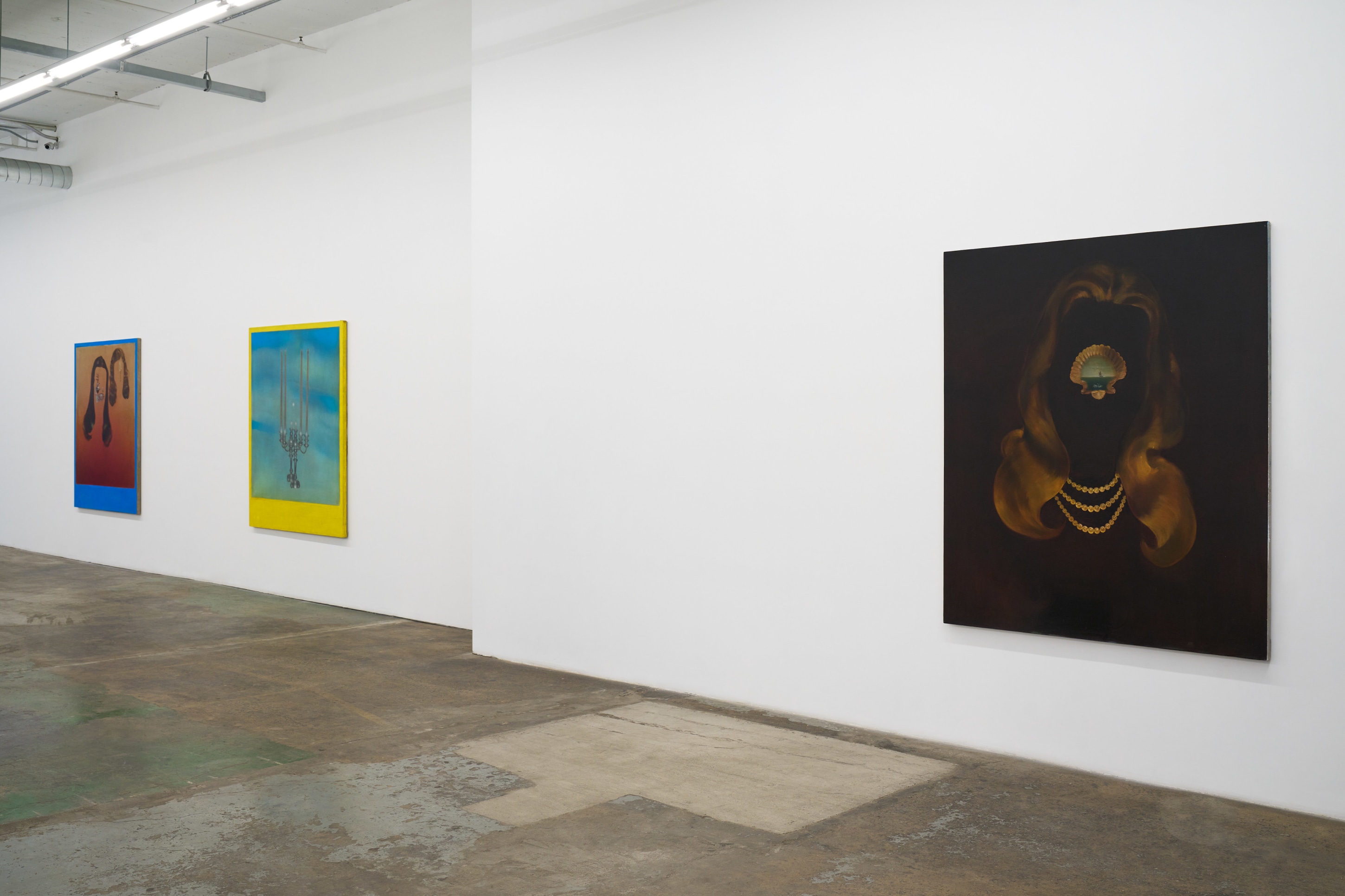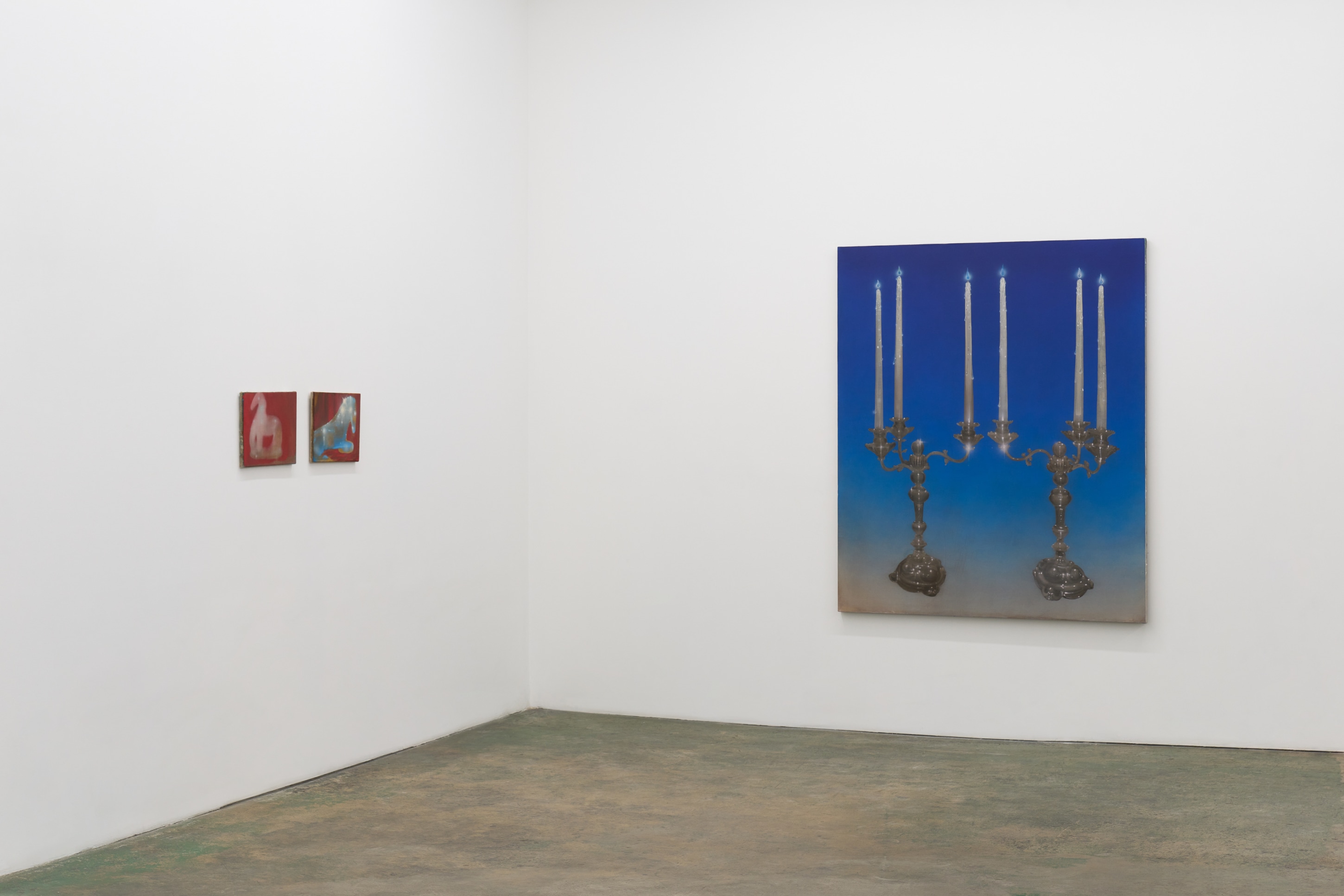LOW VOICE OUT LOUD, Rae Klein’s first solo exhibition with Nicodim, is a series of personal and biographical portraits of traumas and delights blended together when the power flips on-off-on-off, etc. Each canvas is a window from a perspective that switches between omnipotence and weightlessness at a moment’s notice. In “Burn to the Ground,” a silhouette foregrounds a candelabra, inversing the relationship between shadow and cave wall and exposing its very source of light. “Glass Pony” depicts a pony-shaped portal between the viewer’s perch and a constellation of nearby stars. “In the Highest House in the Whole City” is an aura-Polaroid of the surreal and the sublime. These are the quiet moments between darkness and light, the low voice sung out loud.