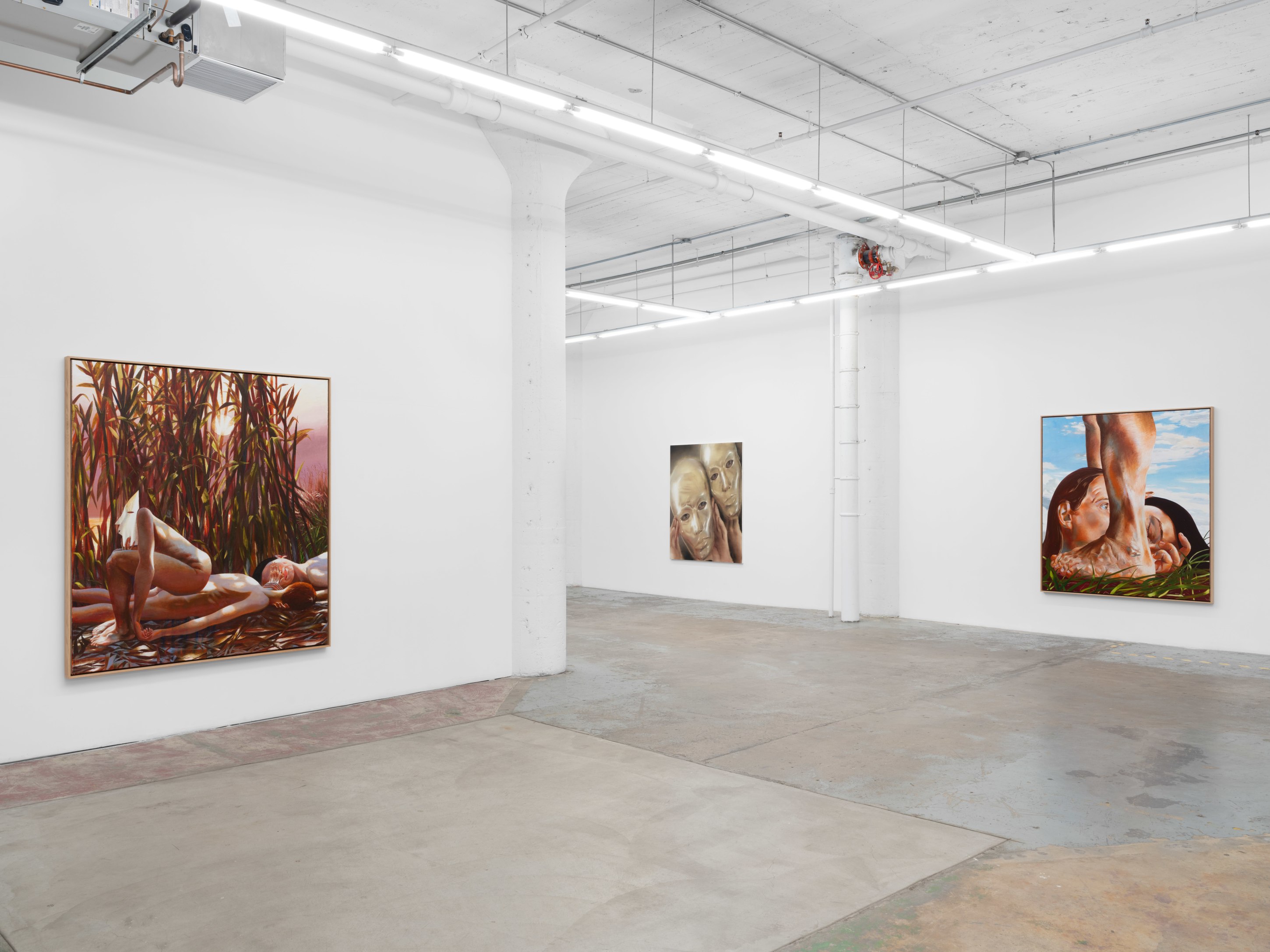 Each of the three featured artists occupies his own fraction of the cycle: Laurent Proux’s human figures are beasts of the daylight. They engage in polyamorous union with the ground, the flora, and the sun in orgies of limbs, light, and landscape. Proux’s sun both blinds and illuminates the erotically charged ongoings, while the other subjects radiate their own energies outward in playful opposition.