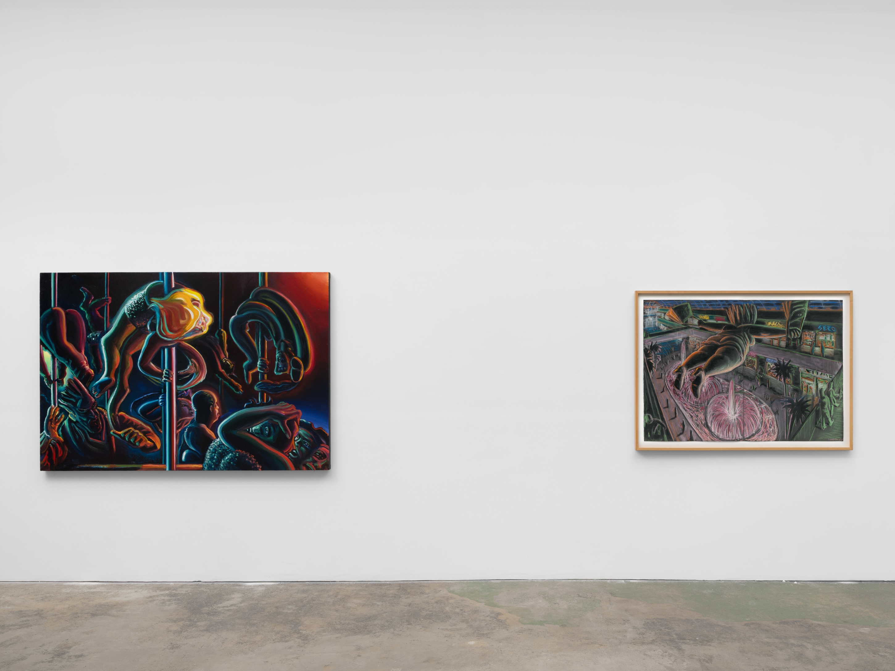 Finally, Tomas Harker’s visions of 1990s rave culture exist almost outside of time and memory itself, though decidedly in places the sun can’t reach. His renderings have a granulated quality, as if the viewer is watching on a VHS tape, but the pulse of the strobe cast back from bodies in the peaky throes of music and chemicals is unmistakable. The revelations felt on Harker’s Saturday night will be repented Sunday morning.