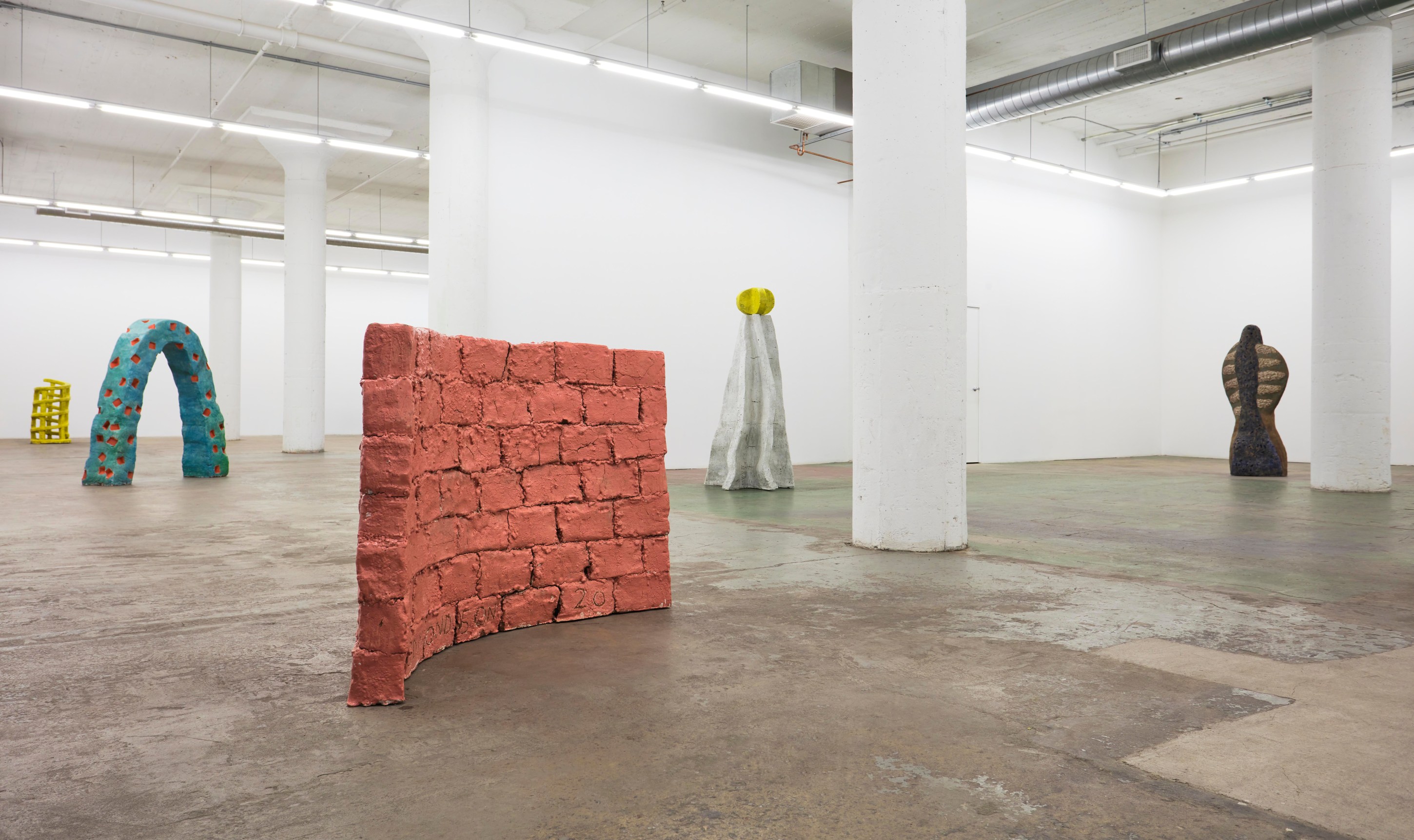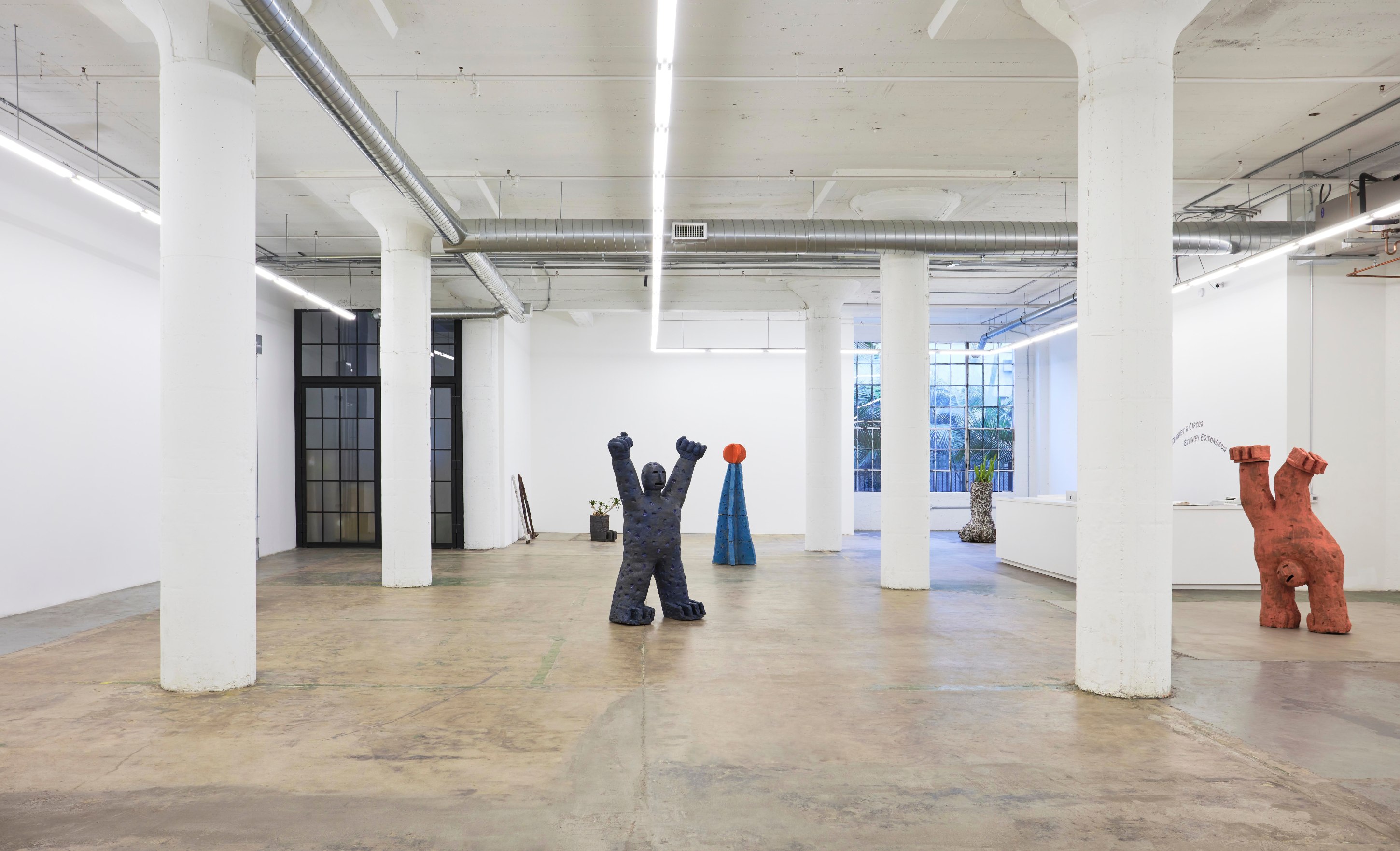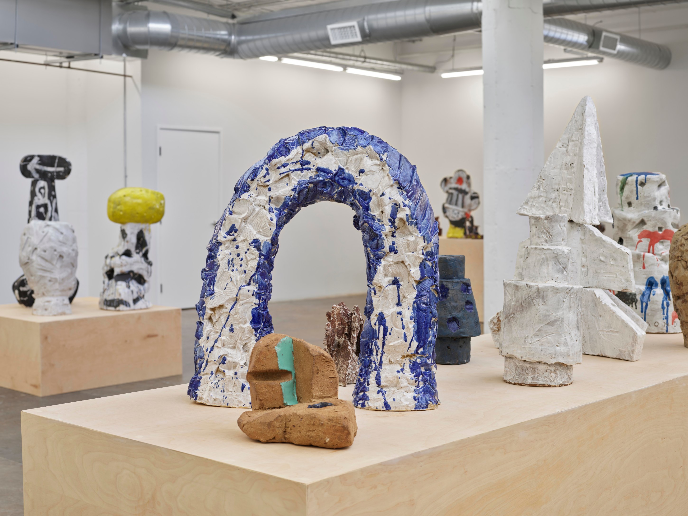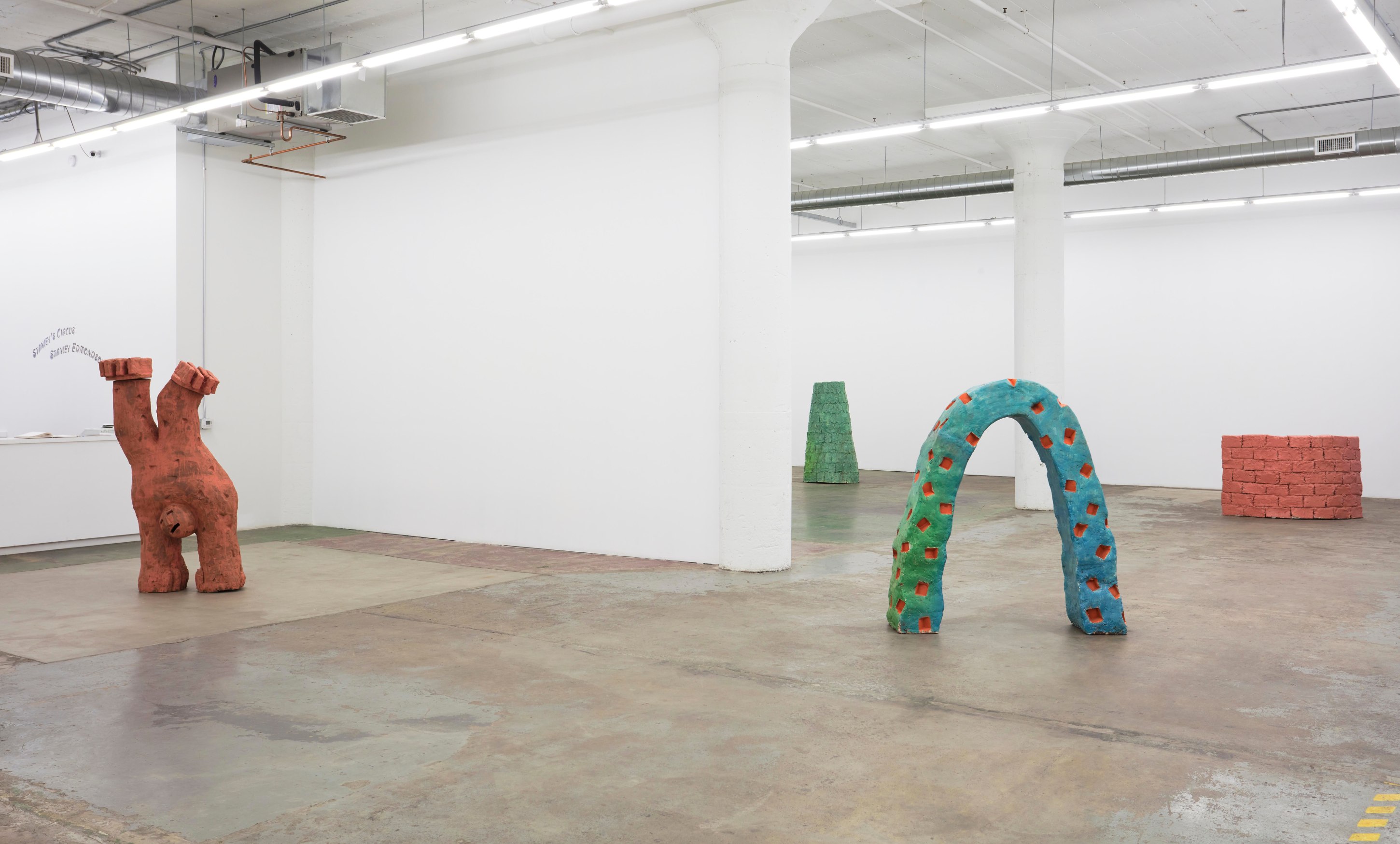 Over the course of the past year, Stanley Edmondson found himself considering Calder’s diminutive traveling circus, the life and joy it brought to tiny Parisian salons, and the current global circumstance in which experiencing things indoors with friends and loved ones is dangerous, if not impossible. He assembled and choreographed his own sort of circus: literally larger-than-life ceramic performers engaging with abstractions of trampolines and onomatopoeic visualizations of the tumbles and flips about to ensue. Stanley’s Circus would become a delightful, traveling ensemble as at home indoors as out.
