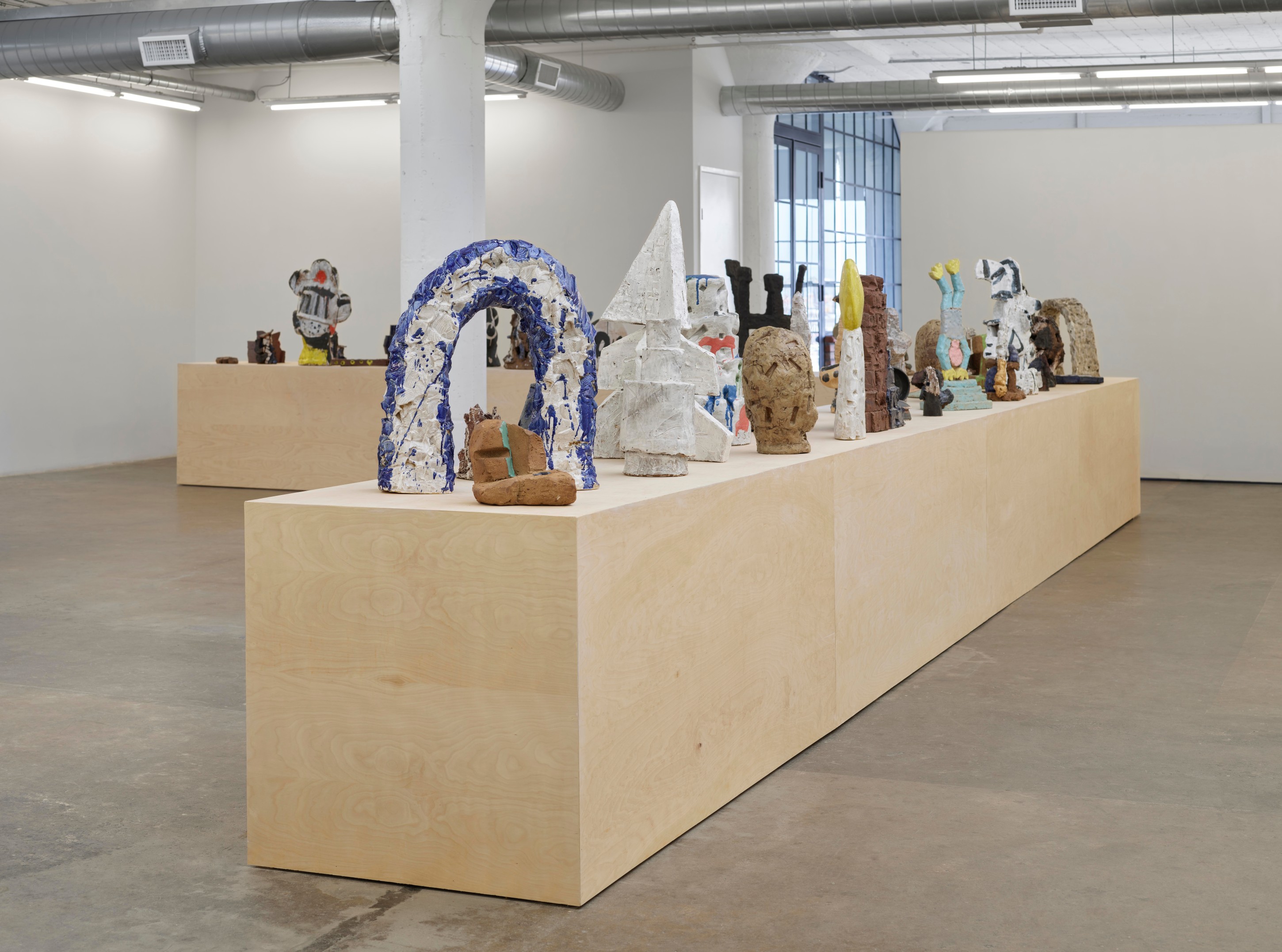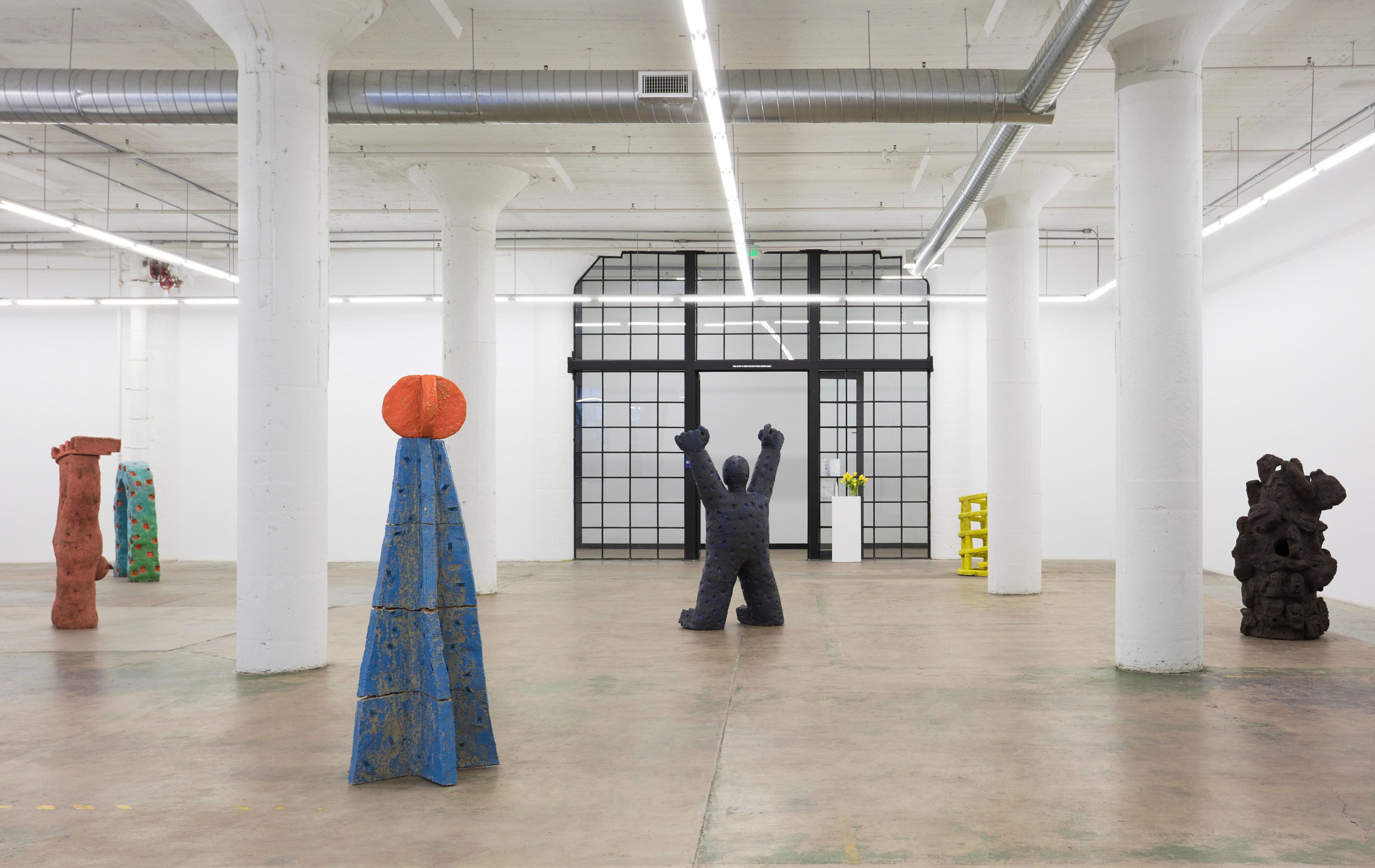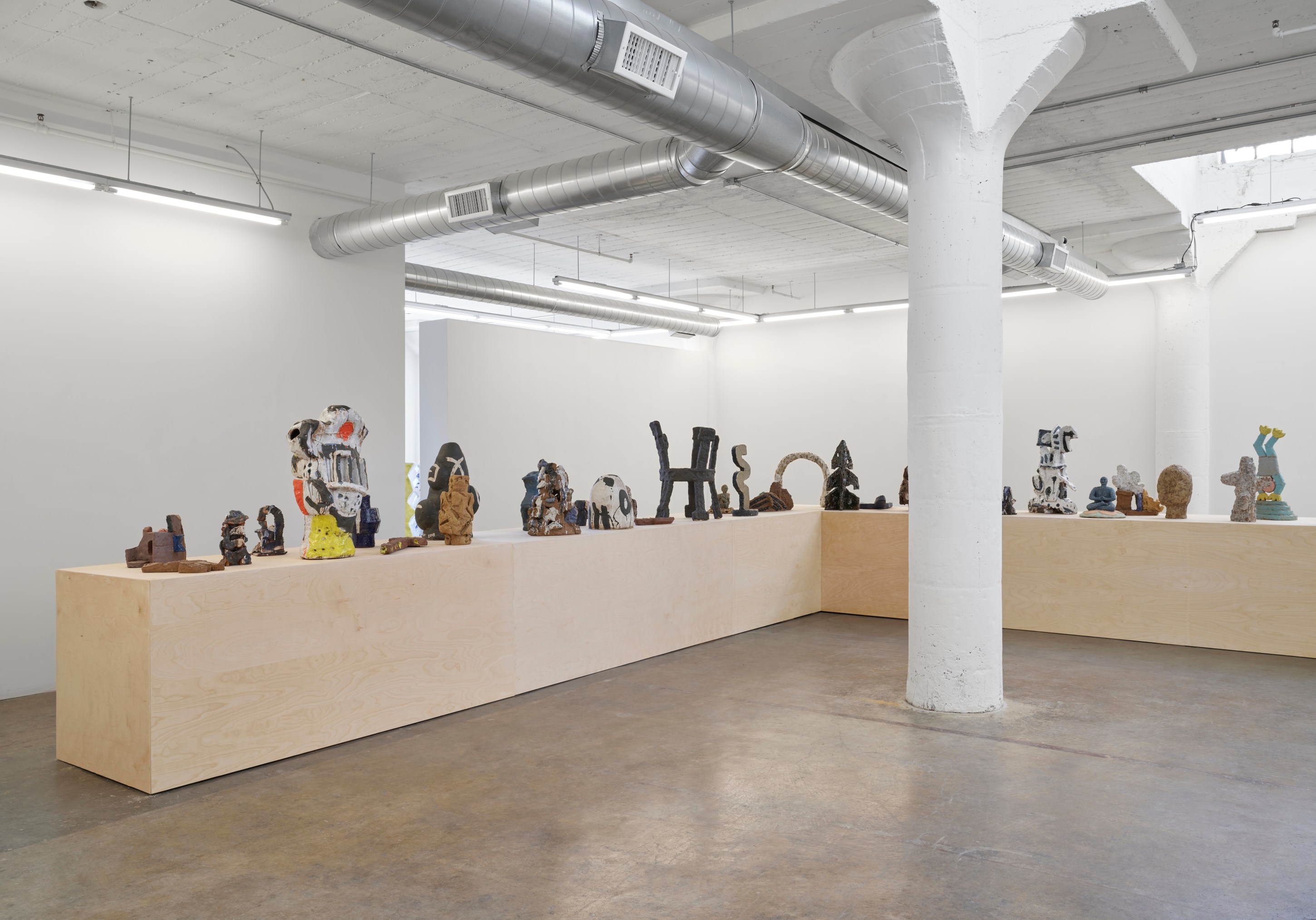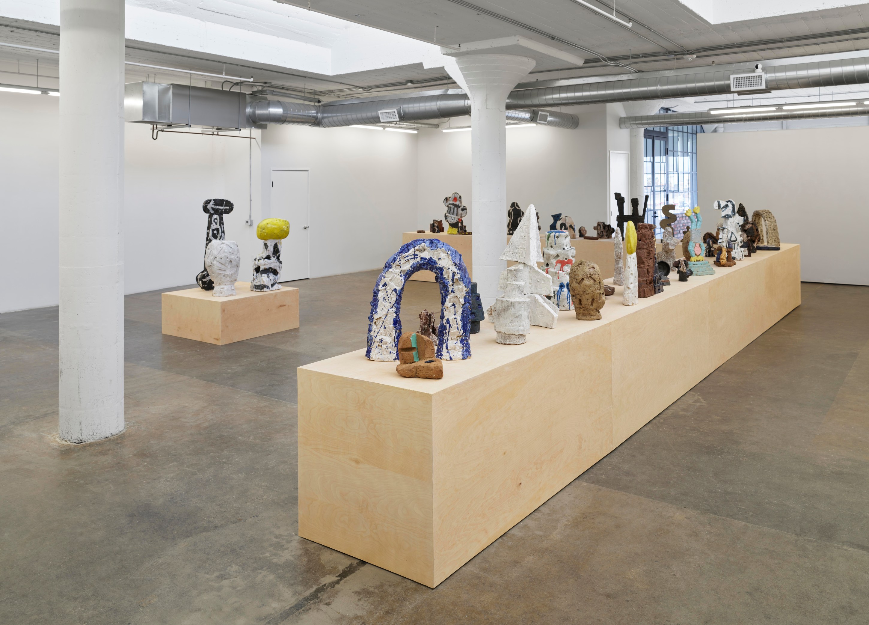 Over the course of the past year, Stanley Edmondson found himself considering Calder’s diminutive traveling circus, the life and joy it brought to tiny Parisian salons, and the current global circumstance in which experiencing things indoors with friends and loved ones is dangerous, if not impossible. He assembled and choreographed his own sort of circus: literally larger-than-life ceramic performers engaging with abstractions of trampolines and onomatopoeic visualizations of the tumbles and flips about to ensue. Stanley’s Circus would become a delightful, traveling ensemble as at home indoors as out.