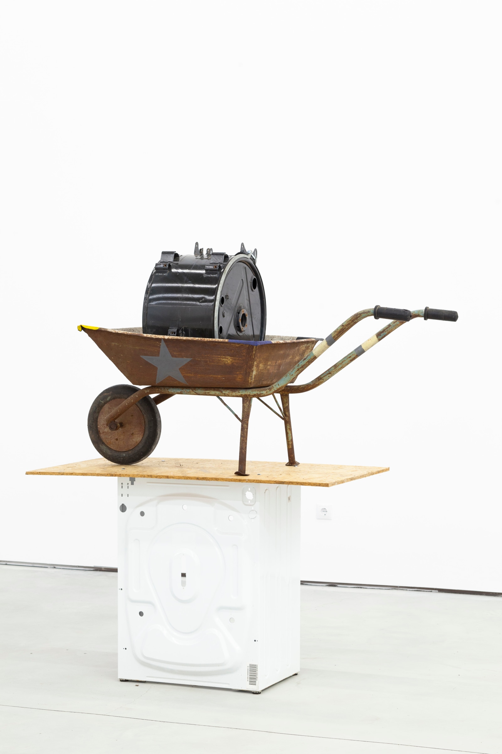 Materialele folosite în această instalaţie sunt /au fost, în cea mai mare parte, reciclate. Astfel, elemente din lemn, metal, ceramică... după încheierea unui ciclu de producţie şi exploatare, cu costurile aferente, şi–au găsit o nouă utilizare intrând în alte configuraţii, de obiecte cu un nou statut (operă de artă). În noul ciclu, nu mai există practic costuri de producţie, ori ele sunt neglijabile, cu rezultatul economiei resurselor.