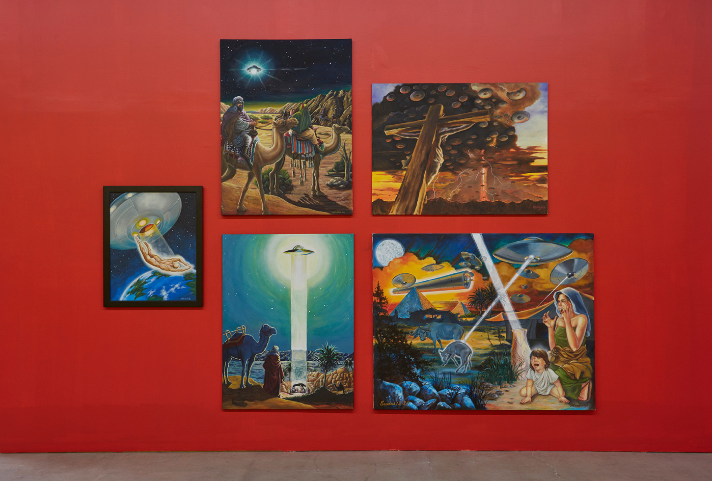 Lita Albuquerque, Andisheh Avini, Wulf Barsch, Michael Carter, Benjamin Creme, Marcel Duchamp, Constant Dullaart, Google Deep Dream, Mi Kafchin, YZ Kami, Thomas Kinkade, Lazaros, Chris McCaw, Monarca Lynn Merrifield, Ciprian Mureșan, Alexander Reben, Roko, Holton Rower, Jeremy Shaw, Daniel R. Small, Summum, Ingo Swann, Diana Thater, Mungo Thomson, Unarius Academy of Science, Guido van der Werve