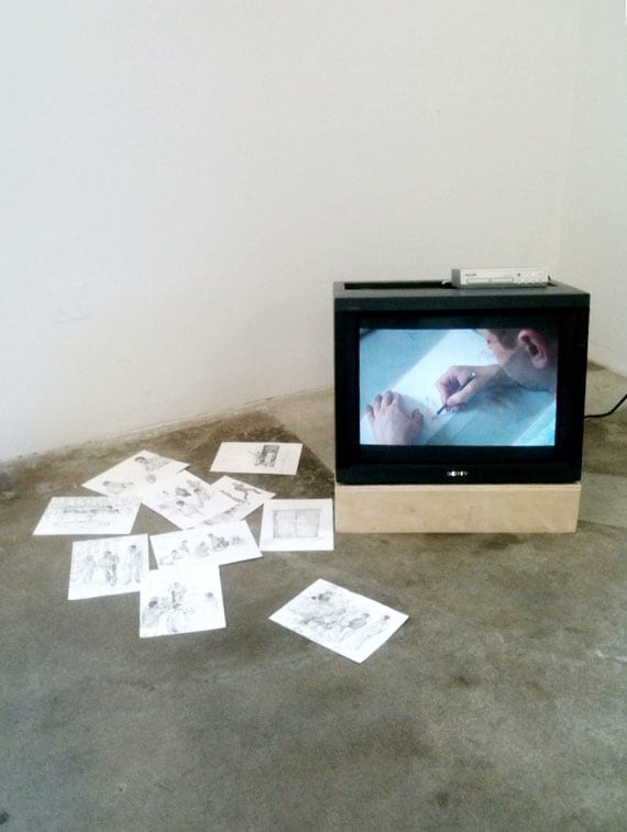 Ciprian Muresan blends humor with dark and knowing poignancy. His work often involves the translation of literary models into imagery, sometimes into the form of drawings, and at other times into film, or both. Muresan's researches into communist and post communist culture have resulted in classic films and animations adapted and mediated through current popular culture, and sculptural works that cleverly but subtlely engage with a pertinent past or present issue. One of Muresan's recent sources of inspiration is the Tale of the Troika (Сказка о Тройке). A 1968 satirical science fiction novel written by Boris and Arkady Strugatsky, the book pokes fun at both Soviet bureaucracy and over-emphasis on science as a means for the evaluation of almost everything. Although the novel itself was not directed against the state per se - and it is fair to say a number of the points it picks up on also resonate with global bureaucracy today and the field of contemporary scientific research - it was not “approved” under Soviet rule. The Strugatsky brothers' story sees the world divided into innumerable floors, connected by elevators that are permanently broken down. No one seems to know much about anything above floor thirteen, then one day, two scientists are sent up to the 76th floor, to “The Colony of Unexplained Phenomena”. Here they find the Troika, a ruling triumvirate not of three, but of four men, has seized power. The Troika seeks to rationalize away unexplained phenomena - even such strange things as Gabby the talking bedbug who proposes a new era of peaceful “coexistence between man and bug”, or Old Man Edelweiss, the visitor from Outer Space who has 77 parents of 7 distinctly different sexes. In Muresan's version, the story becomes a series of drawings adapted from the tale. These drawings are in turn subjected to a bizarre “scientific experiment”. Muresan “arranges” for them to be run over, so that, we assume, any evidence of 'unexplained phenomena' can be removed. In an added twist the artist keeps the remains, literally “framing the evidence”: which, though mangled, nevertheless provides a window into a strange and bizarre world.
