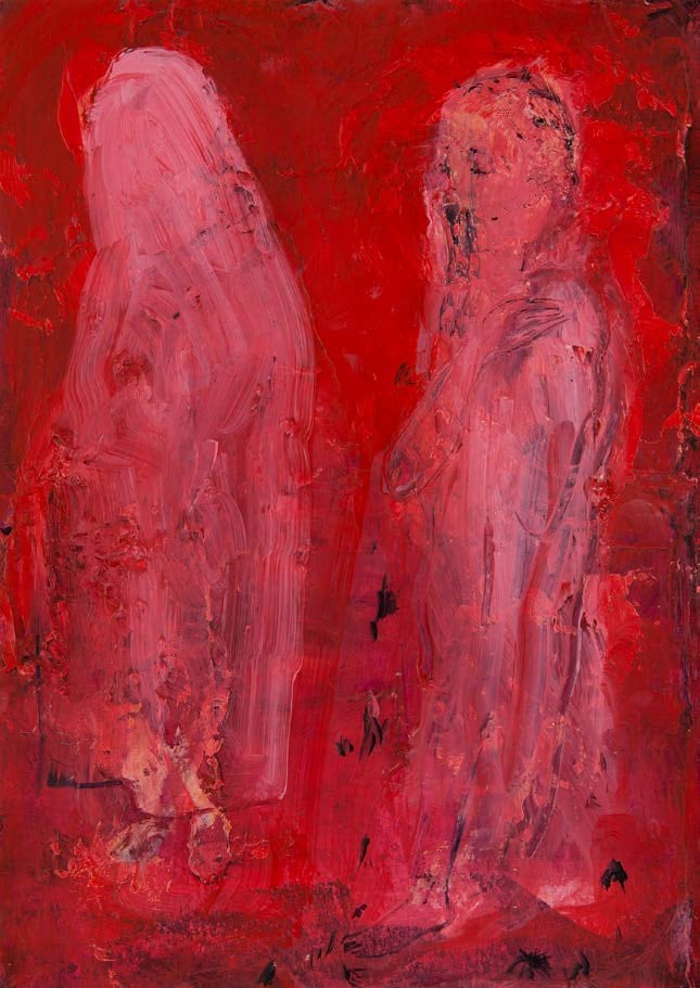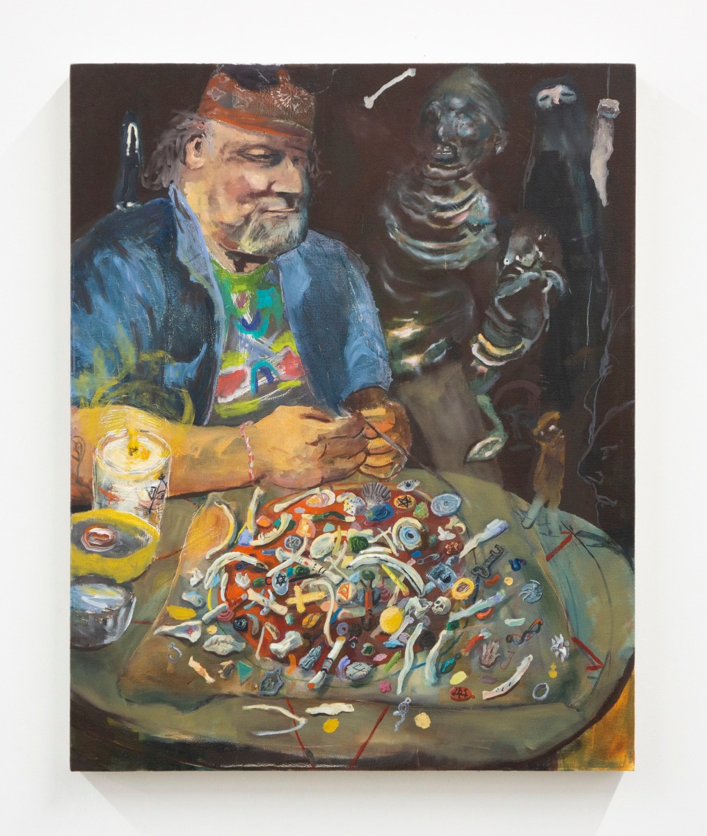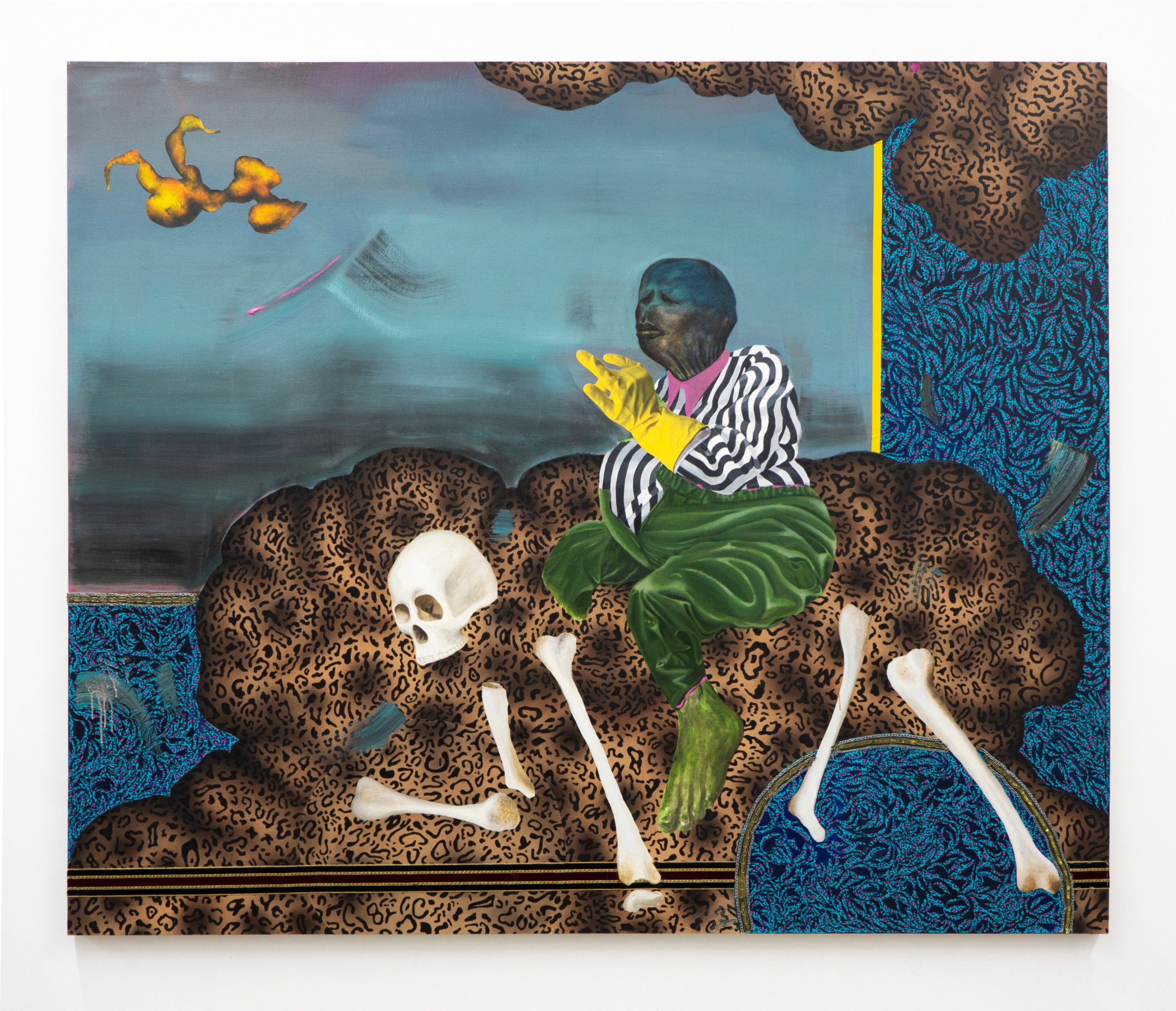 oil, oil stick, acrylic, spray paint, collage on canvas
